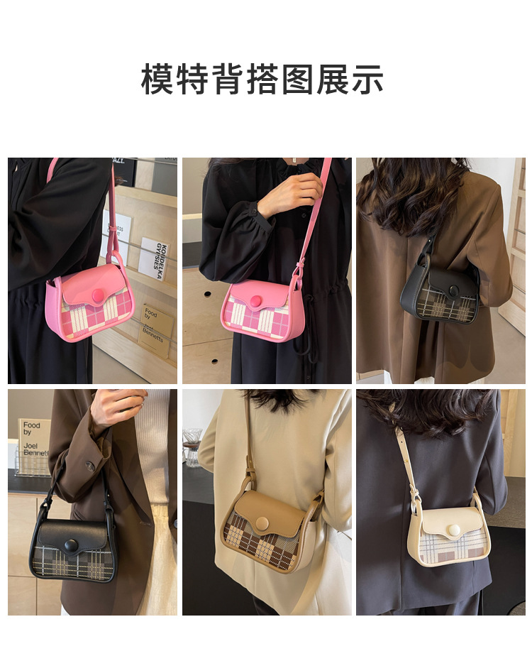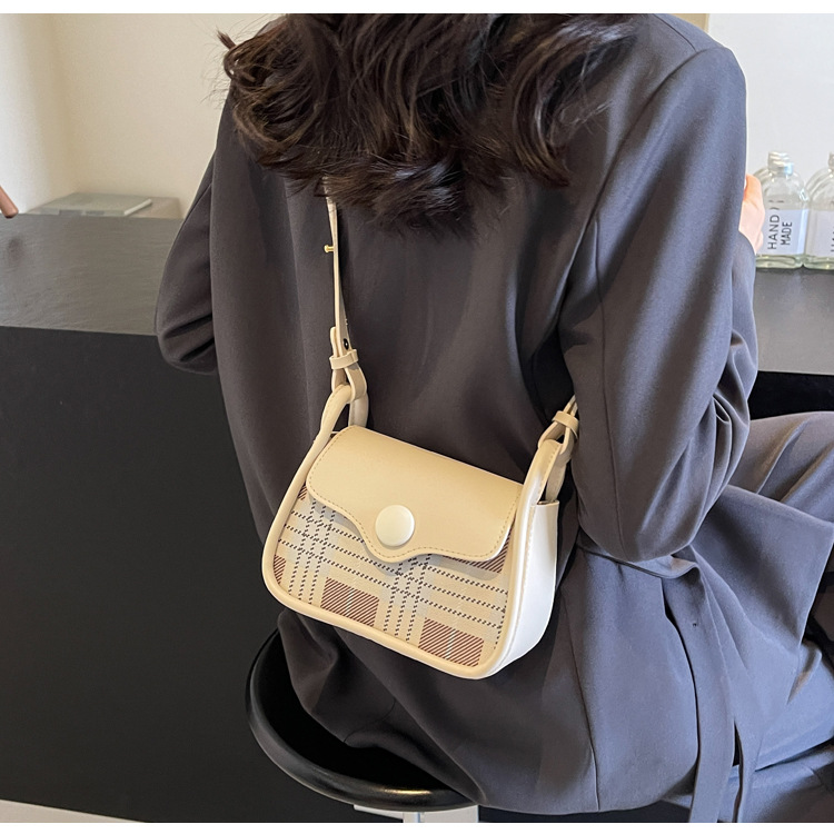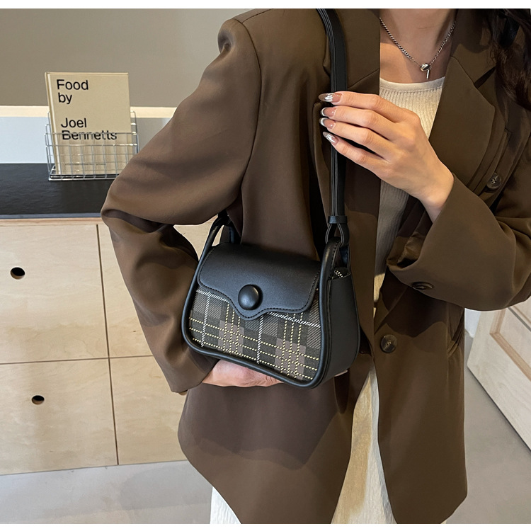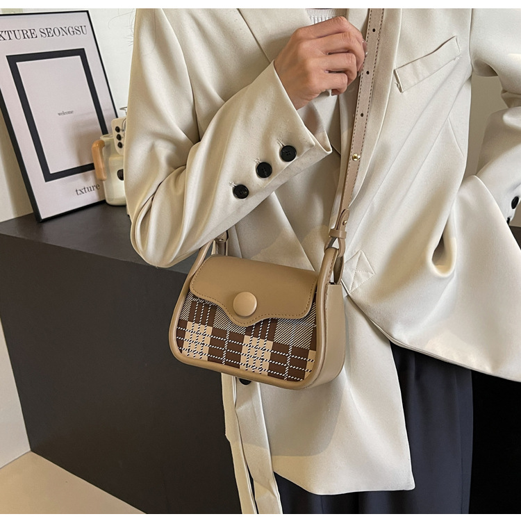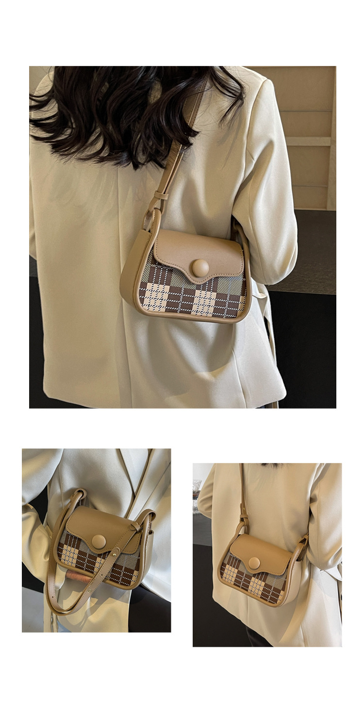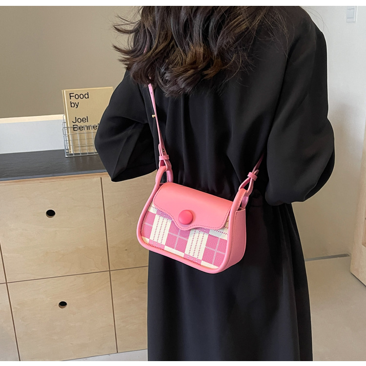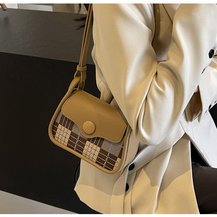 한국 스타일의 패션 휴대용 작은 사각형 가방 간단한 캐주얼 체크 무늬 메신저 가방 2024 여름 새로운 어깨 가방스토어 가기