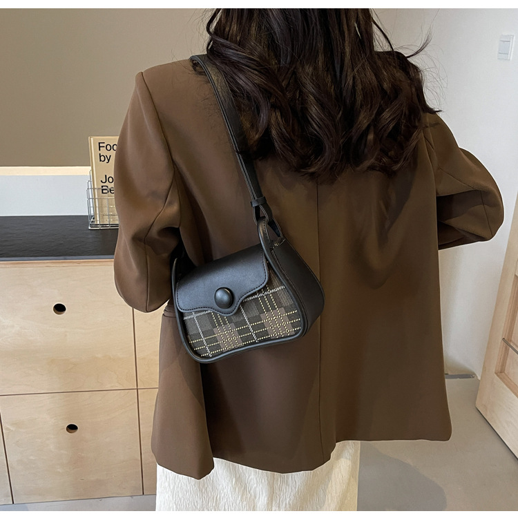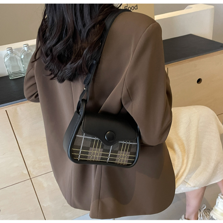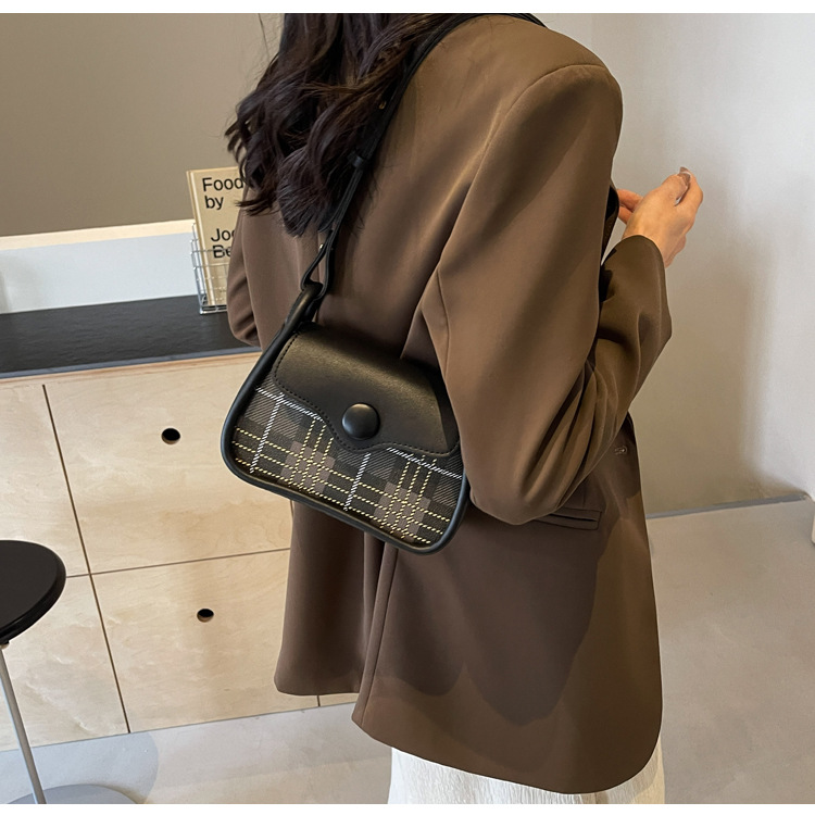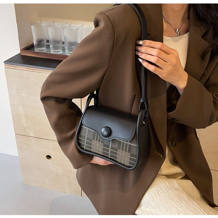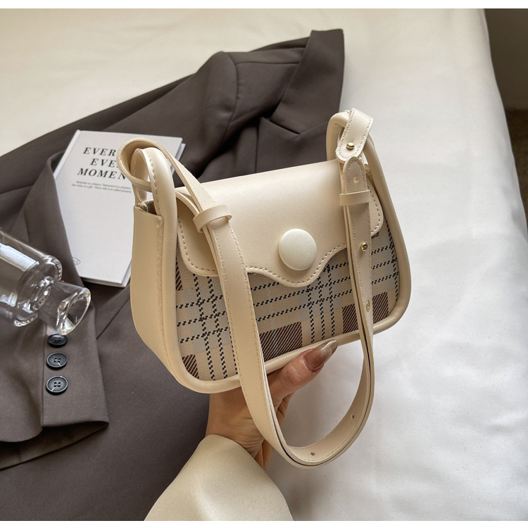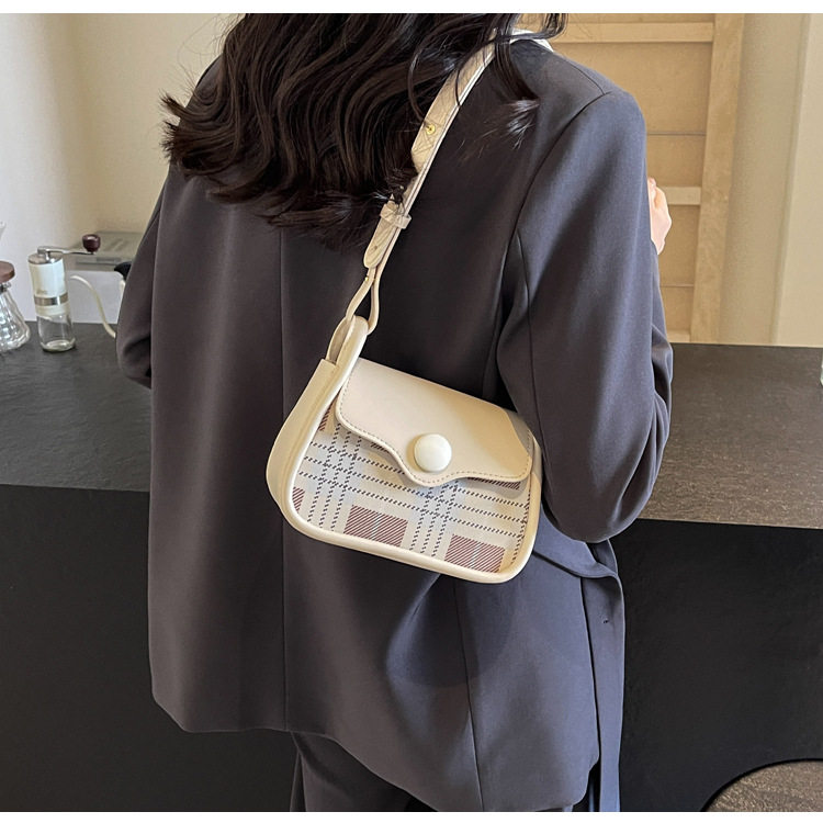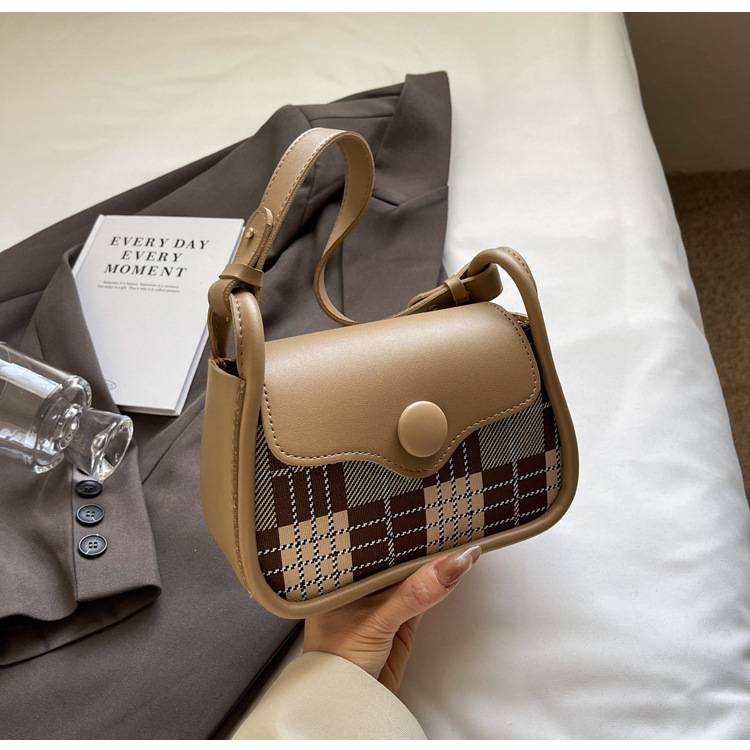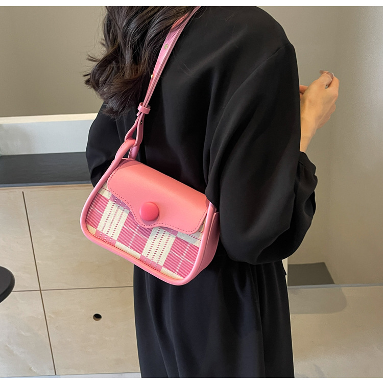 한국 스타일의 패션 휴대용 작은 사각형 가방 간단한 캐주얼 체크 무늬 메신저 가방 2024 여름 새로운 어깨 가방스토어 가기