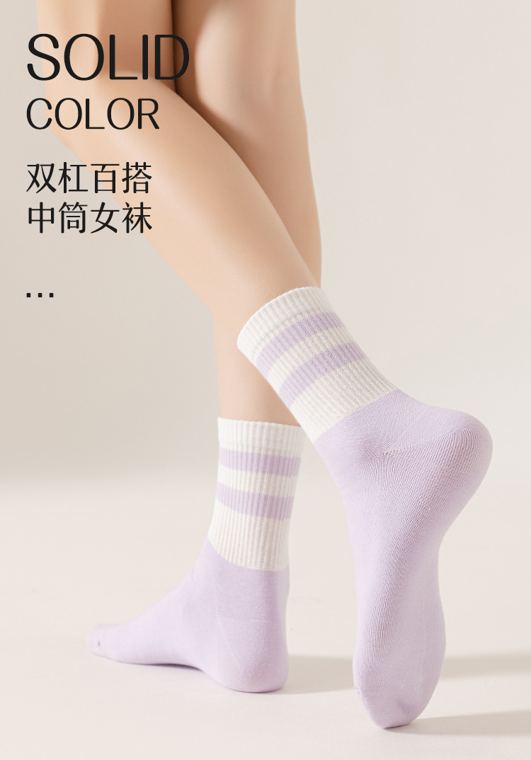 여성 땀 흡수성 통기성 중반 종아리 양말 봄과 가을 얇은 순면 화이트 스포츠 여성 양말 캐주얼 패션
