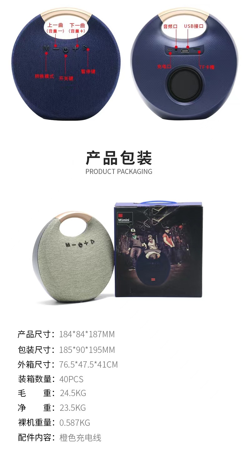 새로운 TWS 휴대용 블루투스 스피커 휴대용 패브릭 데스크탑 소형 스피커 대외 무역 인기 MImini 서브우퍼