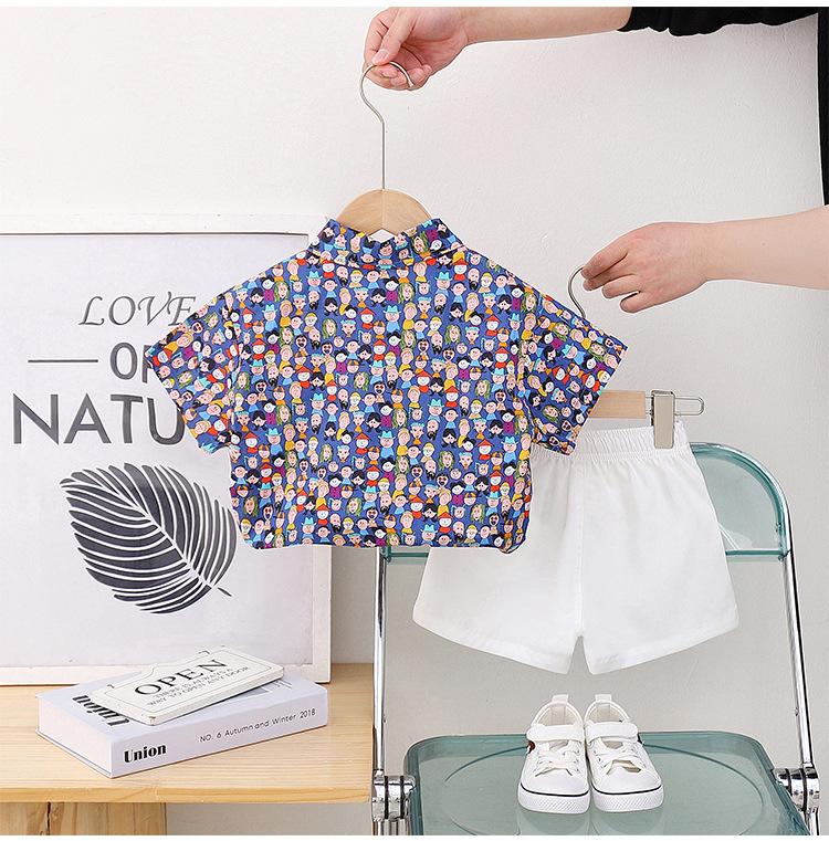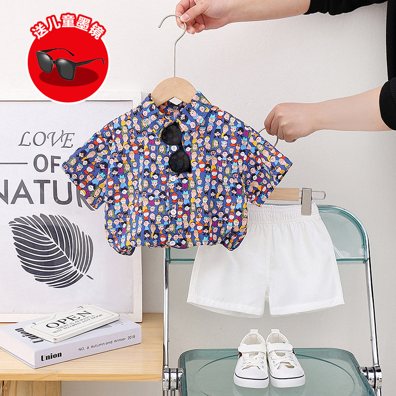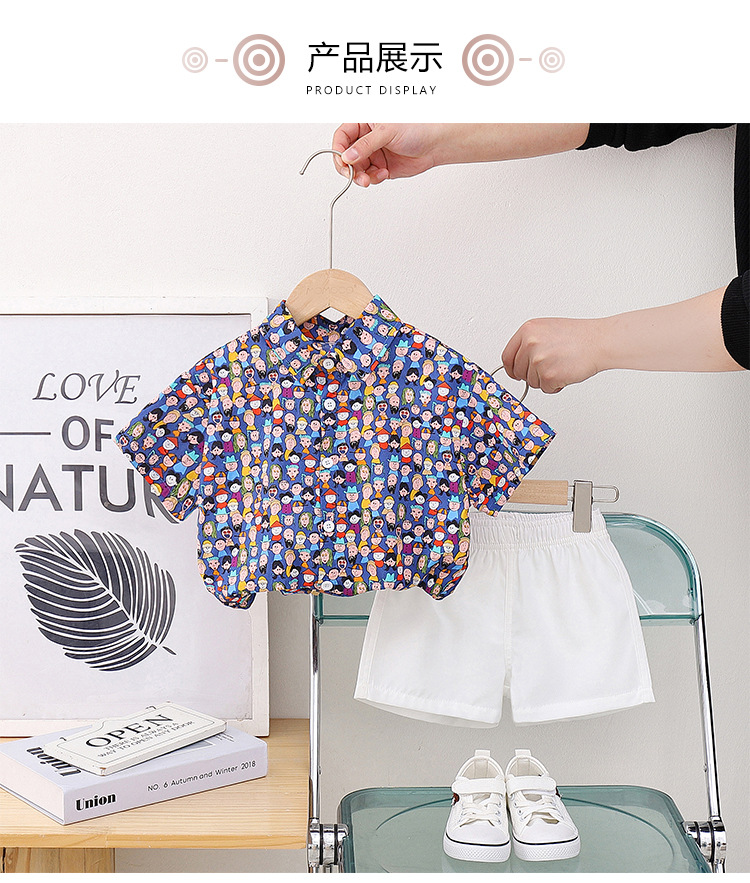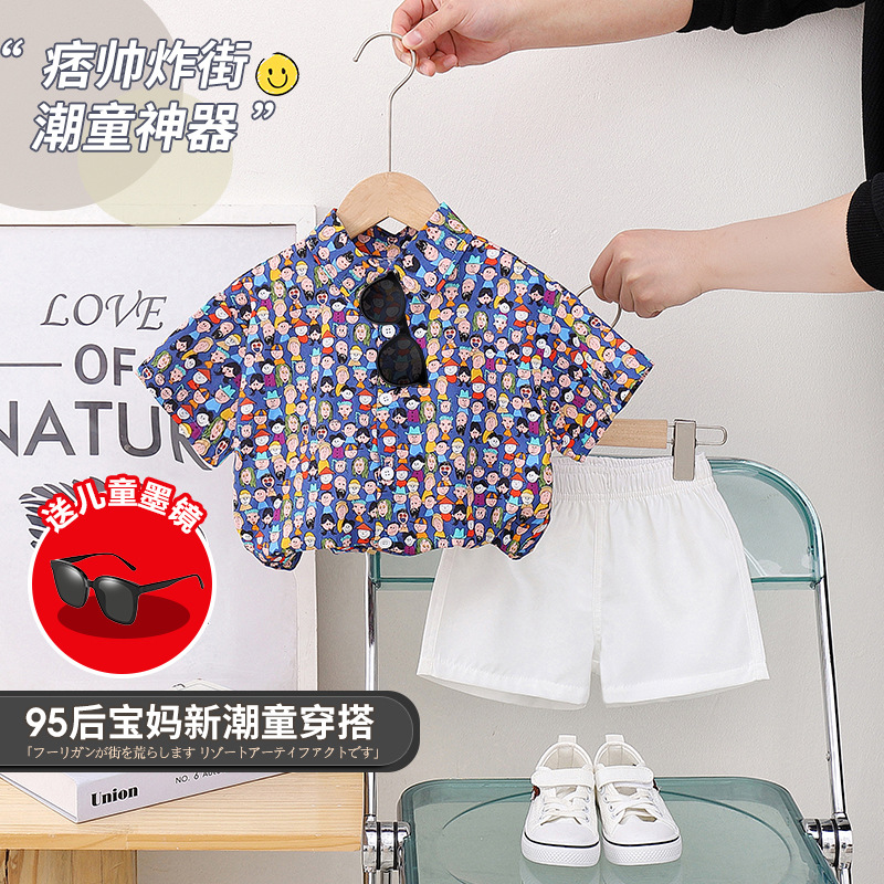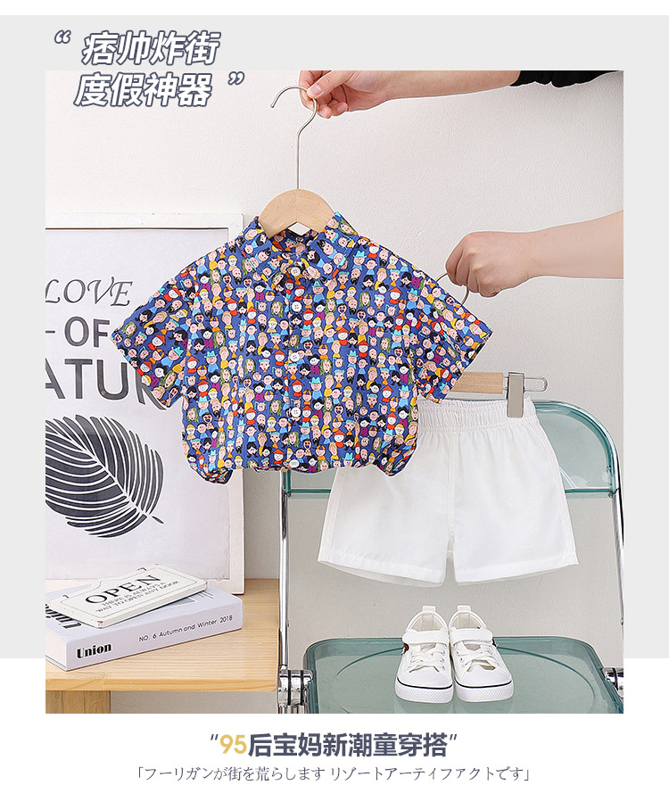 어린이 의류 공장 소년 꽃 무늬 셔츠 반팔 여름 Pu Shuai 어린이 세트 아기 소년 홍콩 스타일 캐주얼 꽃 무늬 셔츠