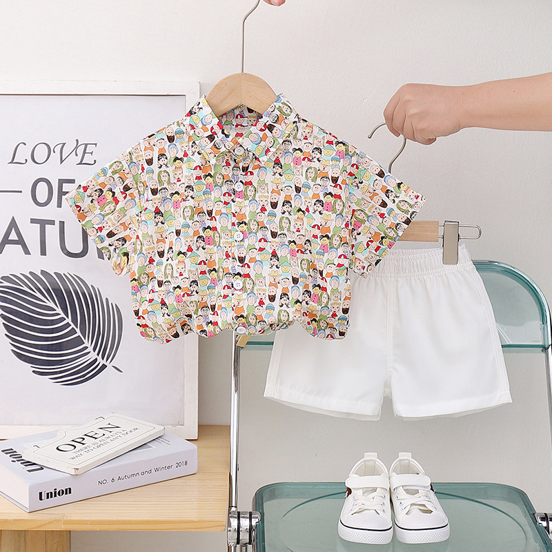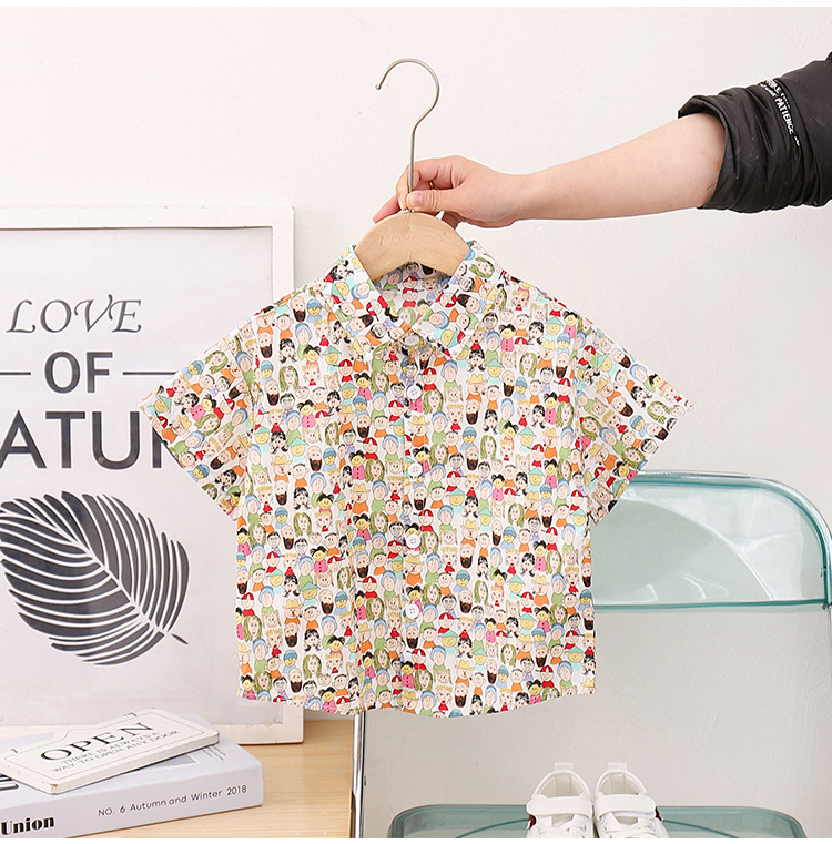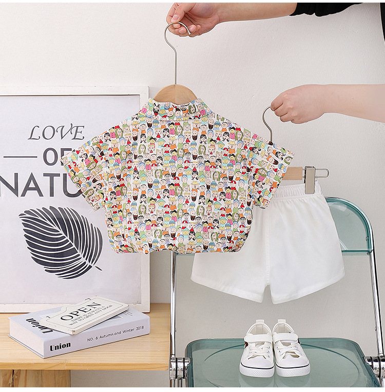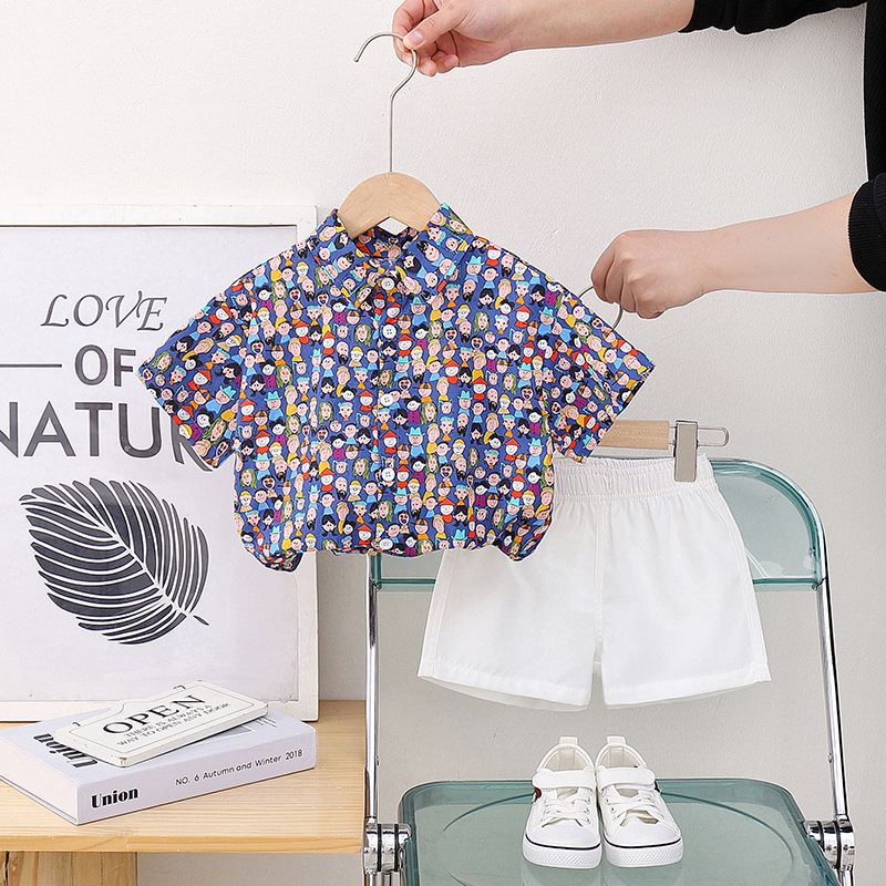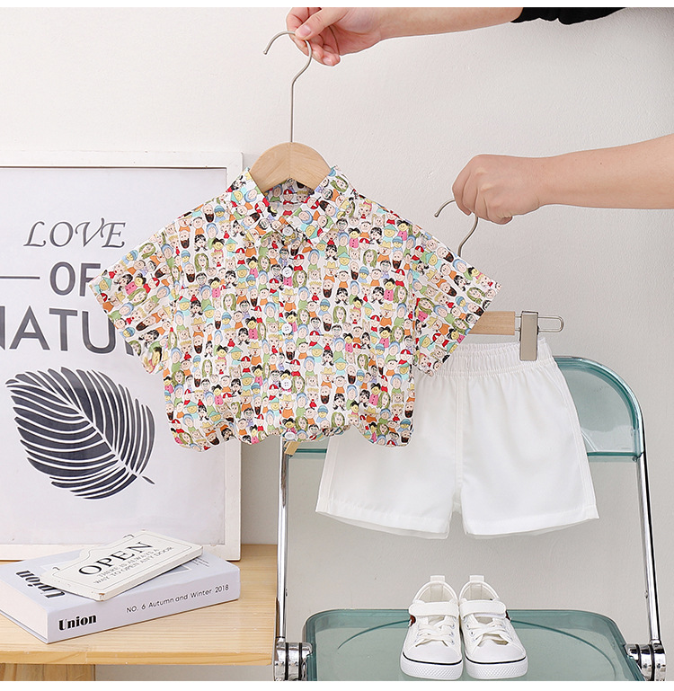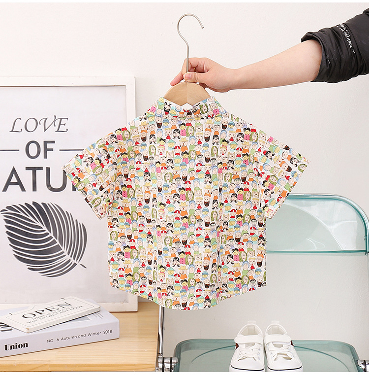 어린이 의류 공장 소년 꽃 무늬 셔츠 반팔 여름 Pu Shuai 어린이 세트 아기 소년 홍콩 스타일 캐주얼 꽃 무늬 셔츠