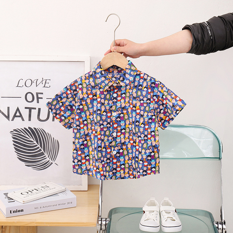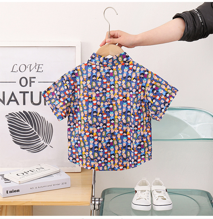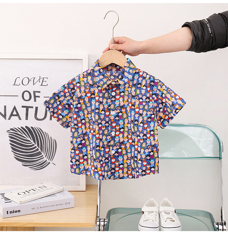 어린이 의류 공장 소년 꽃 무늬 셔츠 반팔 여름 Pu Shuai 어린이 세트 아기 소년 홍콩 스타일 캐주얼 꽃 무늬 셔츠스토어 가기