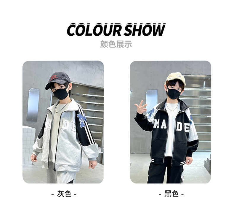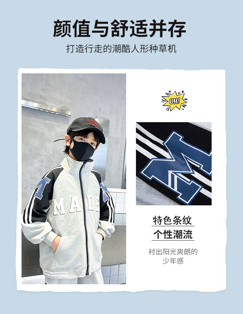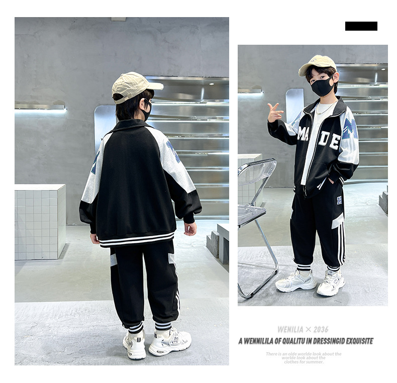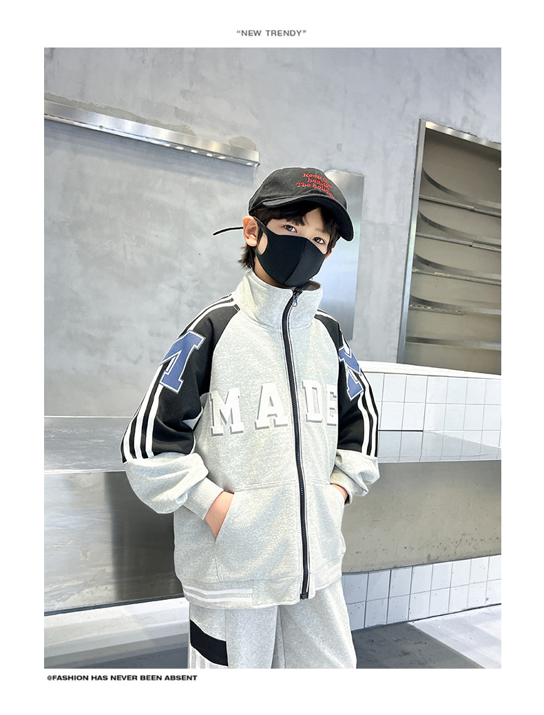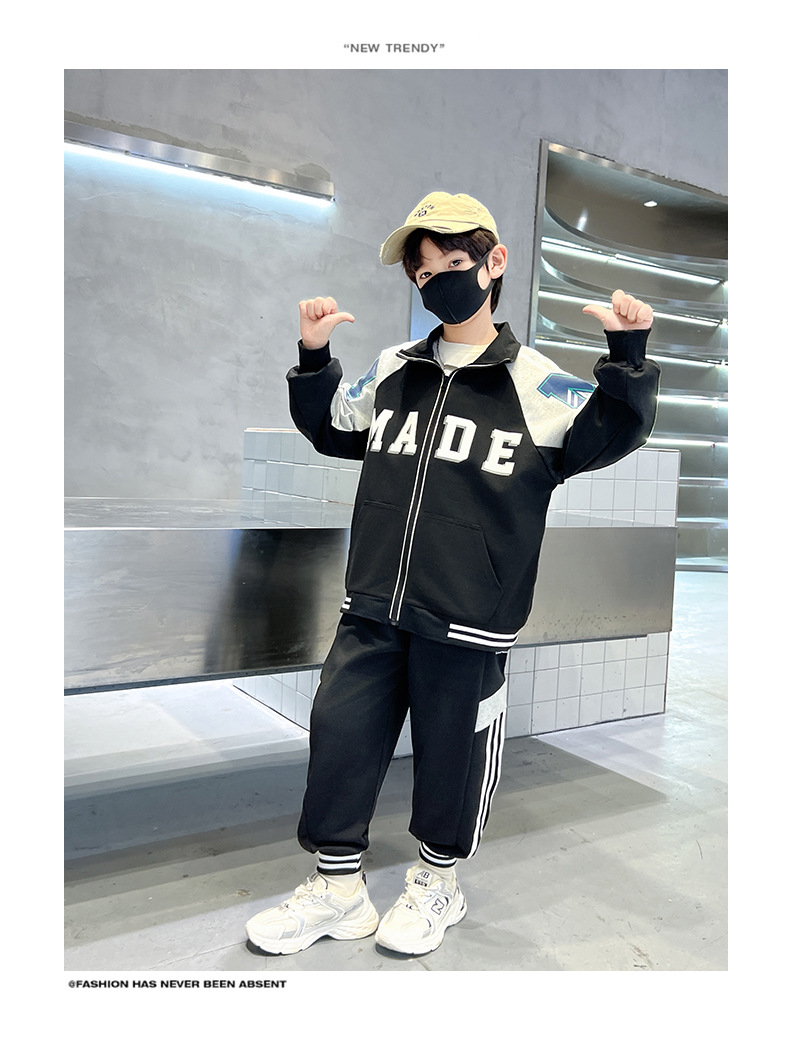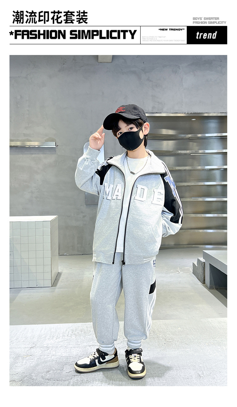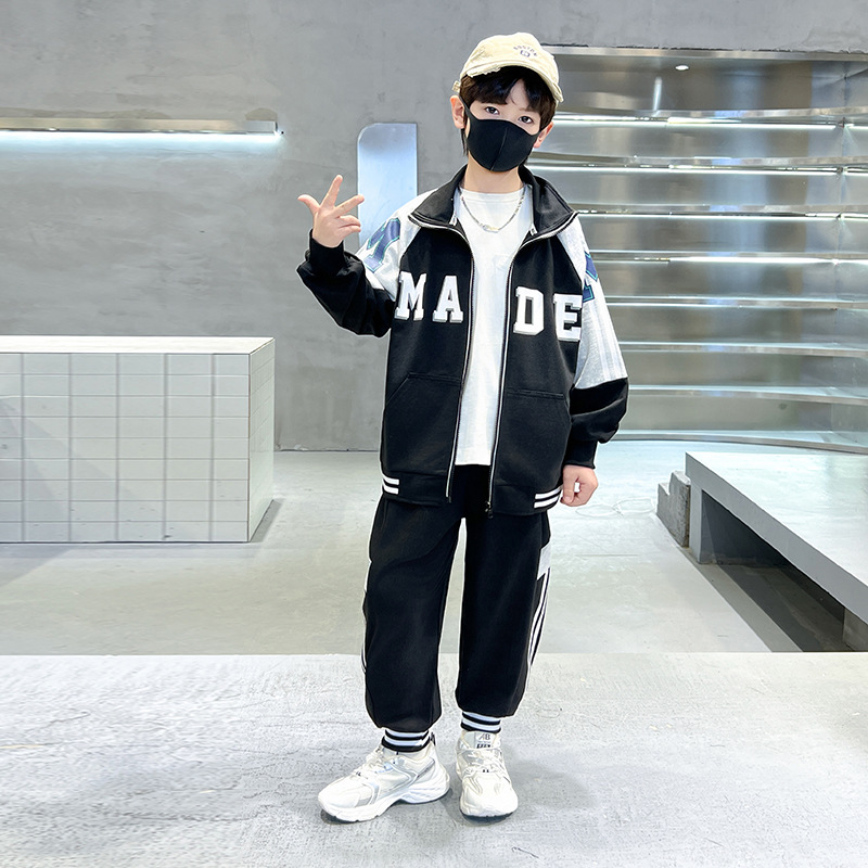 어린이 유행 편지 느슨한 캐주얼 세트 중형 및 대형 어린이 패션 지퍼 카디건 서양식 스웨터 스웨트 팬츠 투피스 세트