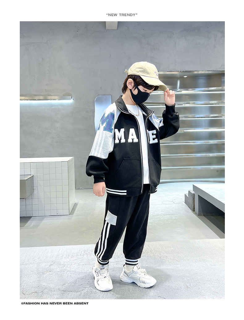 어린이 유행 편지 느슨한 캐주얼 세트 중형 및 대형 어린이 패션 지퍼 카디건 서양식 스웨터 스웨트 팬츠 투피스 세트스토어 가기