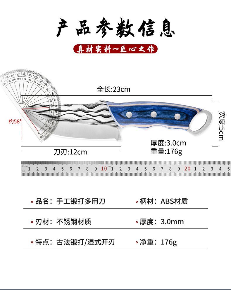 푸른 고래 단조 몽골 손잡이 고기 다목적 쇠고기와 양고기 칼 구운 고기 스테이크 과일 칼 수제 정육점 칼