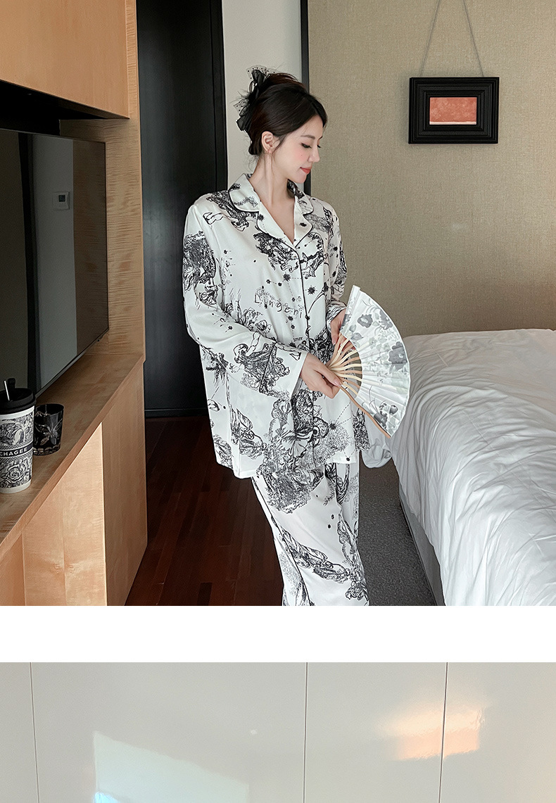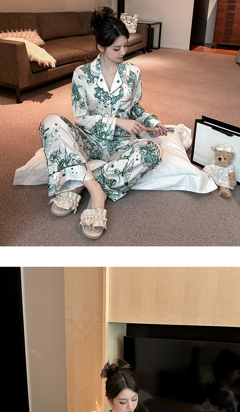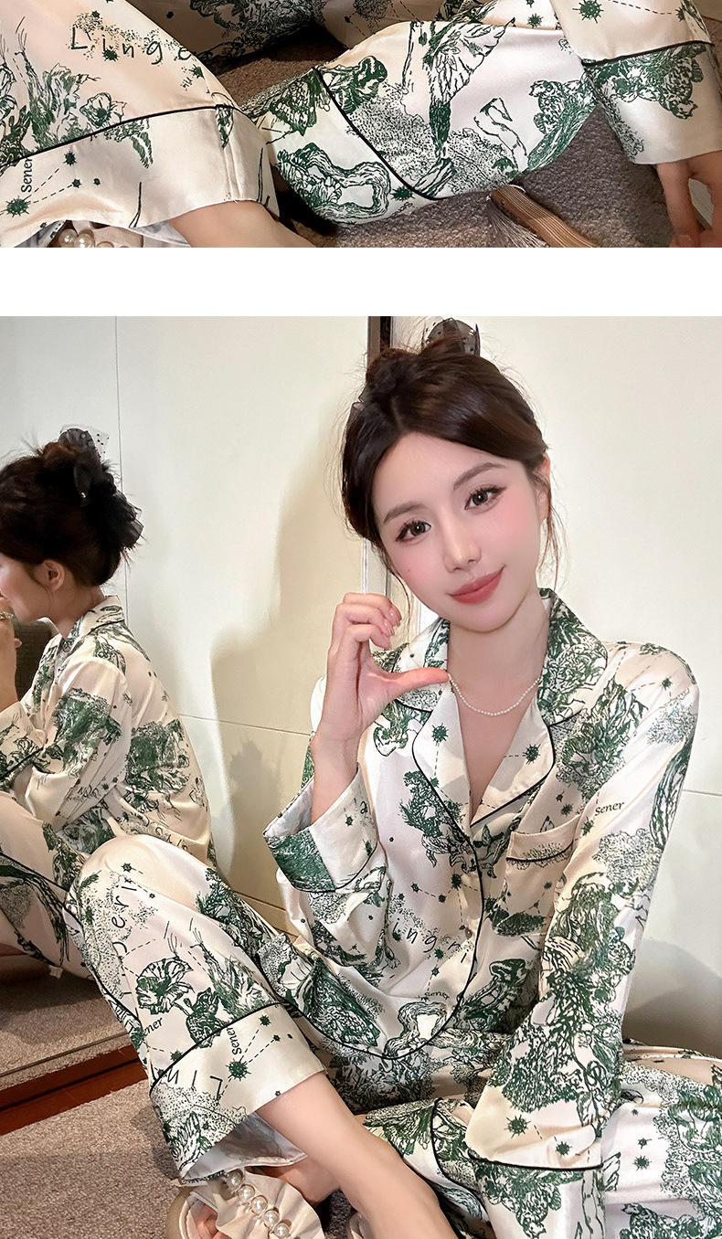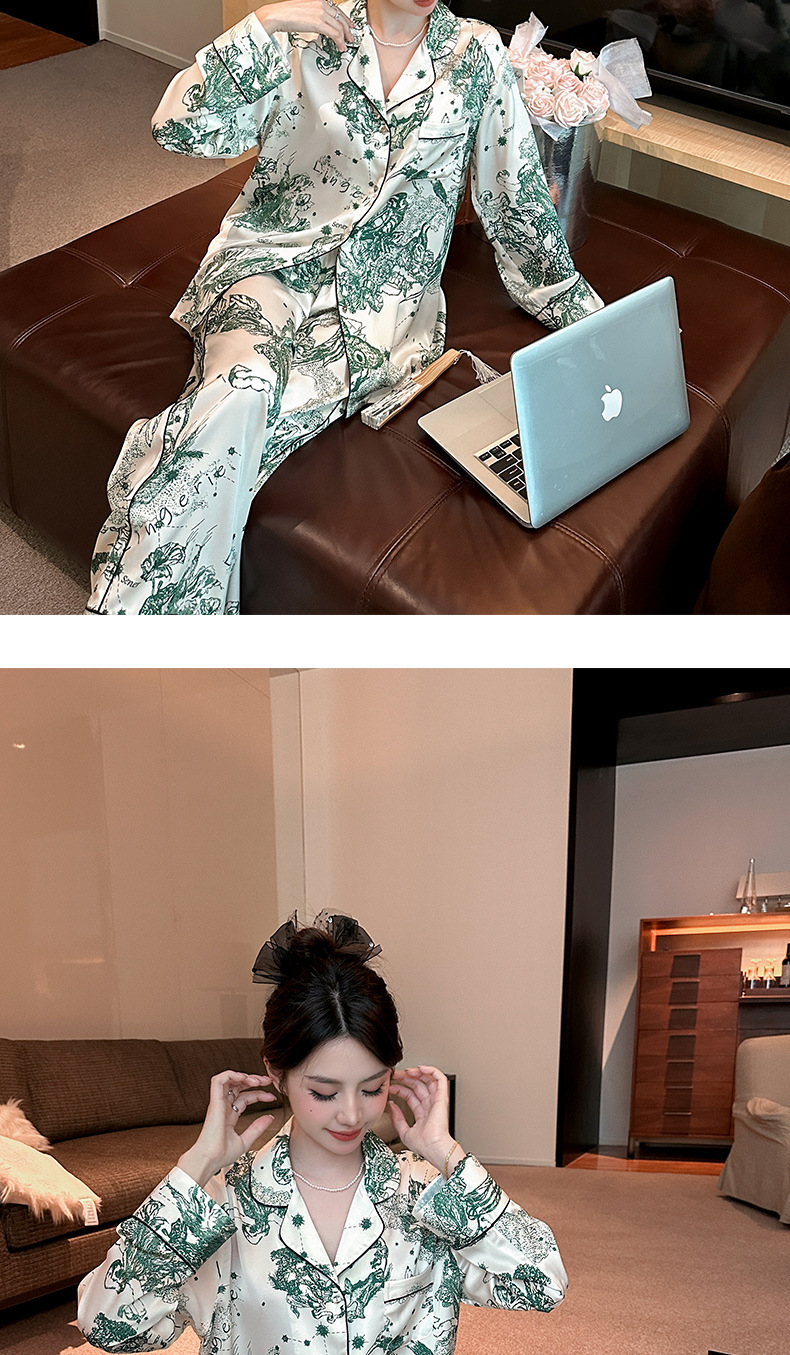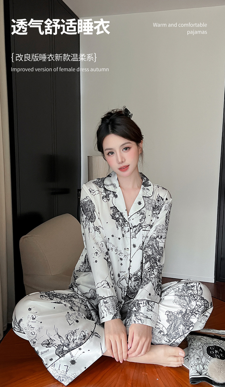 하이 퀄리티 아이스 실크 잠옷 여성 수묵화 높은 감각 봄과 가을 새로운 야외 홈 착용 여름 틈새 세트