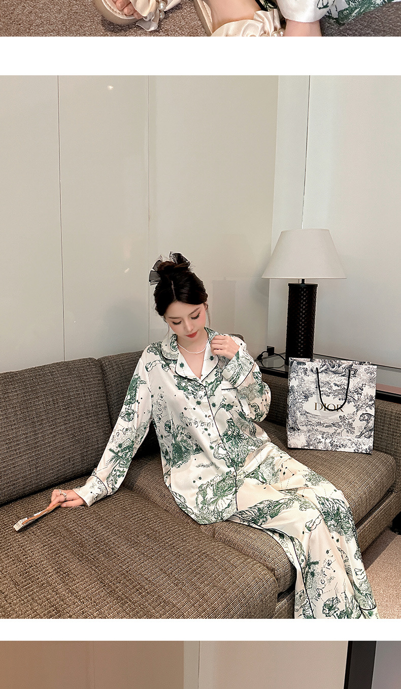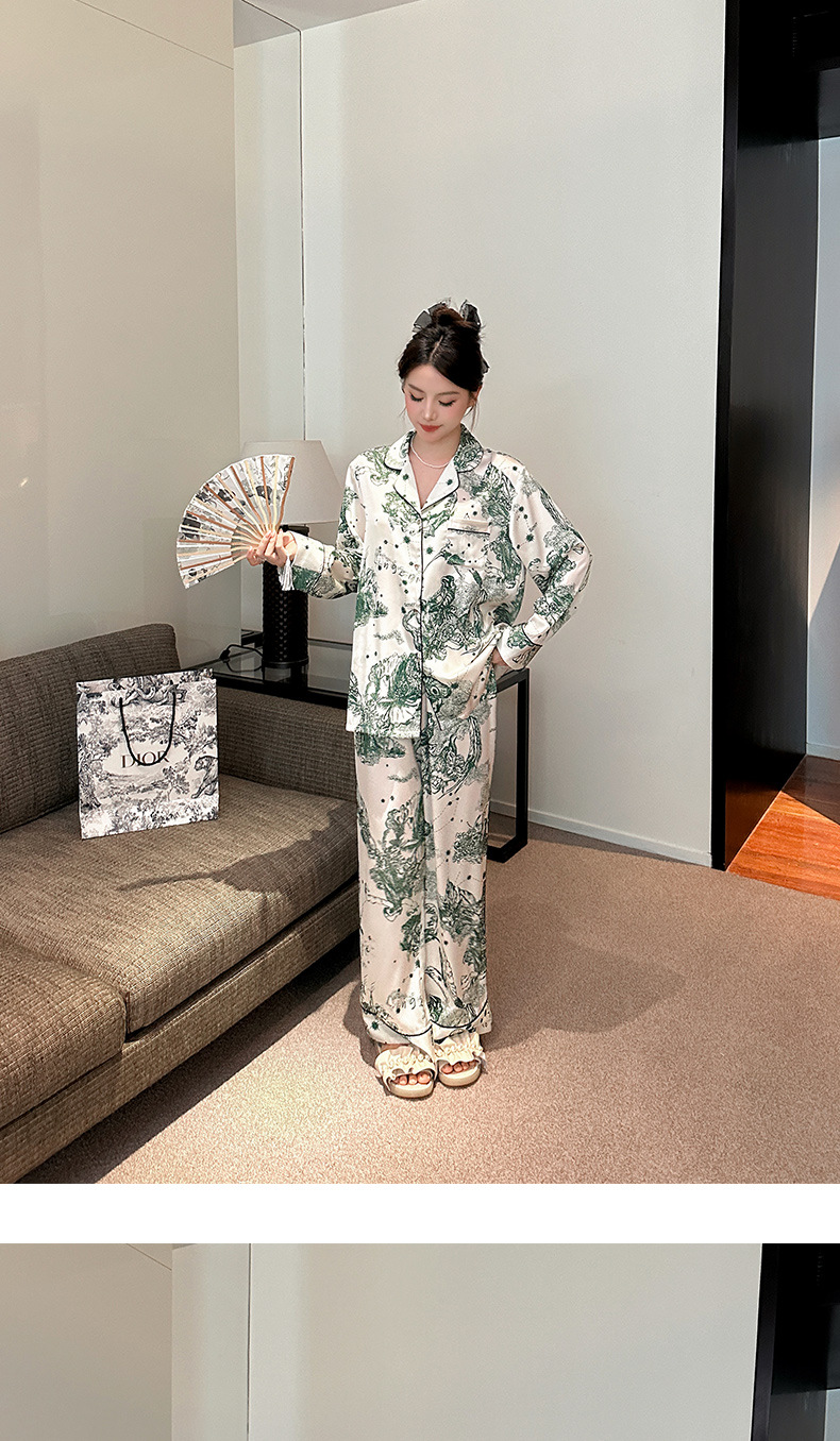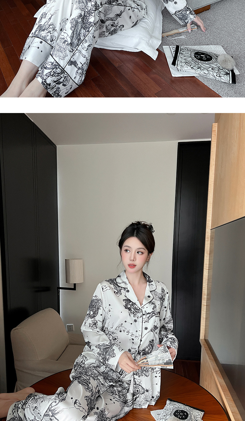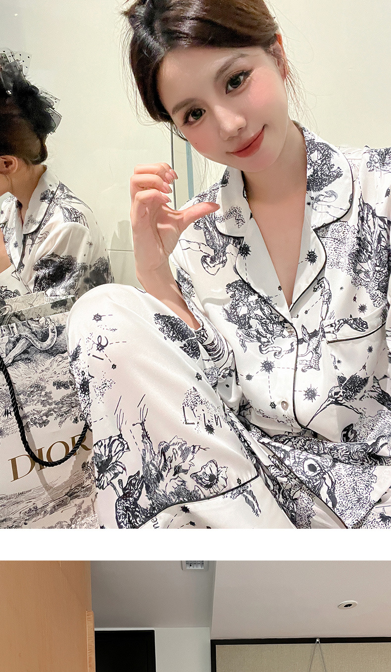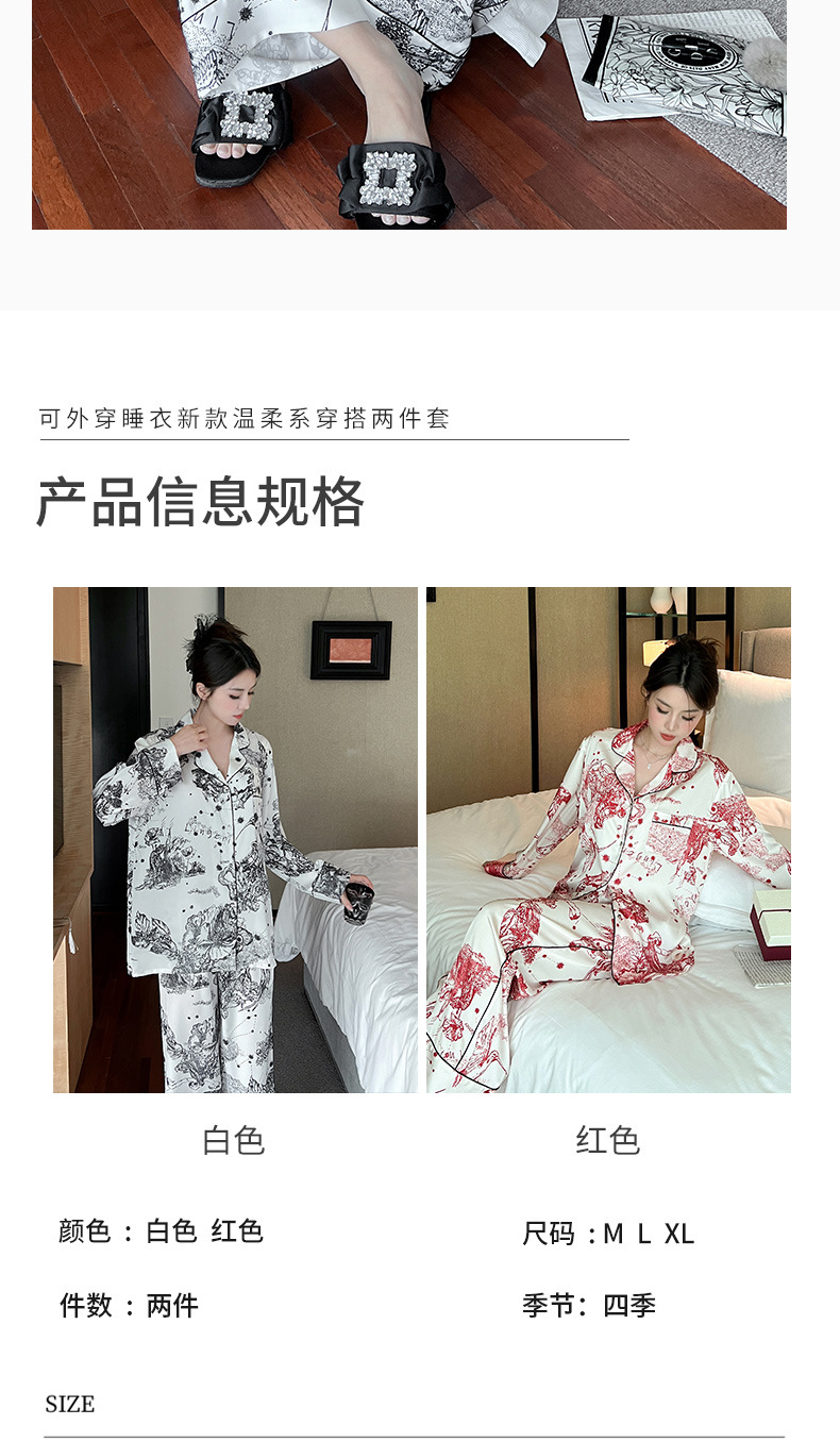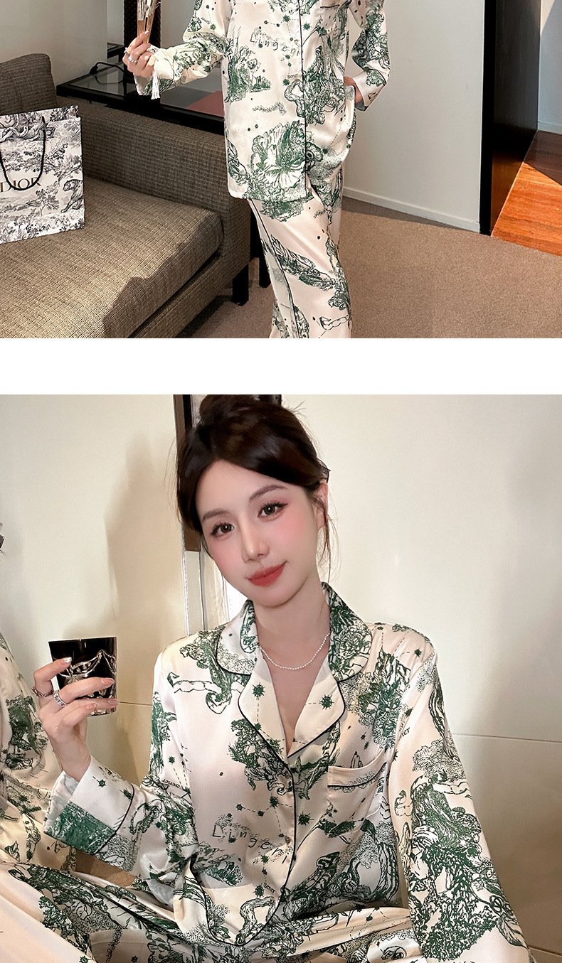 하이 퀄리티 아이스 실크 잠옷 여성 수묵화 높은 감각 봄과 가을 새로운 야외 홈 착용 여름 틈새 세트