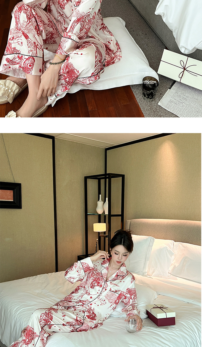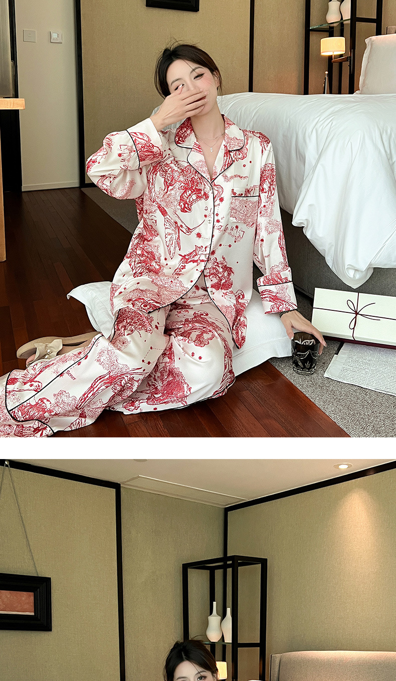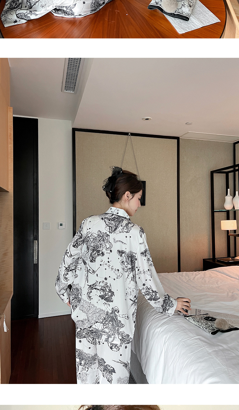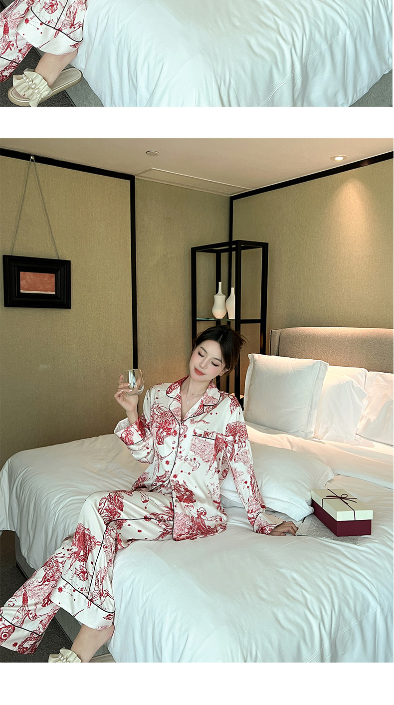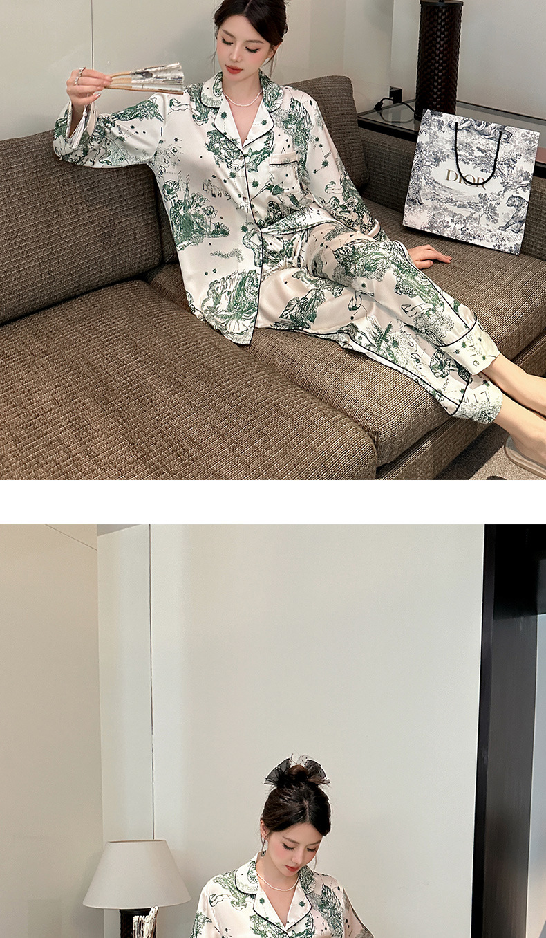 하이 퀄리티 아이스 실크 잠옷 여성 수묵화 높은 감각 봄과 가을 새로운 야외 홈 착용 여름 틈새 세트
