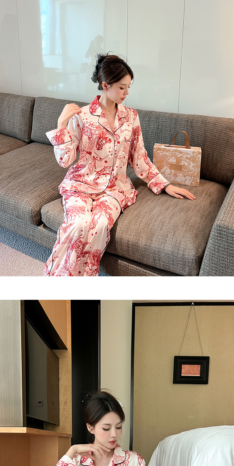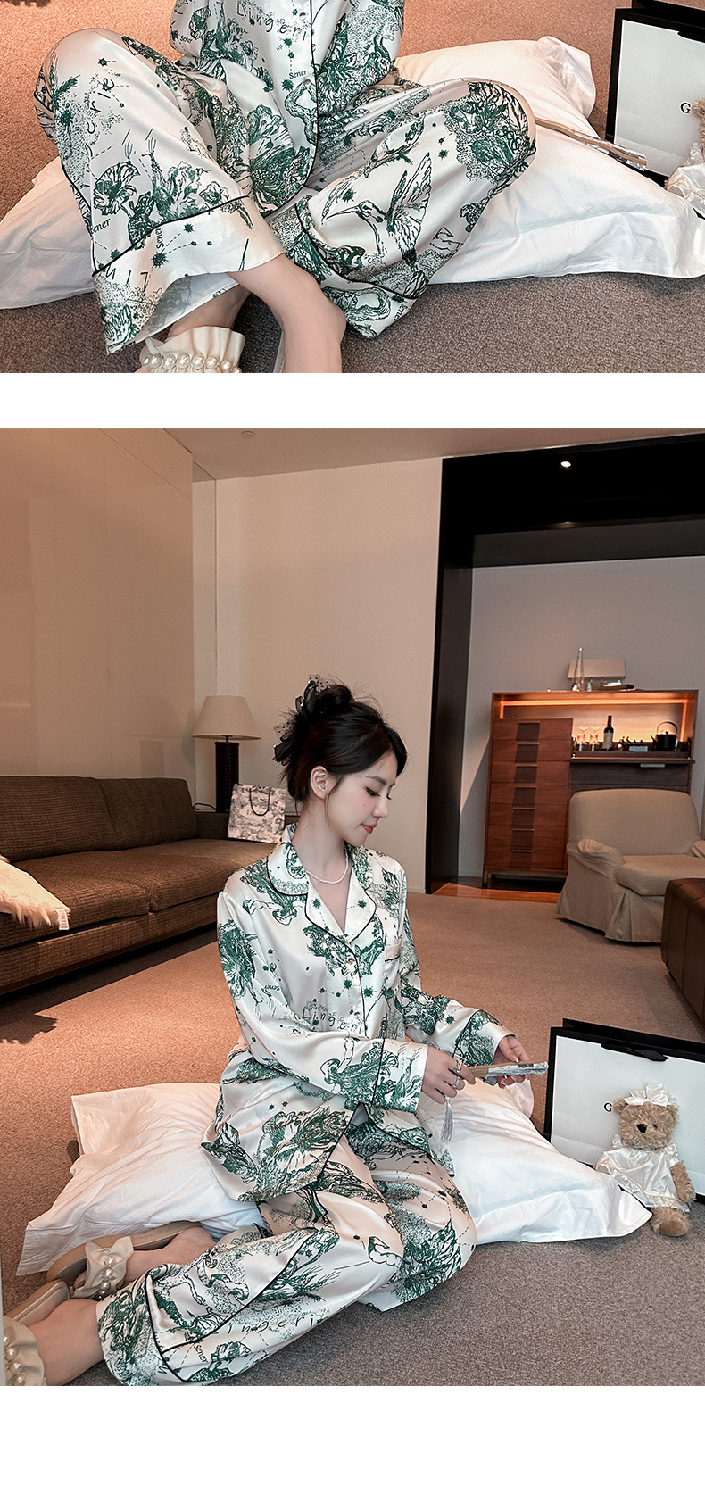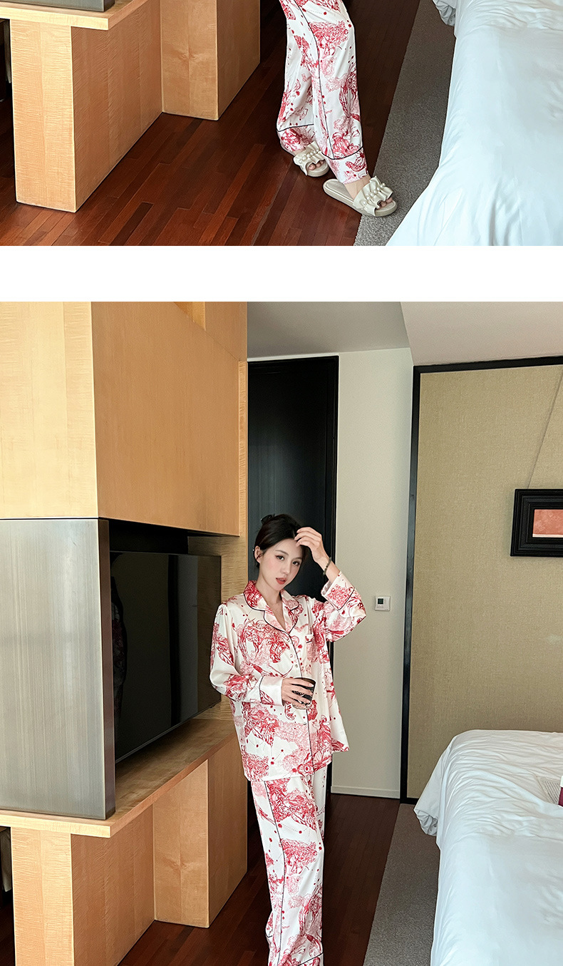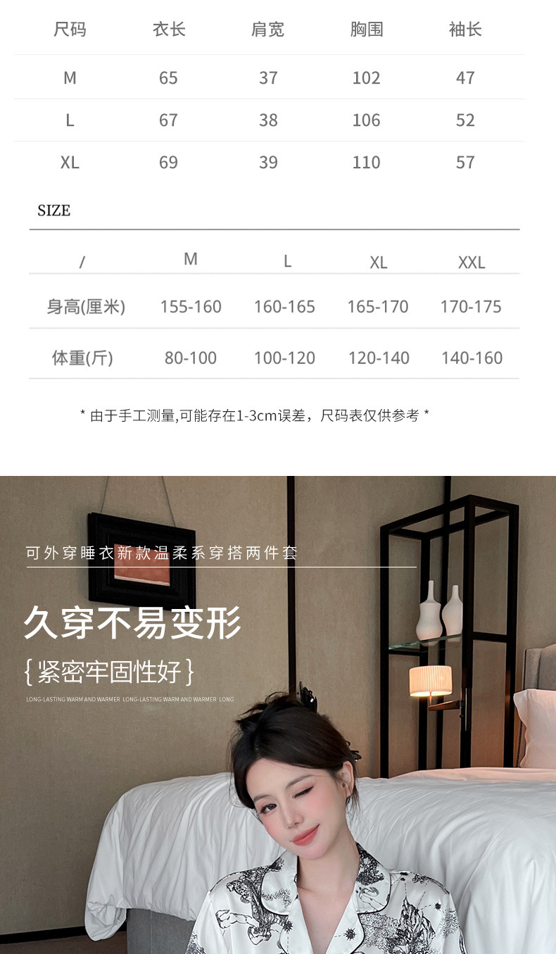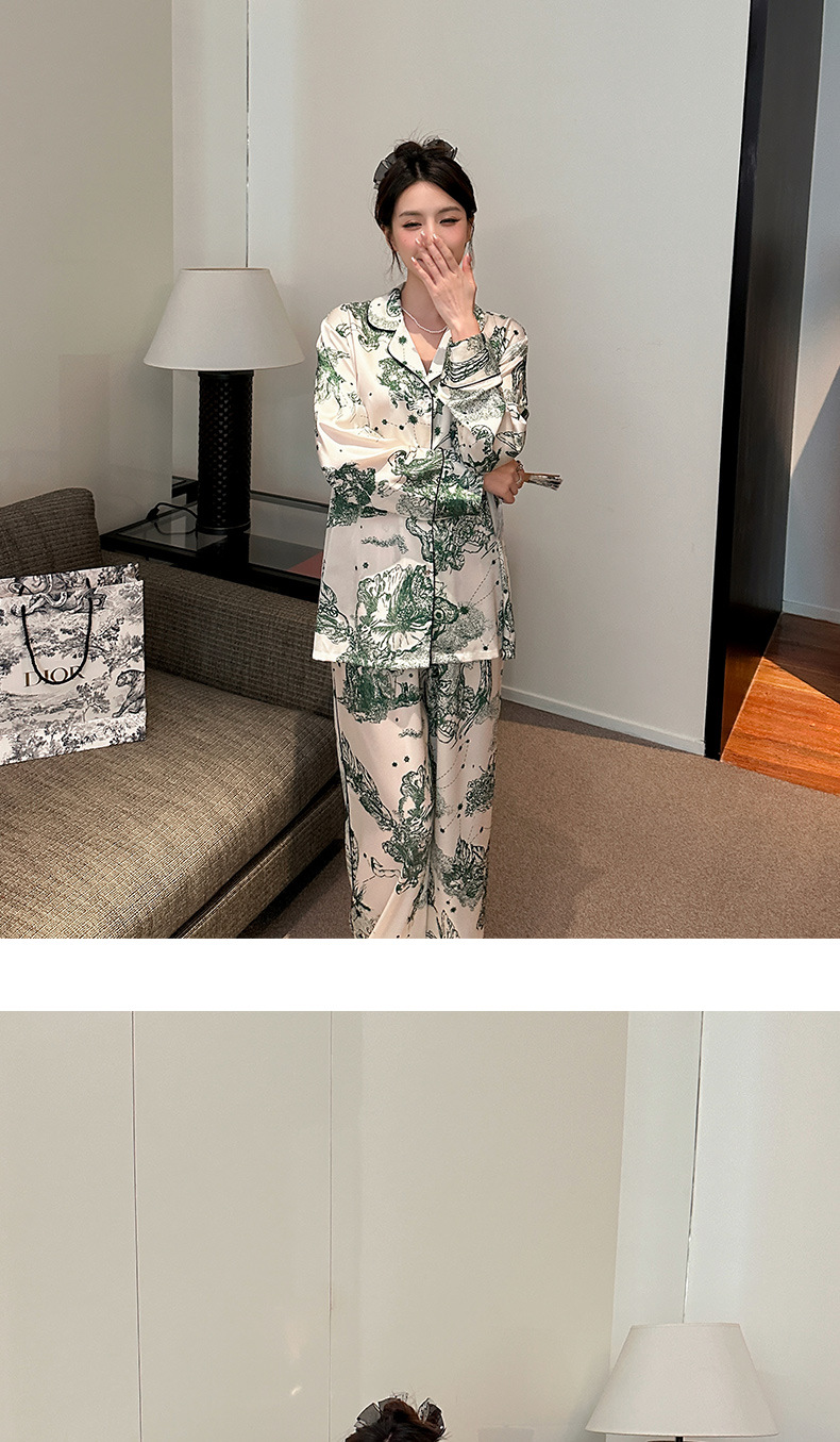 하이 퀄리티 아이스 실크 잠옷 여성 수묵화 높은 감각 봄과 가을 새로운 야외 홈 착용 여름 틈새 세트