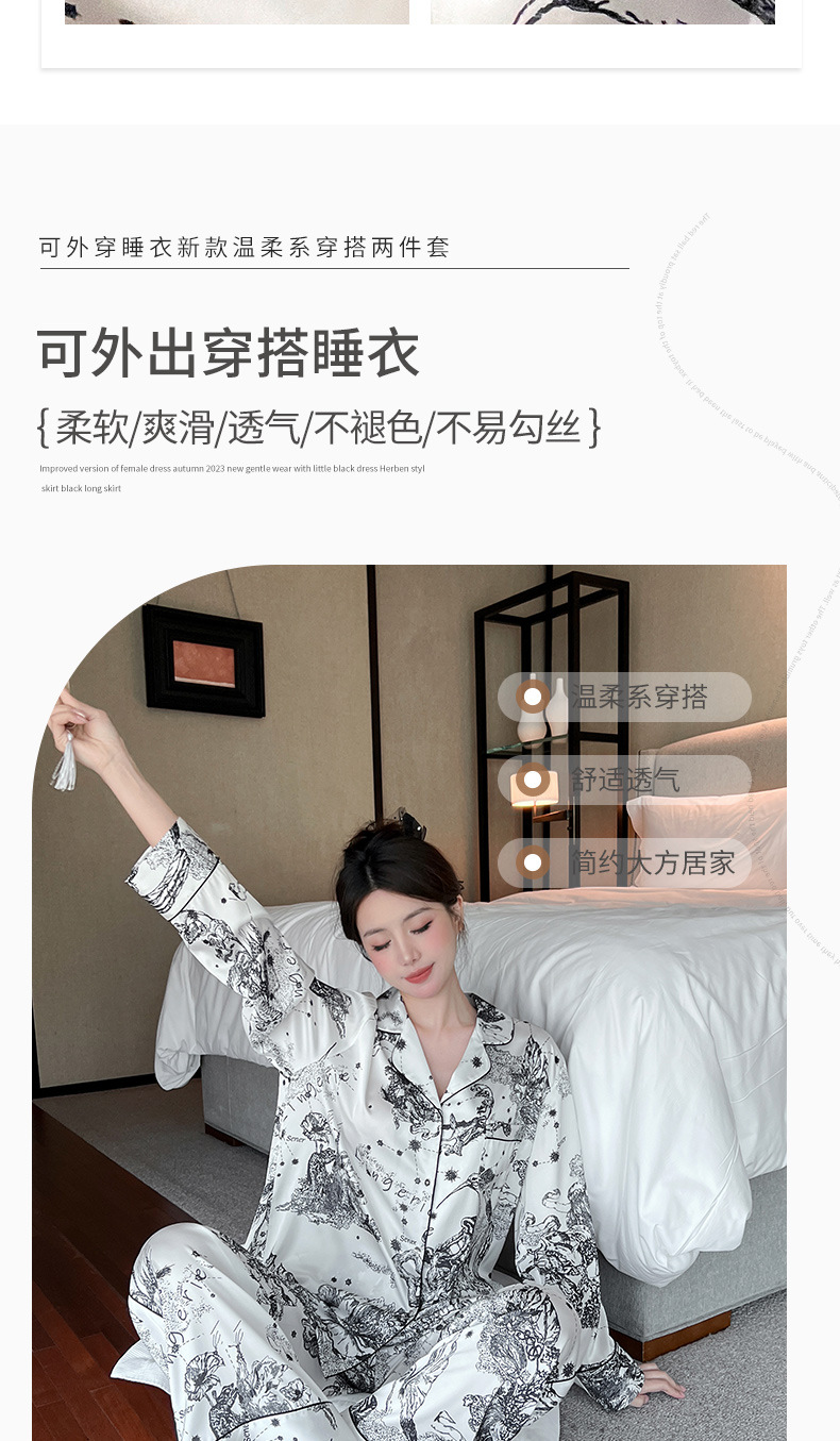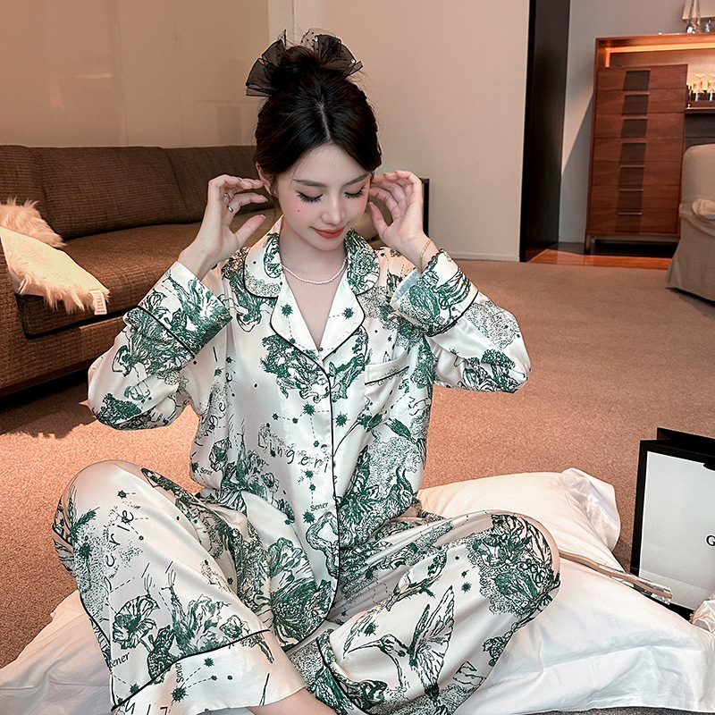 하이 퀄리티 아이스 실크 잠옷 여성 수묵화 높은 감각 봄과 가을 새로운 야외 홈 착용 여름 틈새 세트스토어 가기