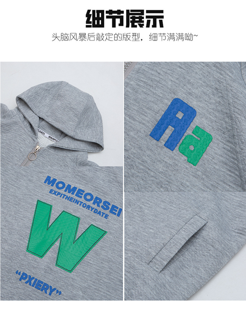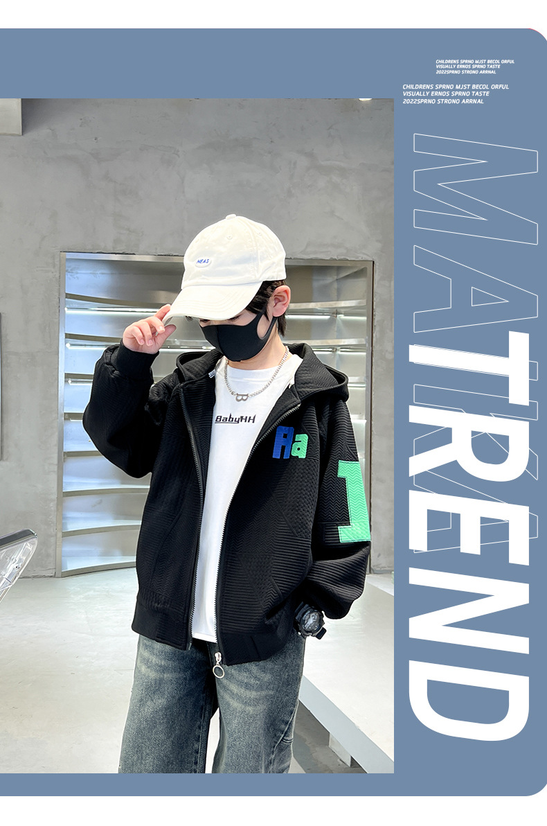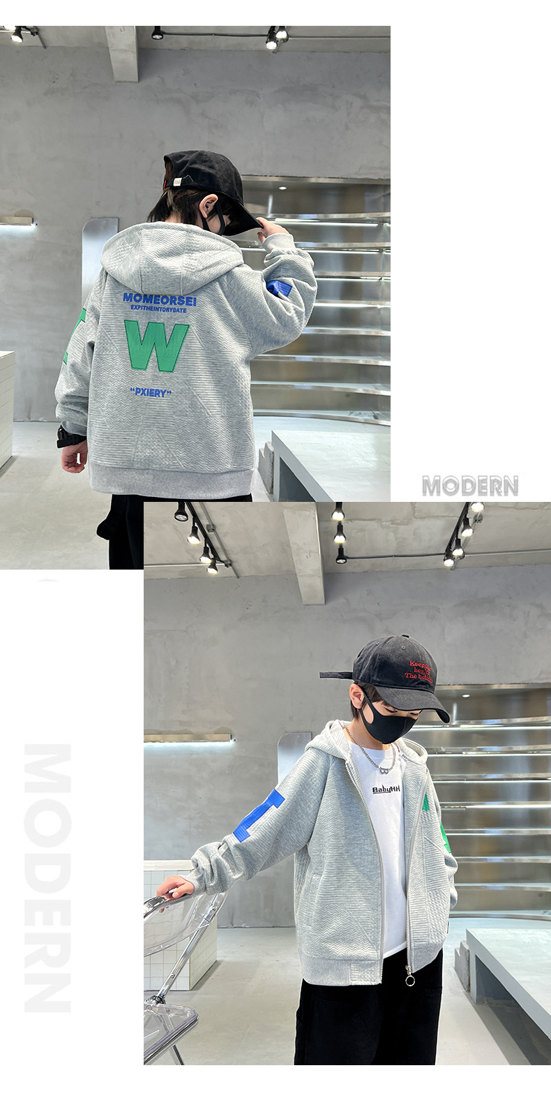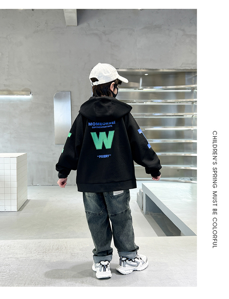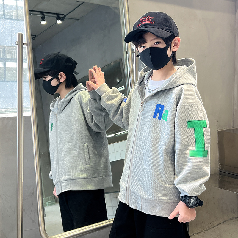 어린이 대학 스타일의 세련된 세련된 편지 후드 스웨터 봄 중형 및 대형 소년 야구 유니폼 지퍼 카디건 재킷