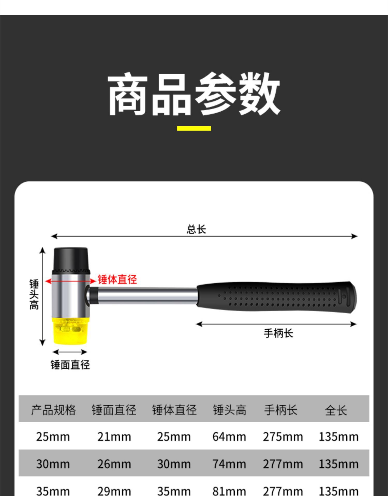 • 25mm (검은 색과 노란색) 해머 헤드 5 각