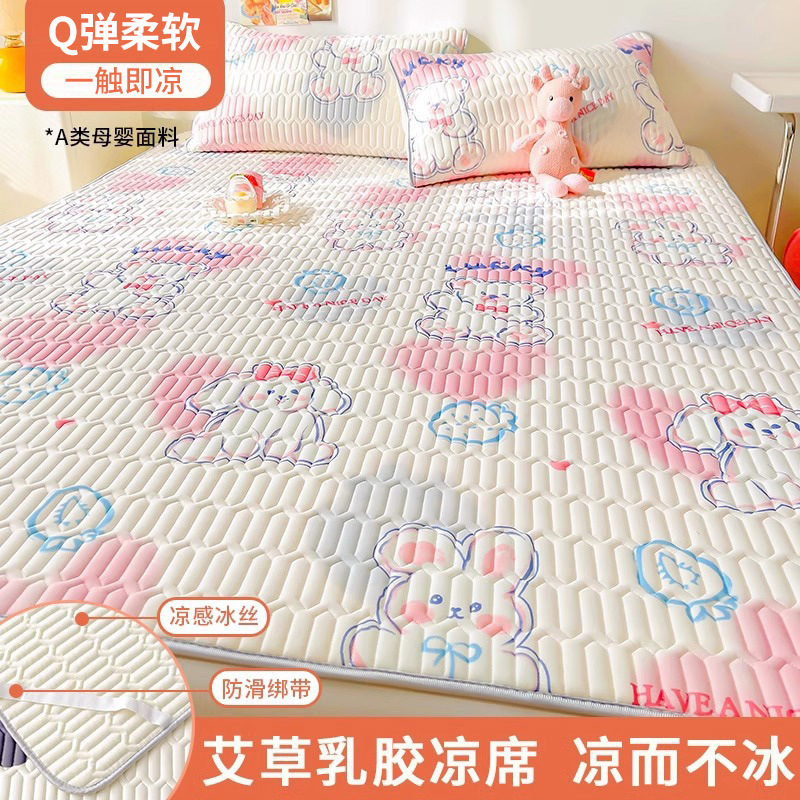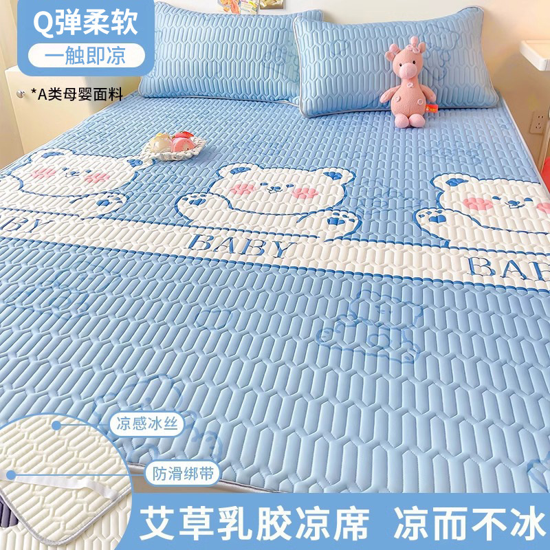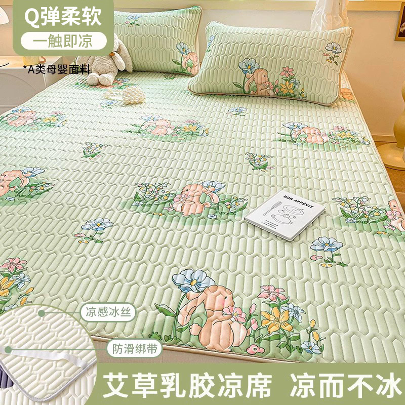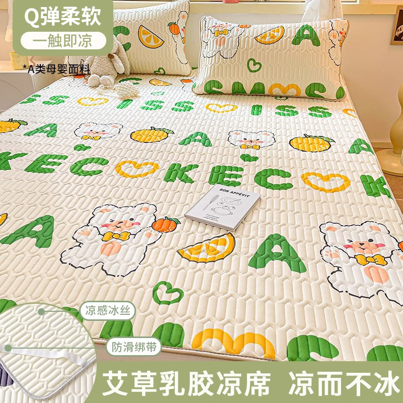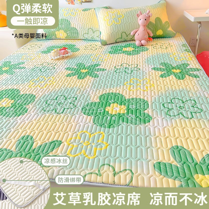 라텍스 매트 3종 세트 침대 시트, 매트리스 커버, 접이식 미끄럼 방지 시원한 소프트 매트 에어컨 매트 도매 매트리스 커버스토어 가기