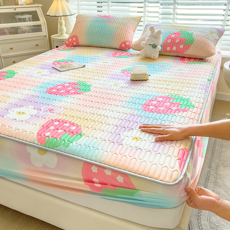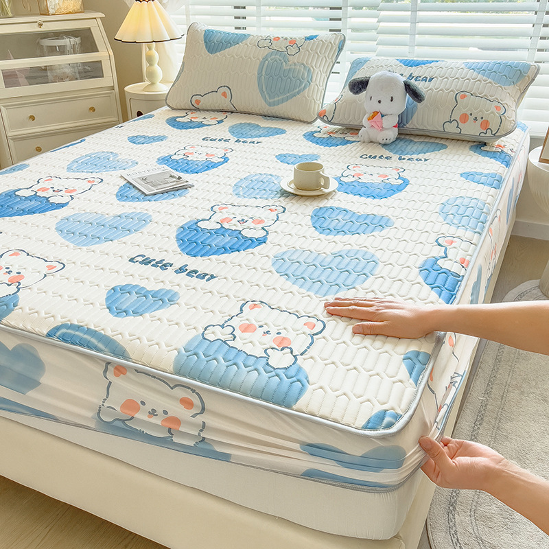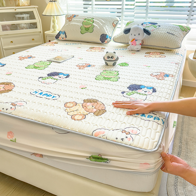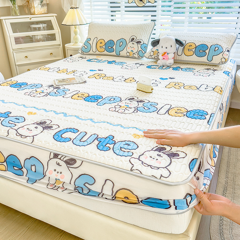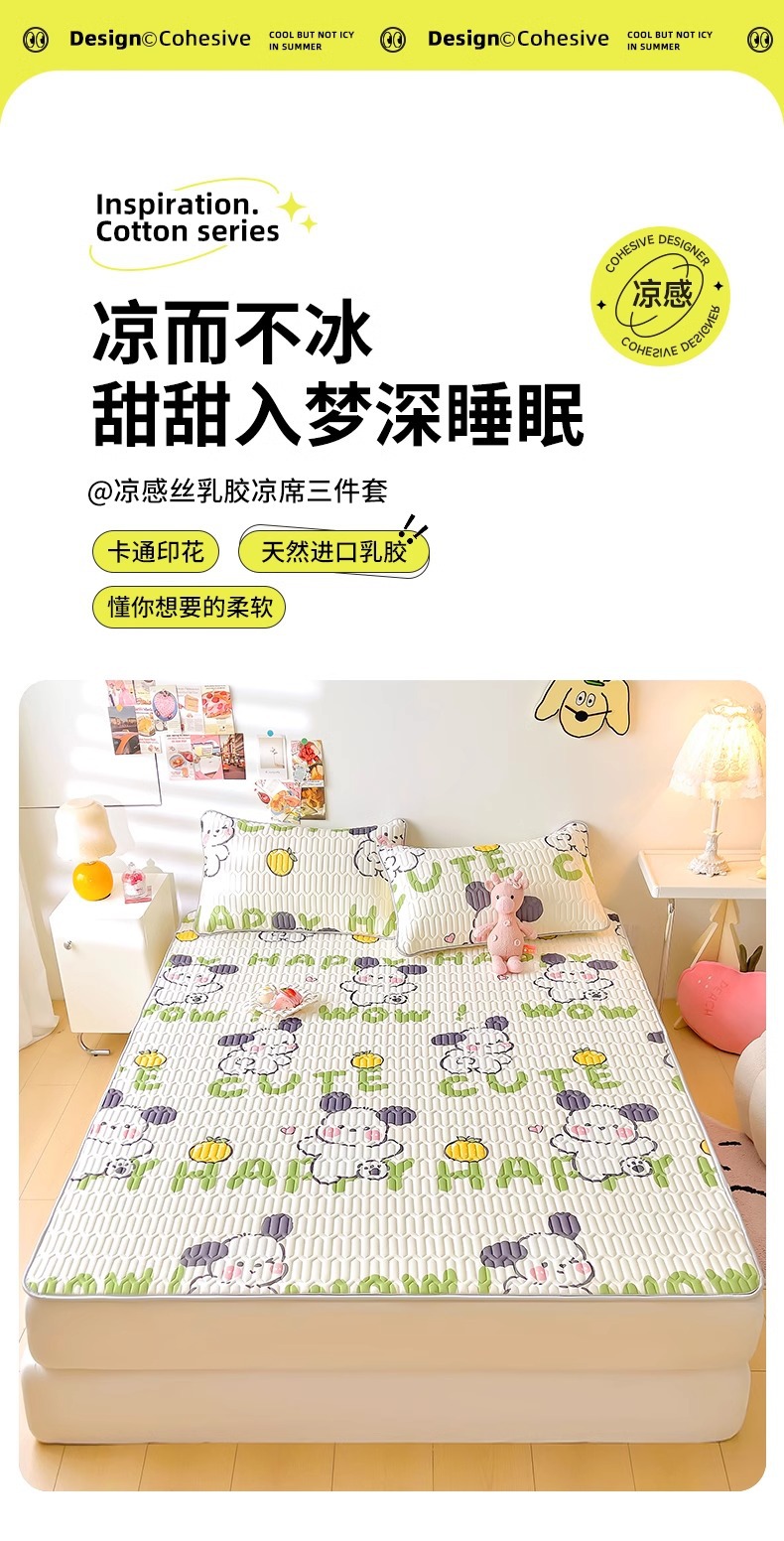 라텍스 매트 3종 세트 침대 시트, 매트리스 커버, 접이식 미끄럼 방지 시원한 소프트 매트 에어컨 매트 도매 매트리스 커버스토어 가기