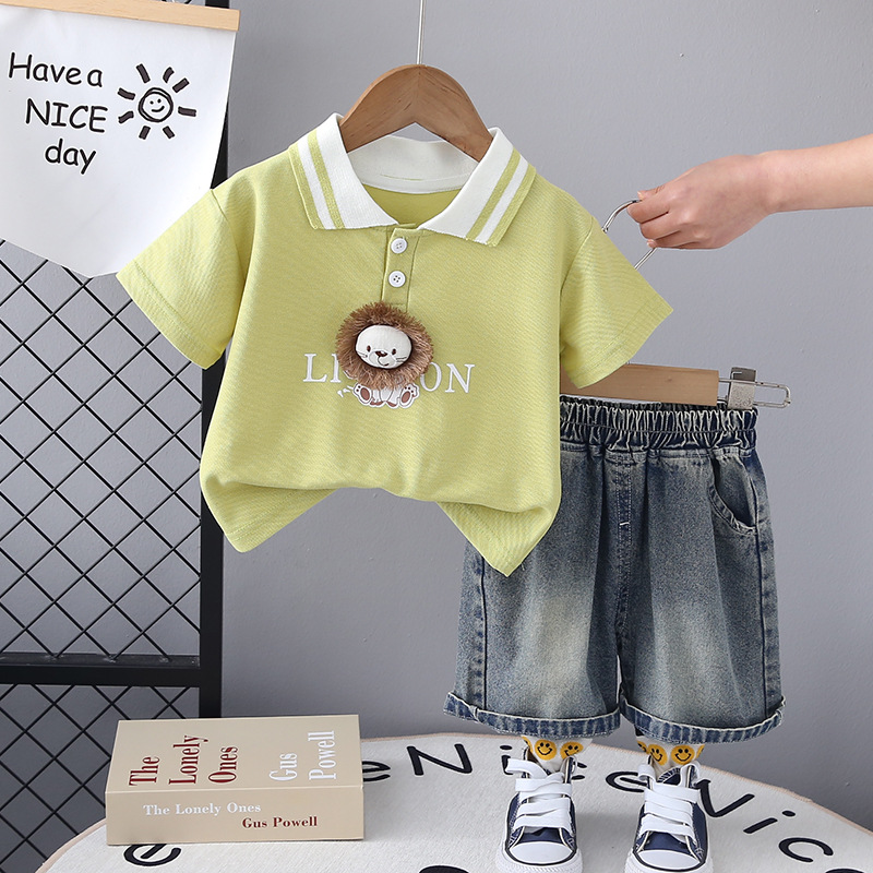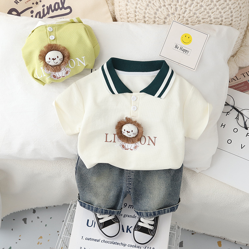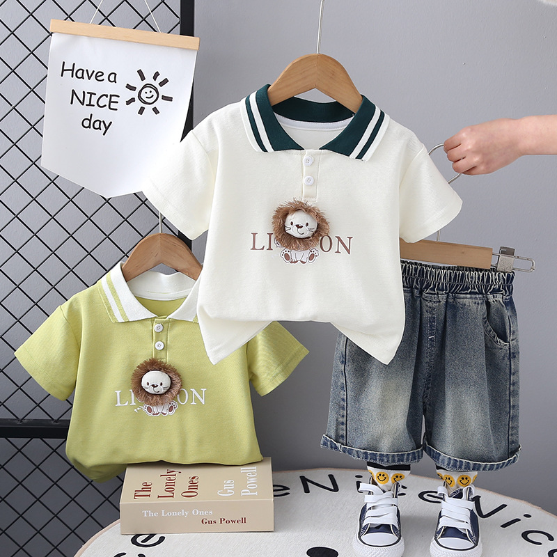 소년 사자 반팔 세트 2024 여름 새로운 한국식 아동복 반바지 투피스 세트스토어 가기