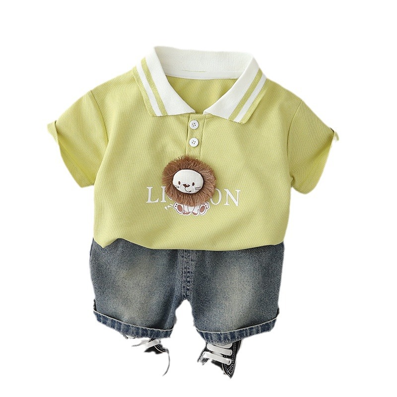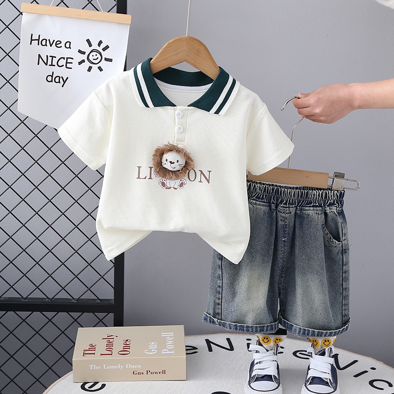 소년 사자 반팔 세트 2024 여름 새로운 한국식 아동복 반바지 투피스 세트