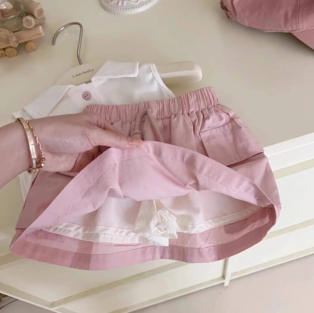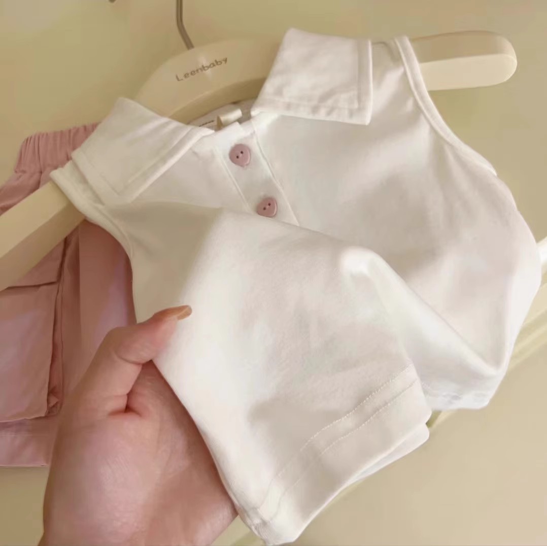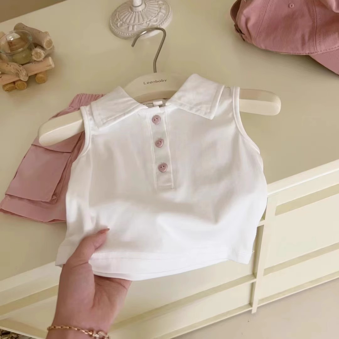 소녀 세트 옷깃 민소매 조끼 플러스 스커트 2024 여름 새 대외 무역 아동복 3-8 세대스토어 가기