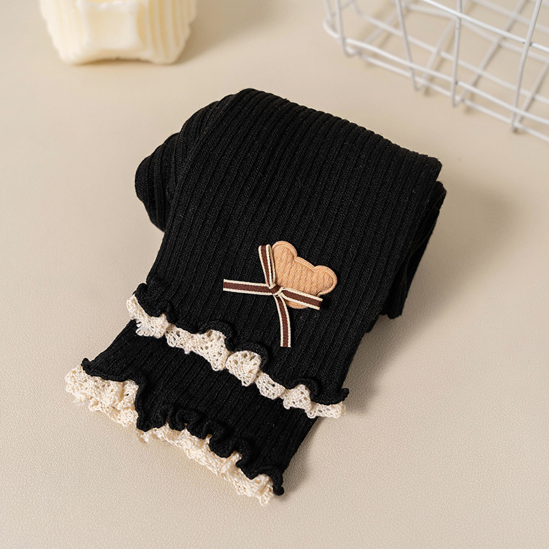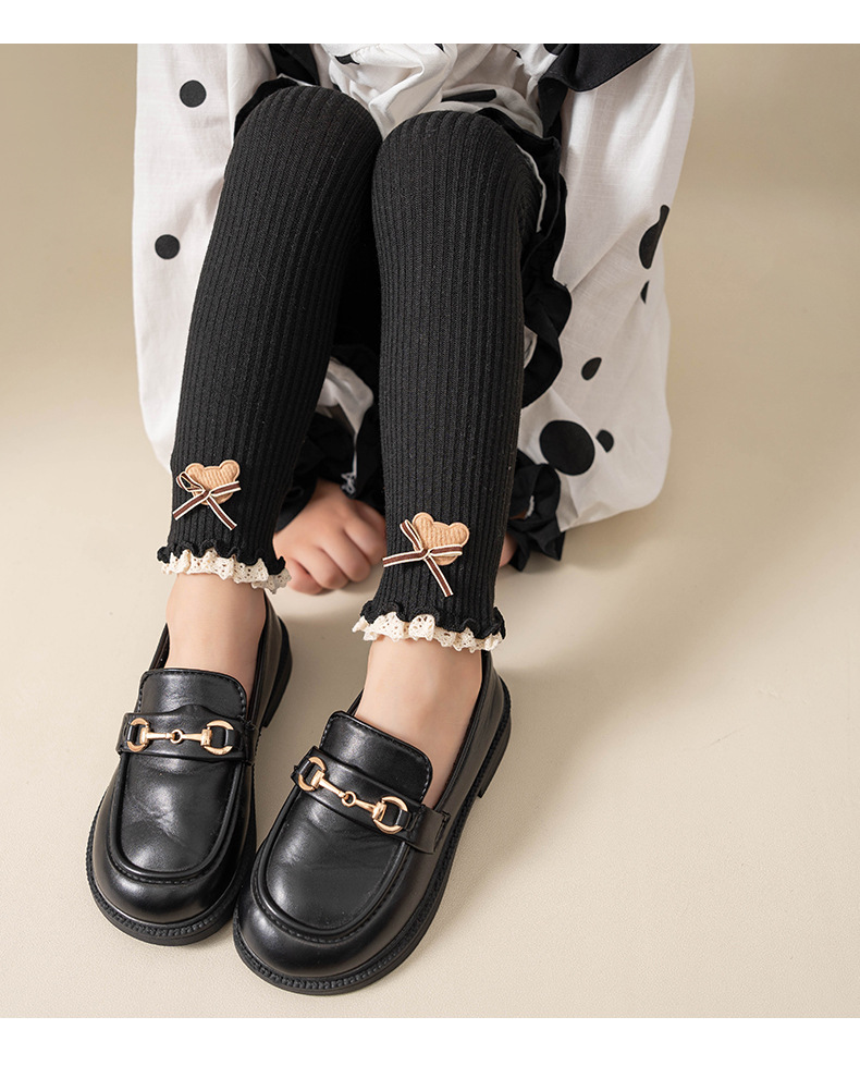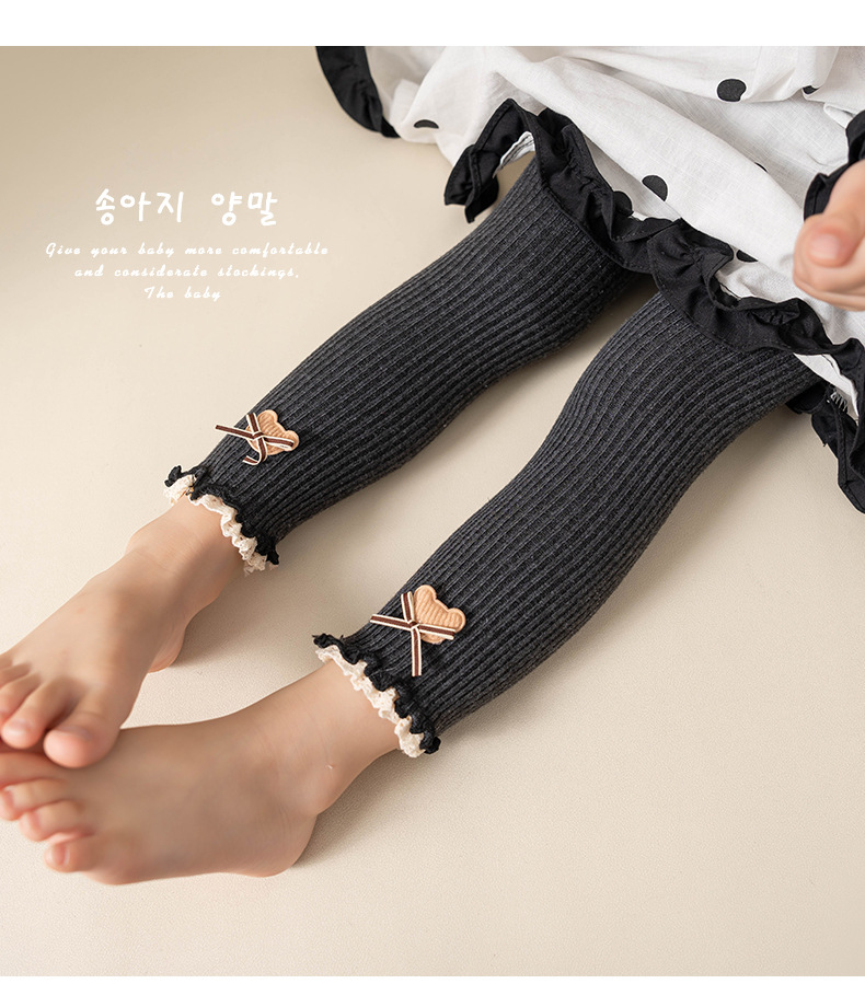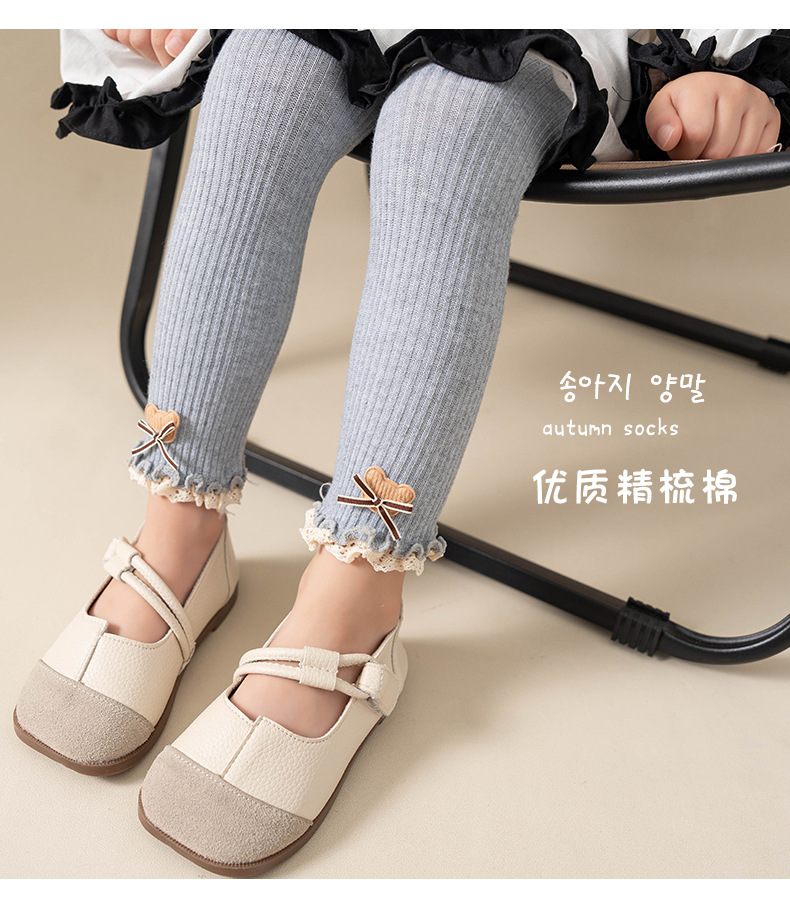 봄과 가을 신제품 얇은 나뭇잎 이중 레이스 리본 어린이 9부 바지 오픈 파일 레깅스스토어 가기