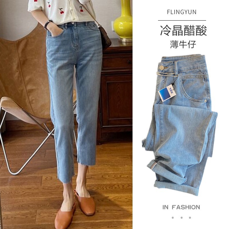 여성을위한 나노 봄, 가을 스트레이트 청바지 여름 새로운 하이 웨이스트 슬림 라이트 컬러 담배 파이프 바지 여성을위한스토어 가기