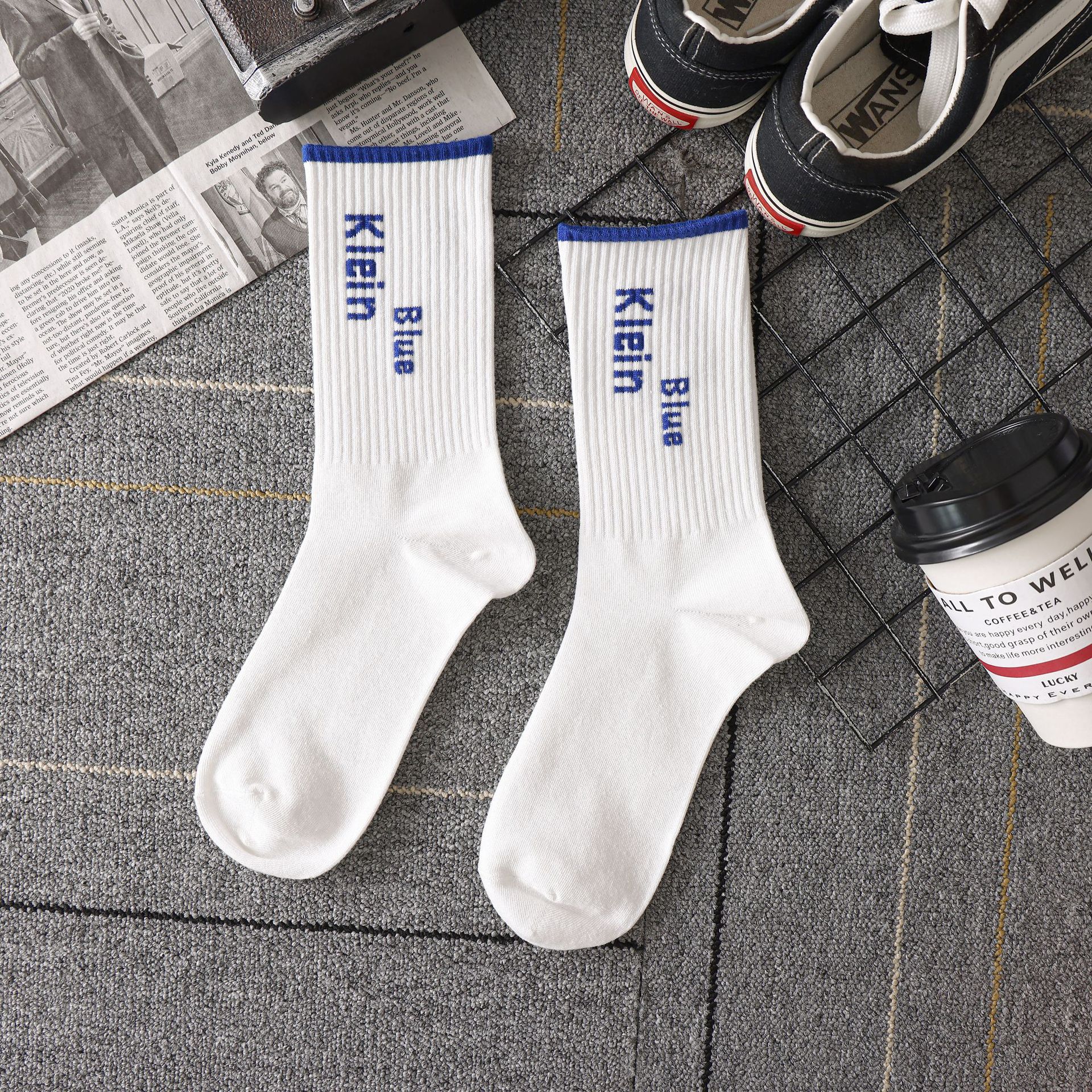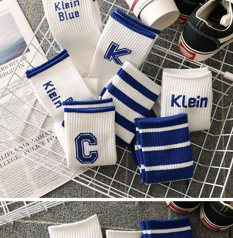 클라인 블루 양말 남자 중반 송아지 올 매칭 인 트렌디 한 롱 탈취제 스포츠 농구 양말 가을과 겨울 남자 스타킹스토어 가기