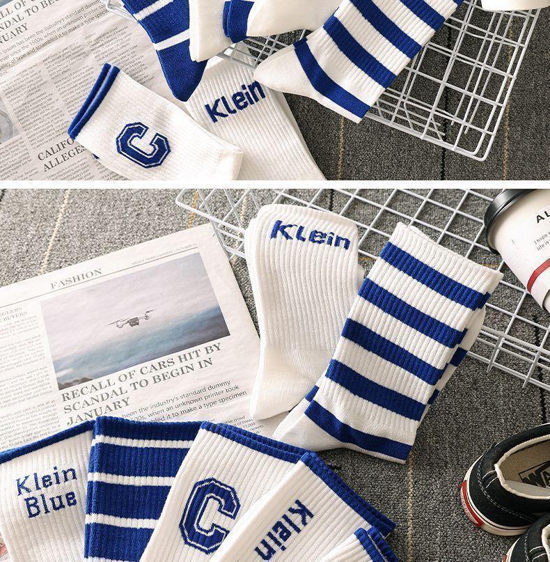 클라인 블루 양말 남자 중반 송아지 올 매칭 인 트렌디 한 롱 탈취제 스포츠 농구 양말 가을과 겨울 남자 스타킹