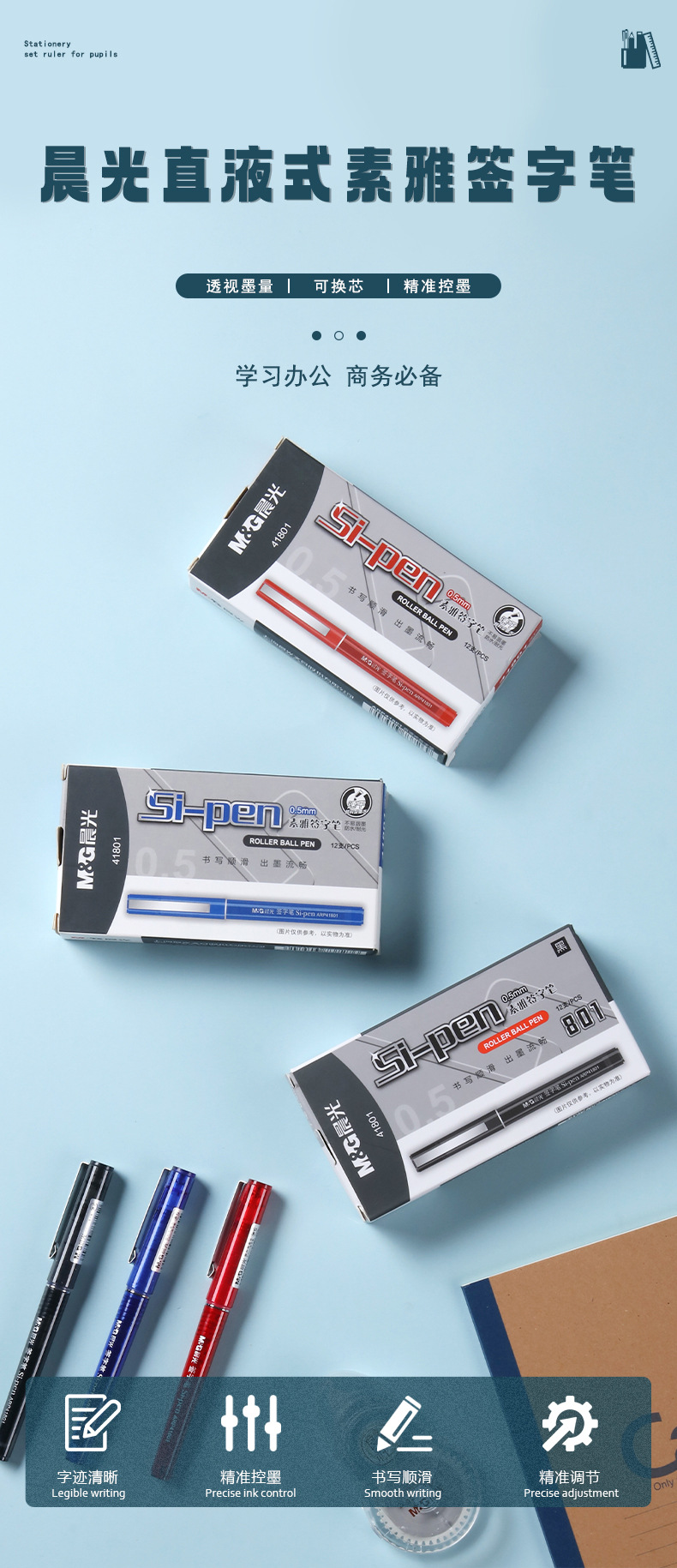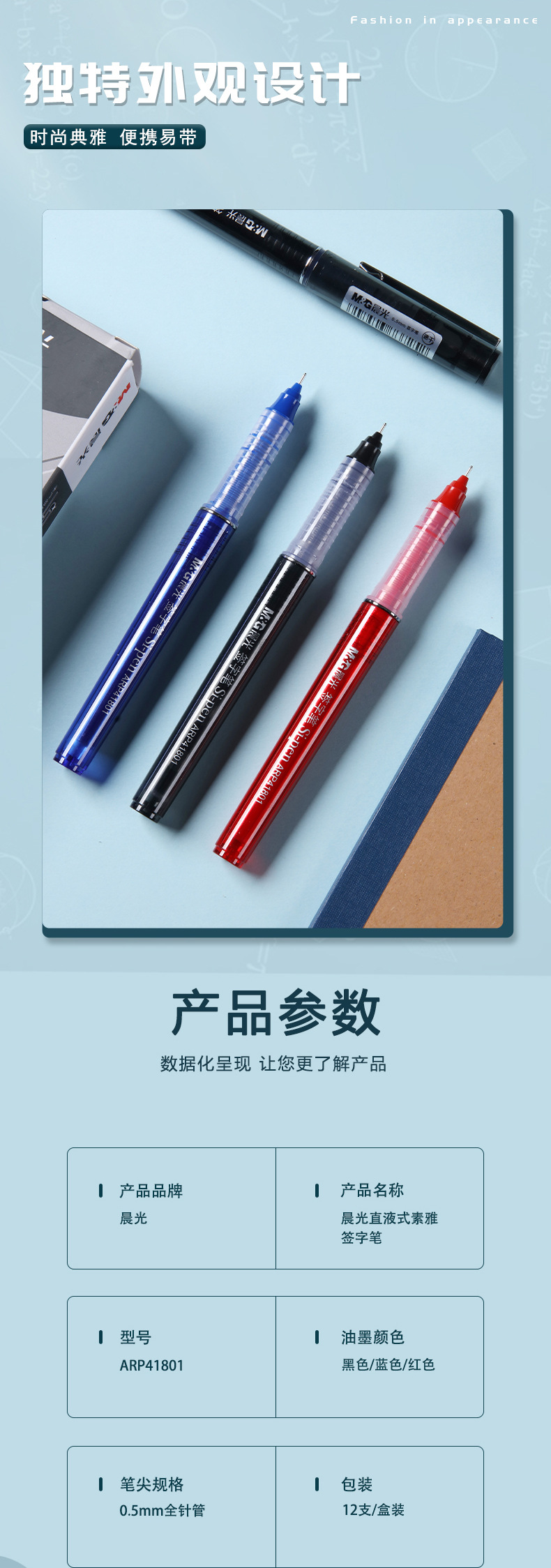 아침 빛 직접 액체 속건성 펜 도매 ARP41801 사무실 서명 슈퍼 부드러운 전체 바늘 튜브 젤 펜 0.5mm