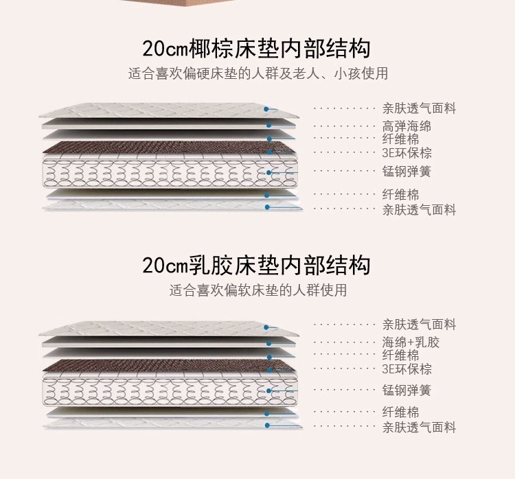 • 침대 + 20cm 척추 보호 코코넛 팜 매트리스 + 침대 옆 테이블 * 1