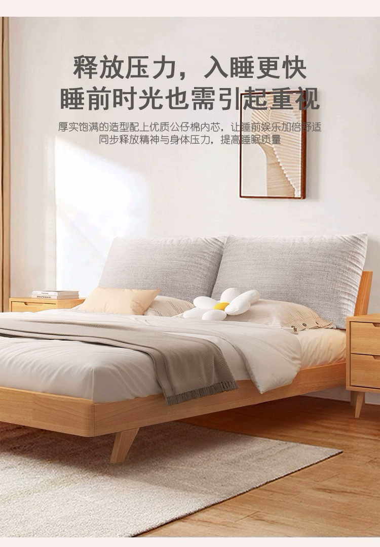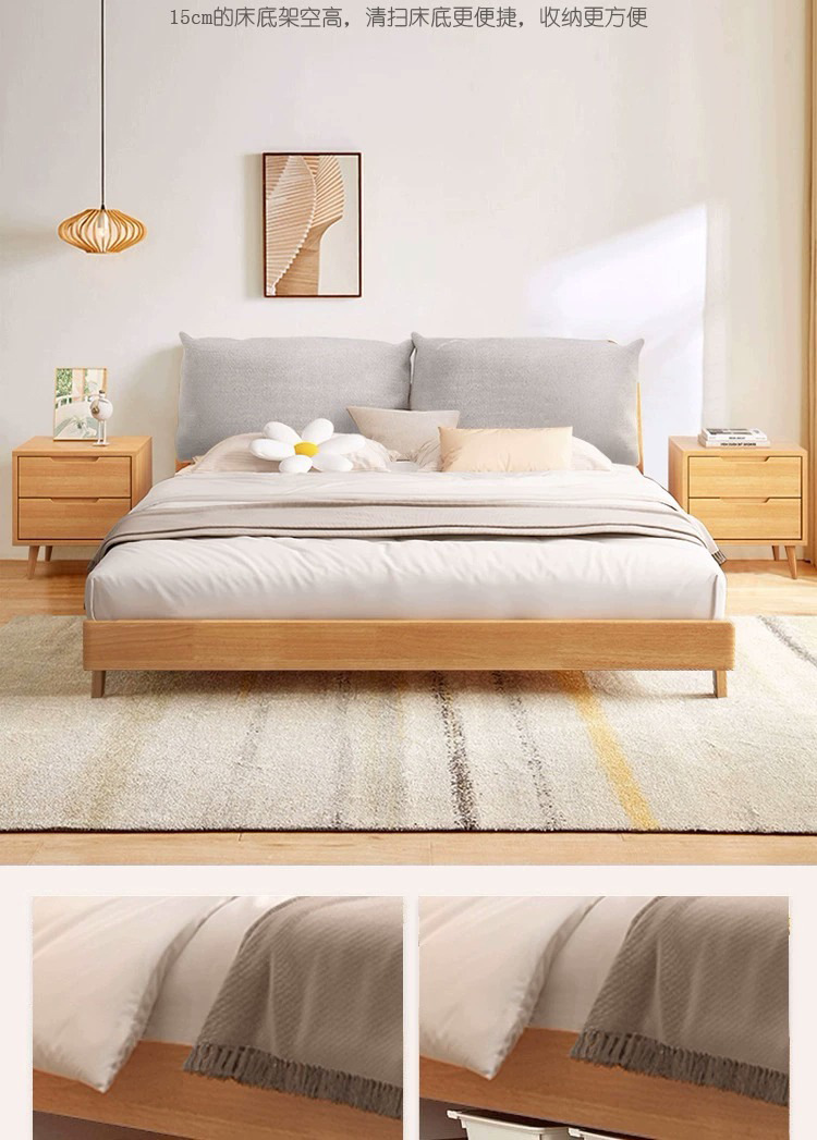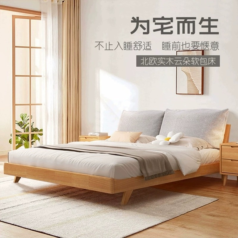 북유럽 단단한 나무 침대 일본 부드러운 더블 침대 로그 현대 간단한 1.8 m 마스터 침실 웨딩 침대 1.5 경제적스토어 가기