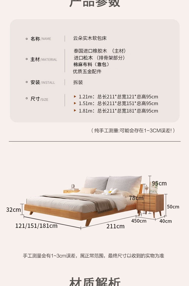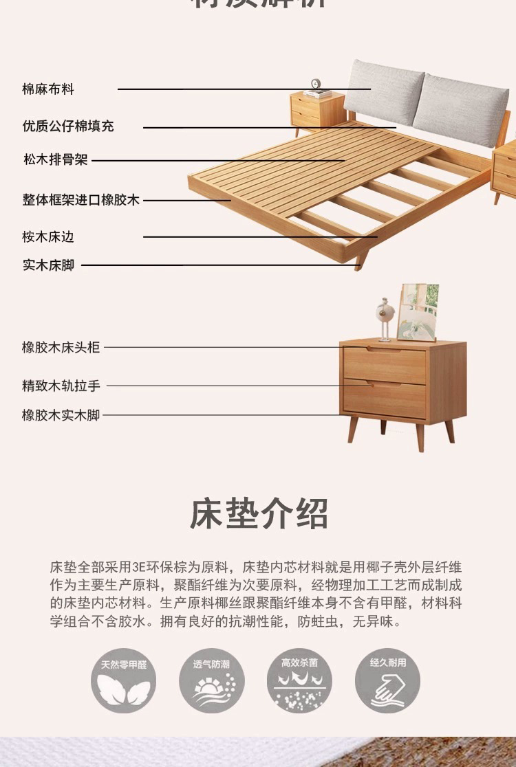 • 침대 + 20cm 척추 보호 코코넛 팜 매트리스 + 침대 옆 테이블 * 2