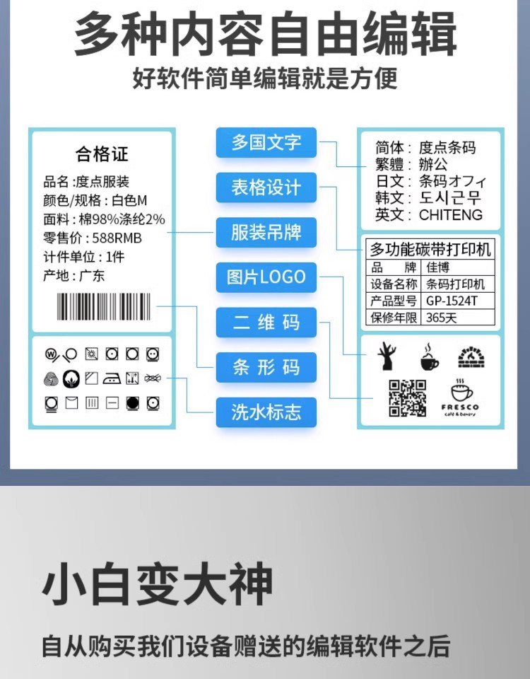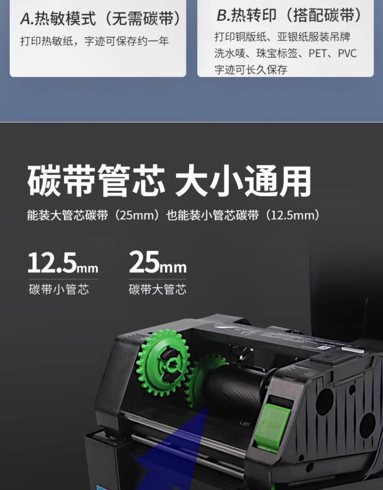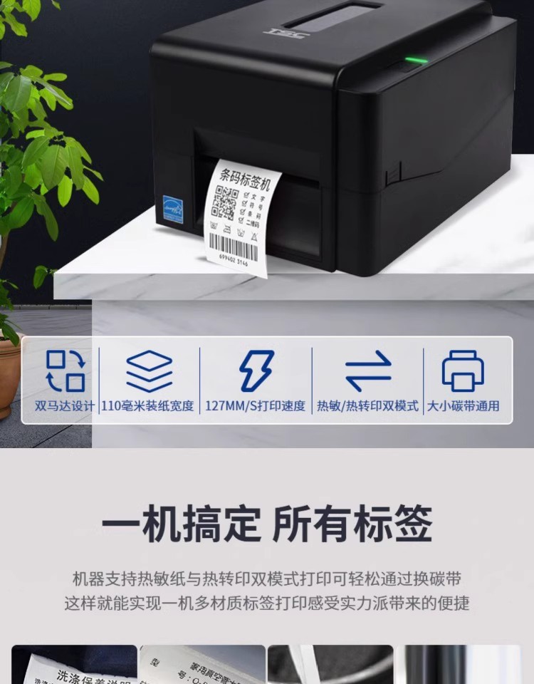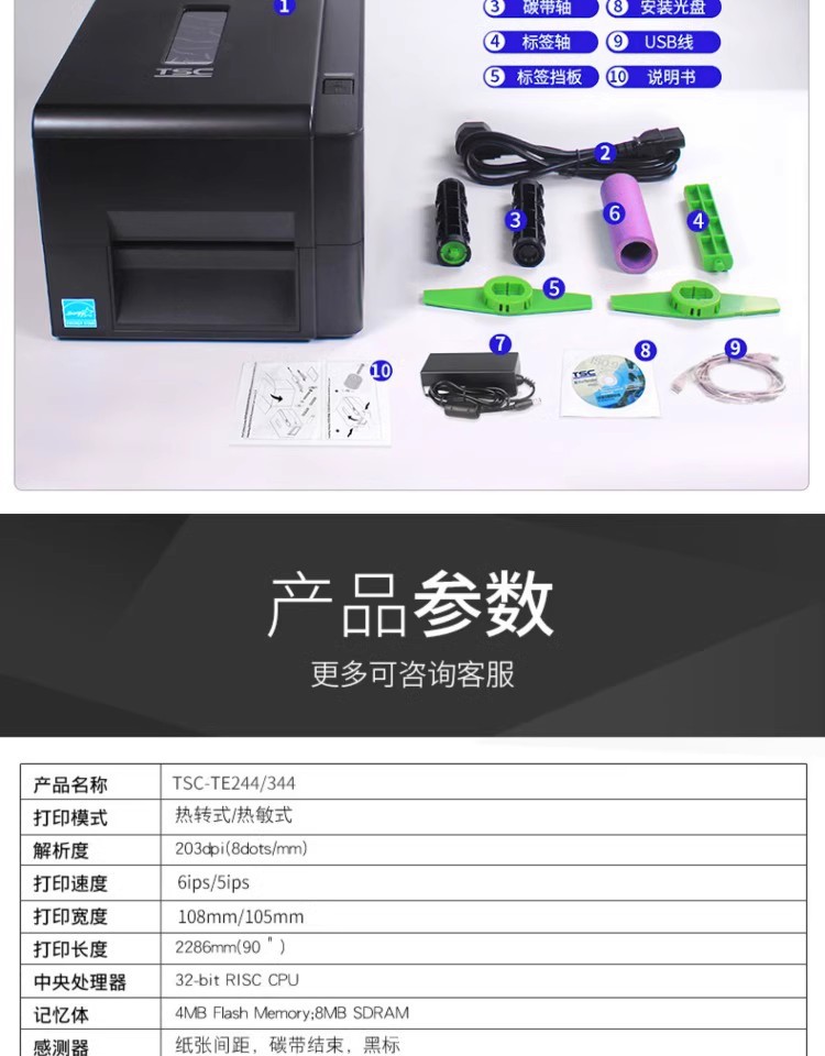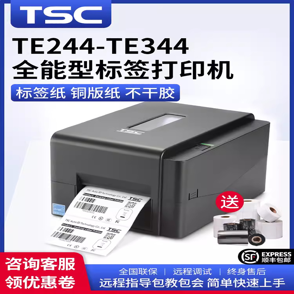 TSC TE244 /TE344 바코드 프린터 접착 스티커 열 종이 세탁기 열 전사 인쇄 리본 라벨 기계스토어 가기