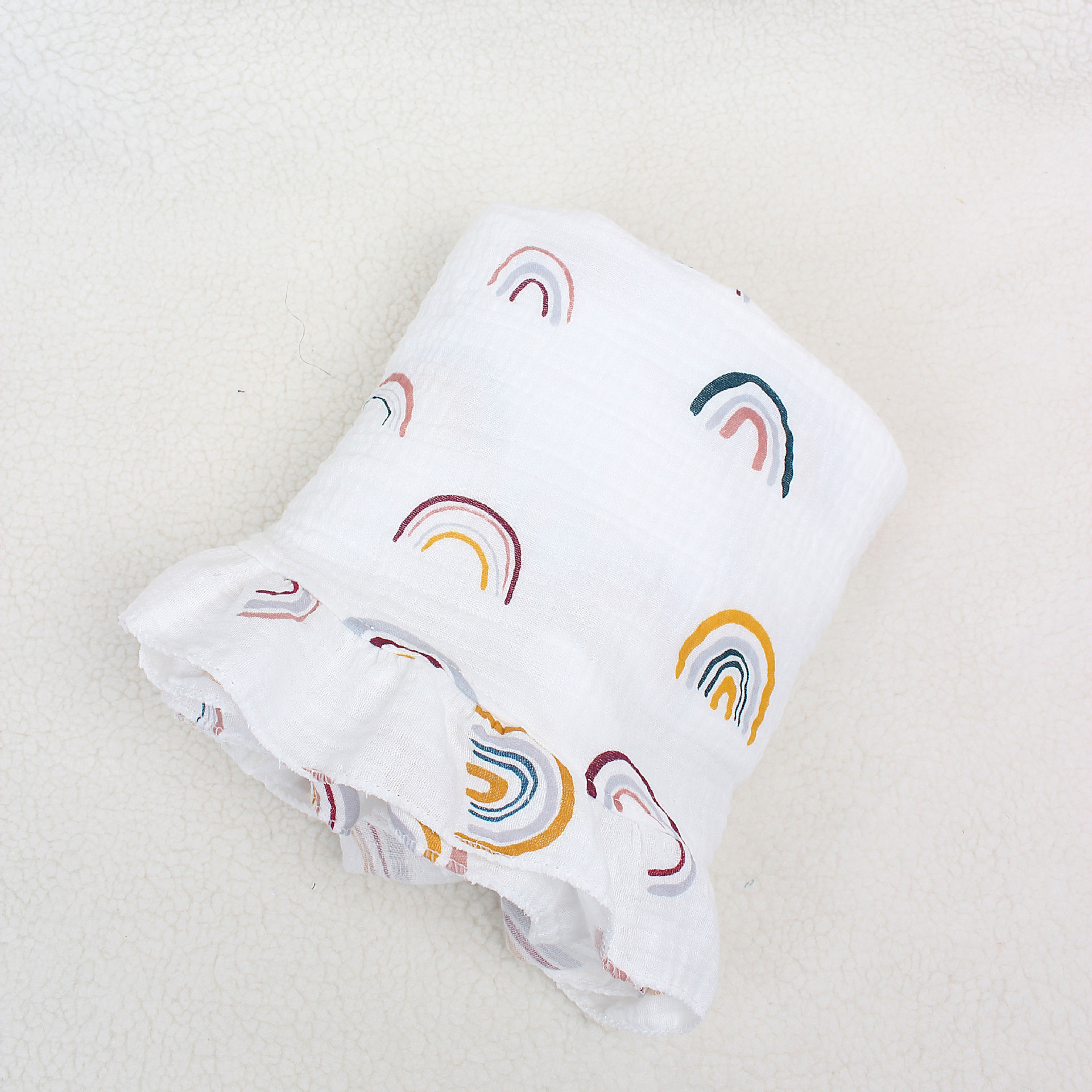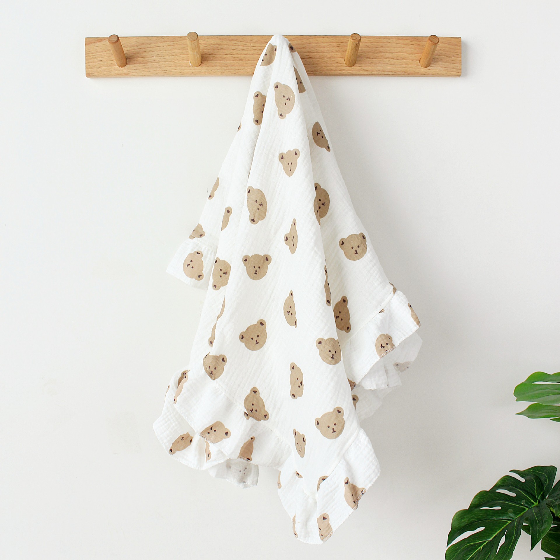 어린이 담요 면 크레이프 프린트 러플 아기 유모차 커버 담요 여름 에어컨 이불 아기 포장 담요