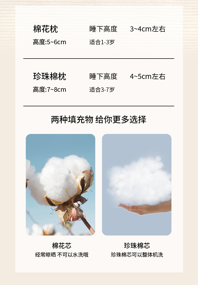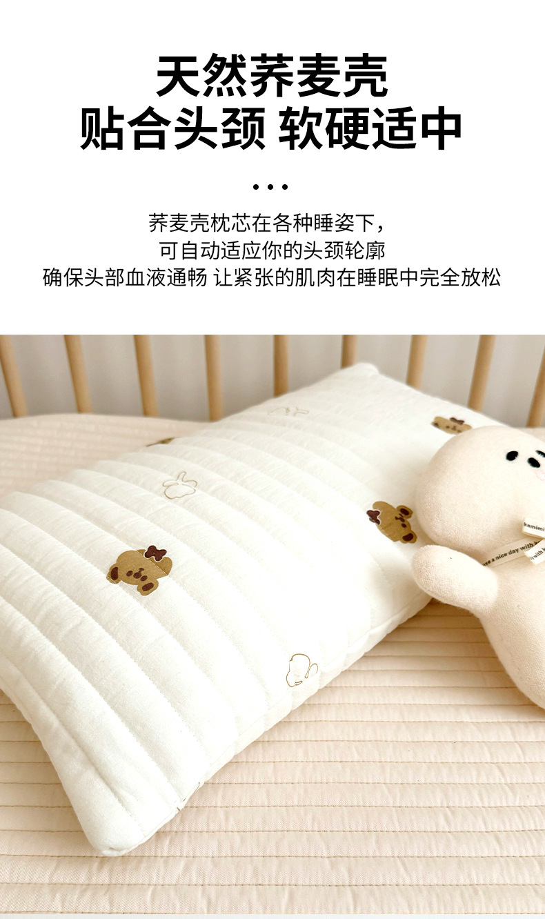 어린이 특수 베개 순면 퀼트 유아면 베개 1-7 세 유치원 메밀 베개 코어 탈착식 및 세탁 가능한 베갯잇이
