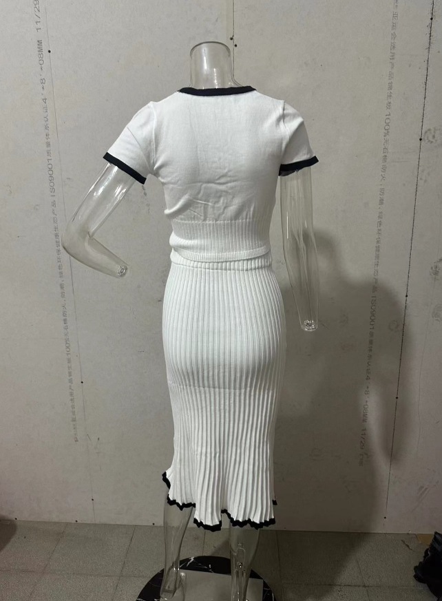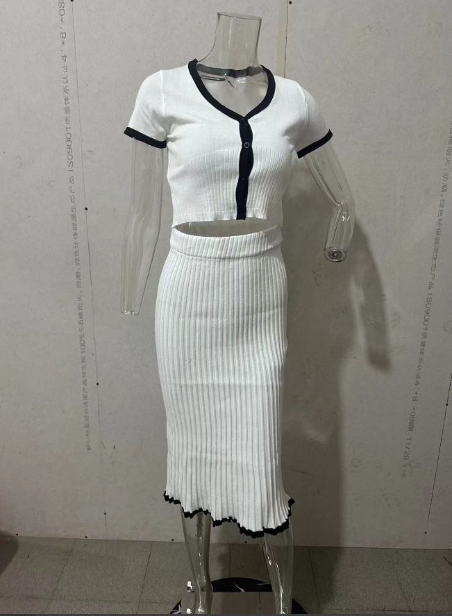 2024 여름 새로운 유럽과 미국의 아마존 국경 대비 컬러 U-넥 스트레치 슬림 짧은 최고 치마 세트 여성
