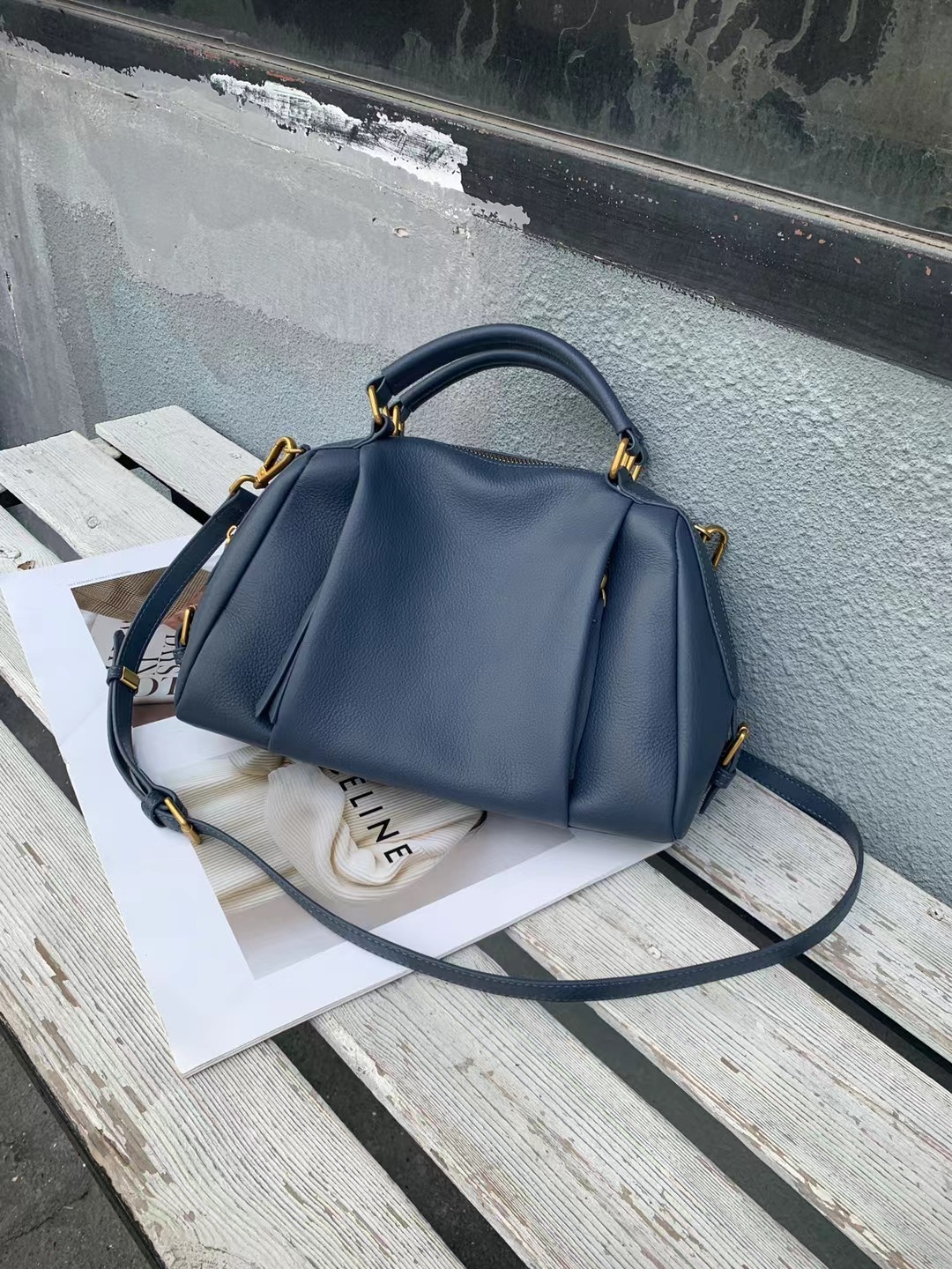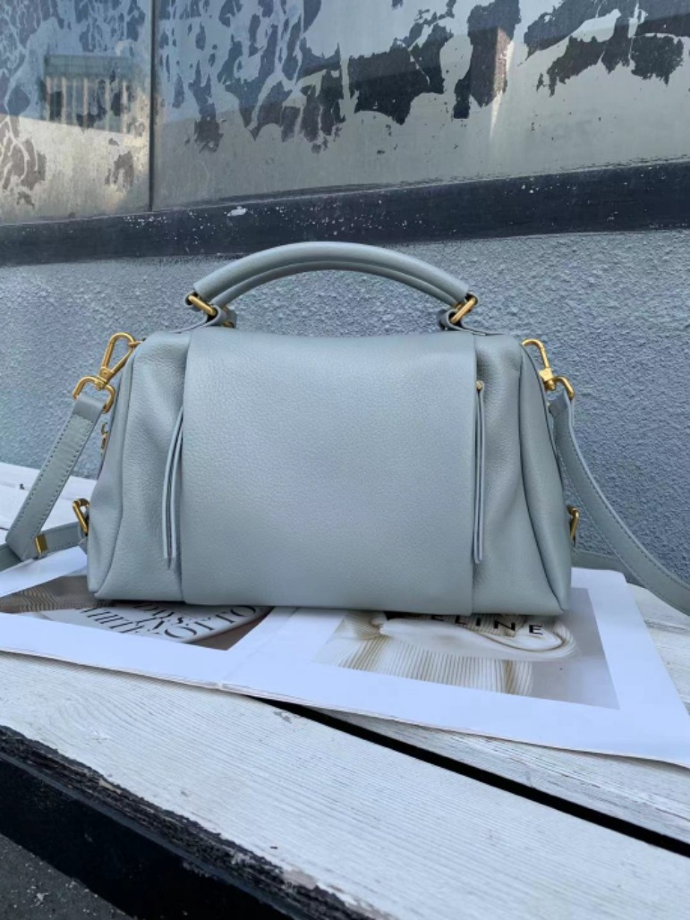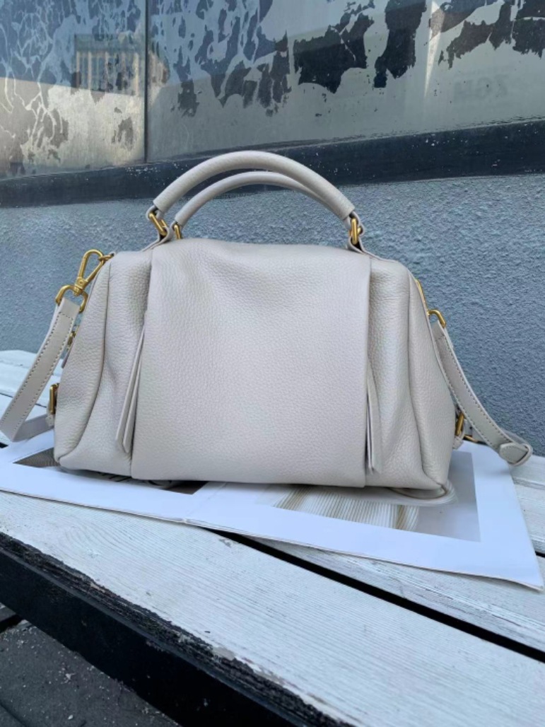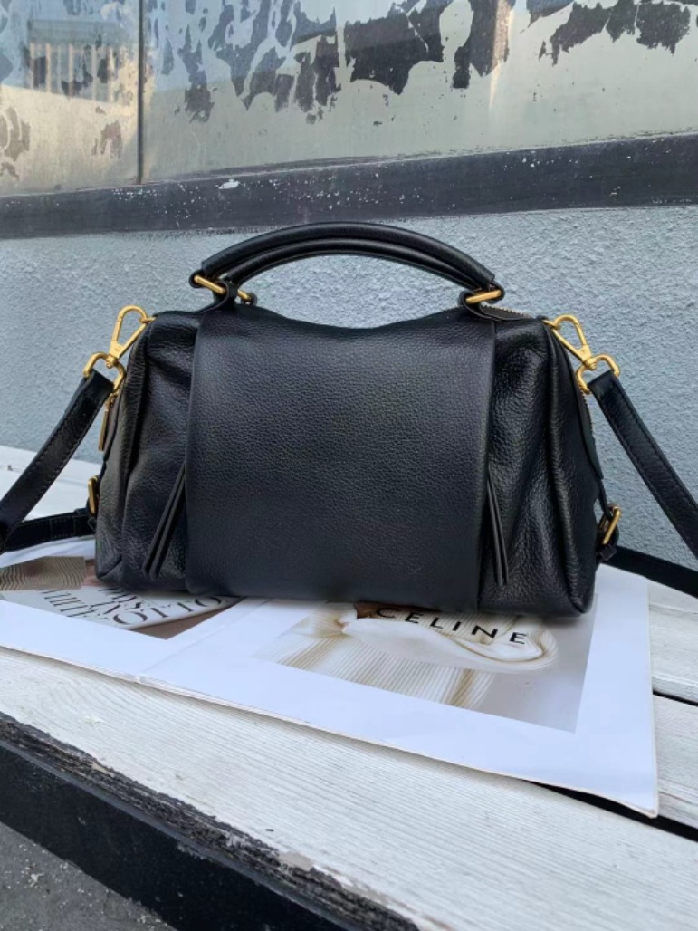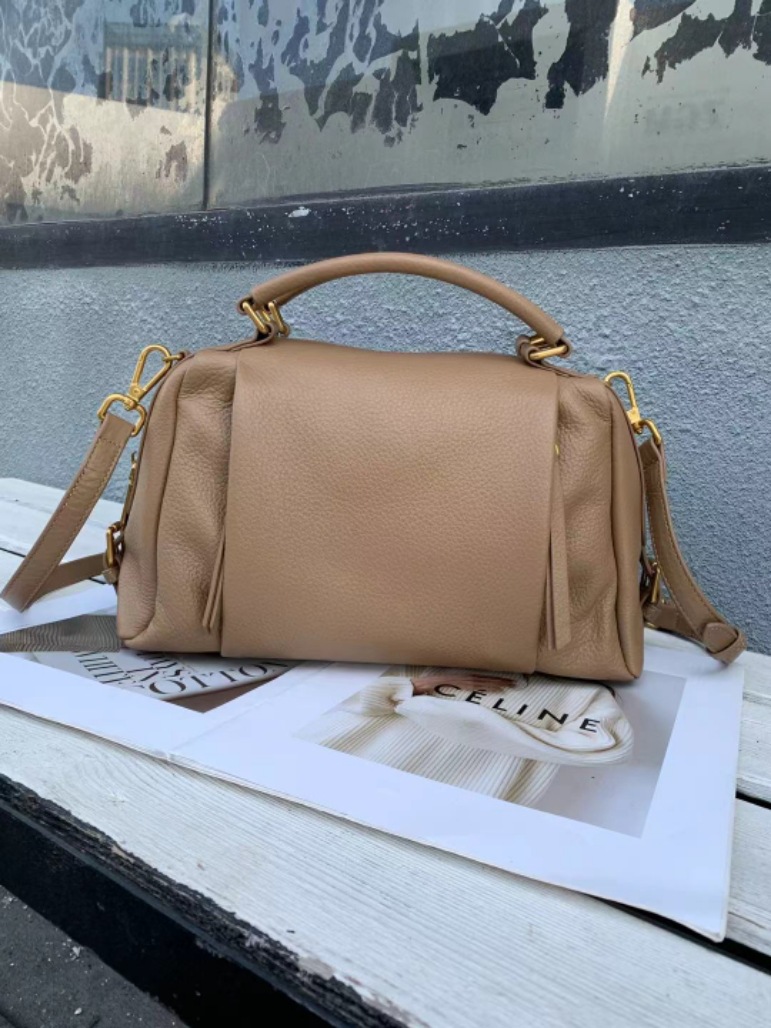 새로운 레트로 보스턴 베개 가방 하이 퀄리티 부드러운 첫 번째 레이어 소 가죽 휴대용 어깨 크로스 바디 더블 격실 가죽 여성 가방