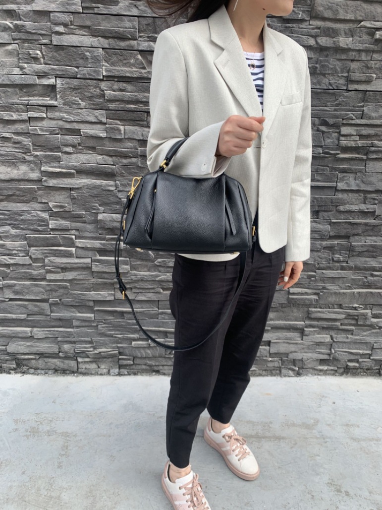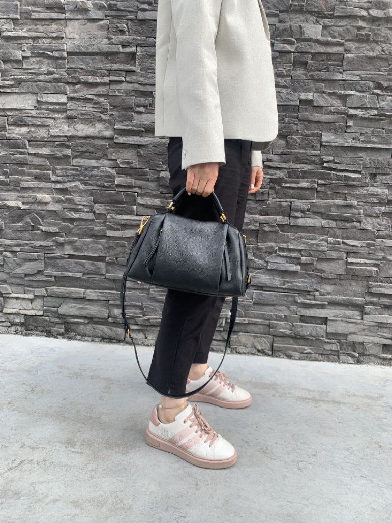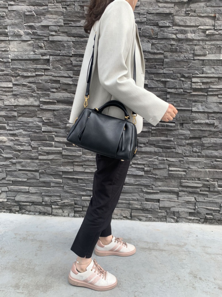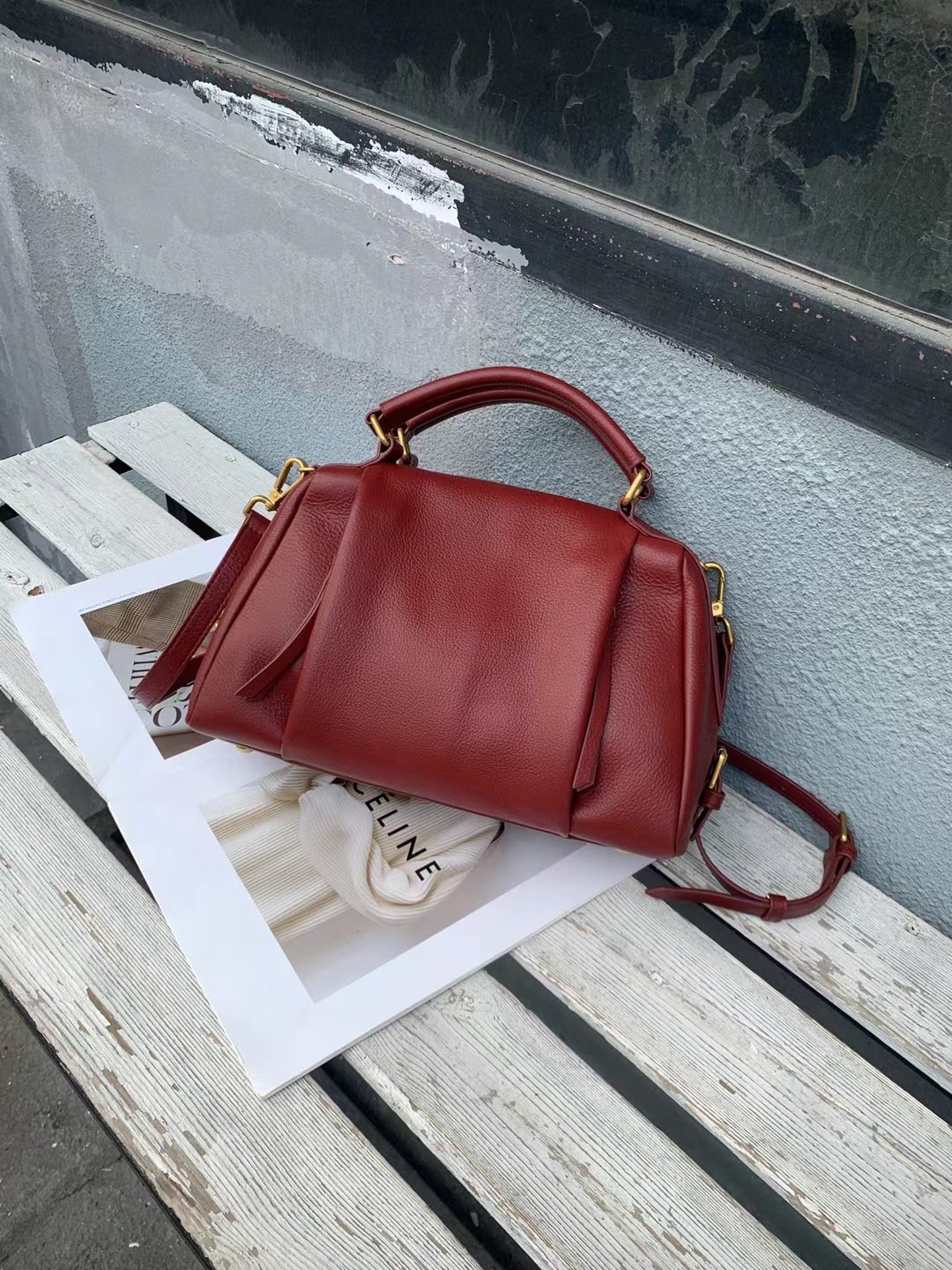 새로운 레트로 보스턴 베개 가방 하이 퀄리티 부드러운 첫 번째 레이어 소 가죽 휴대용 어깨 크로스 바디 더블 격실 가죽 여성 가방