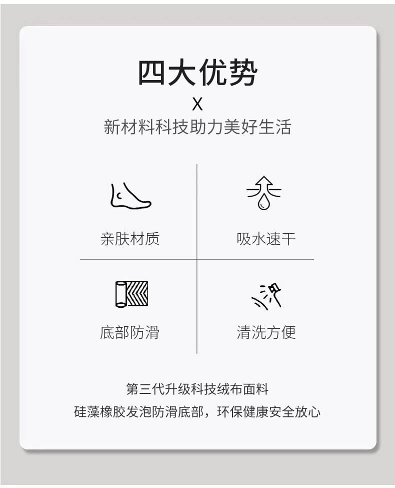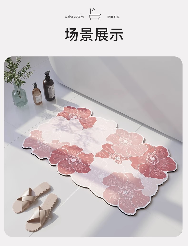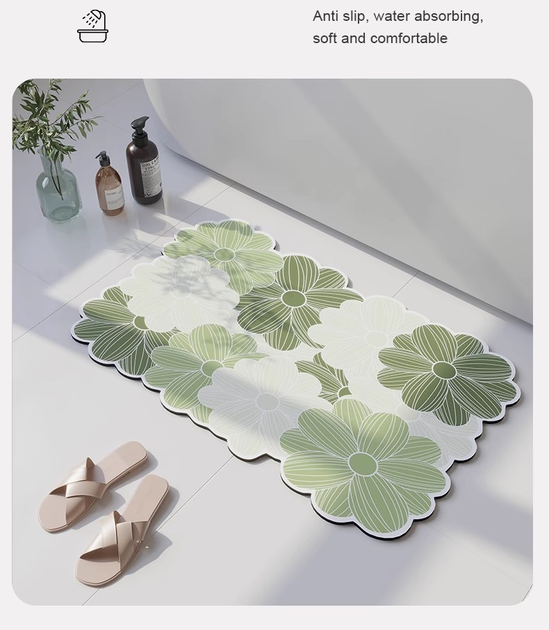 심플한 스타일의 가정용 규조토 진흙 바닥 매트는 절단이 쉽고 관리가 쉽습니다. 흡수성, 미끄럼 방지, 속건성, 내마모성 및 먼지 방지 매트입니다.스토어 가기