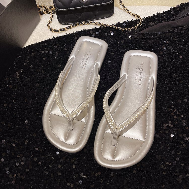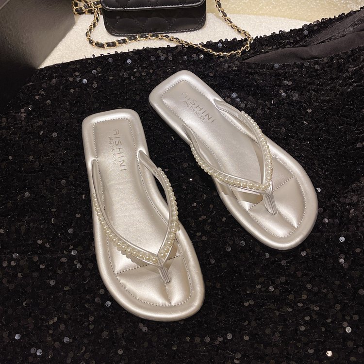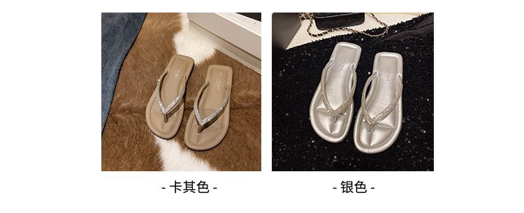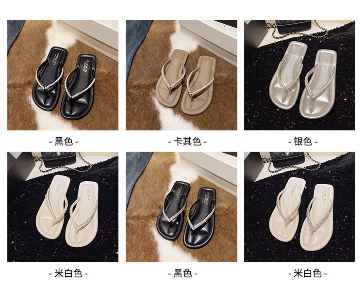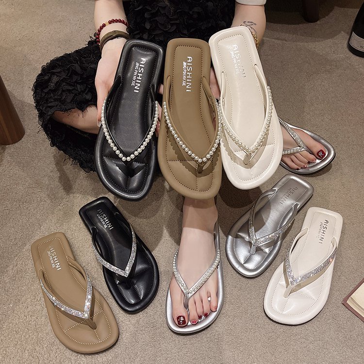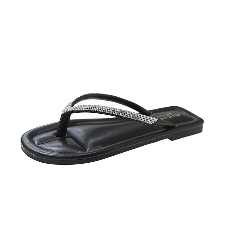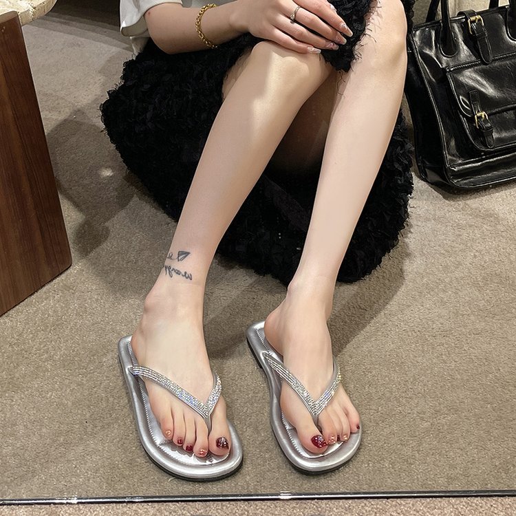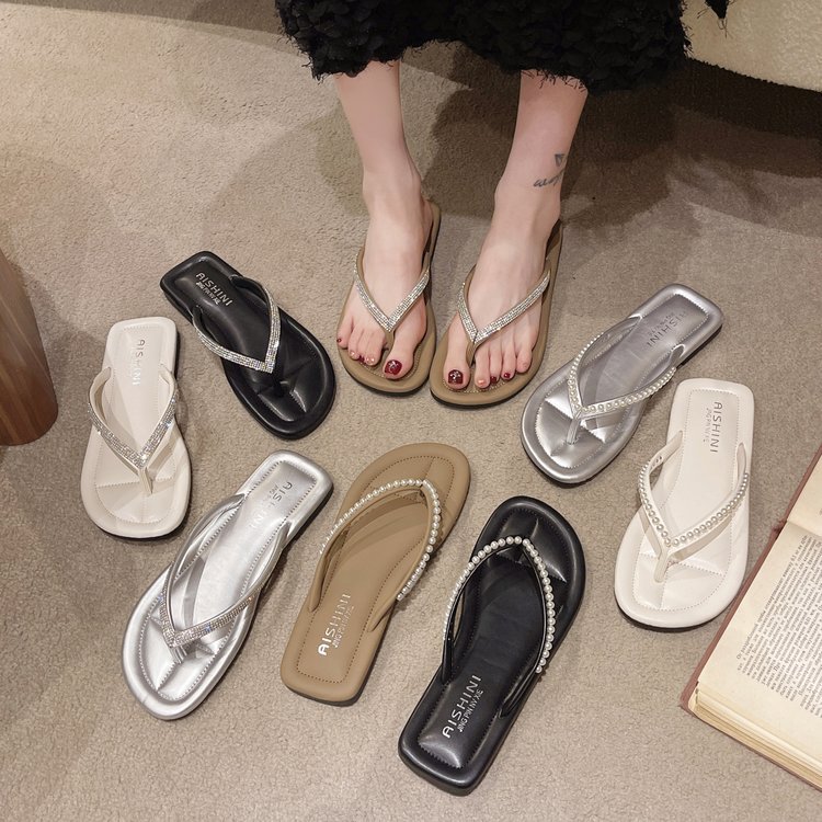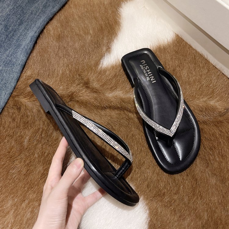 플립 플롭스 여성 2024 여름 새로운 패션 라인석 플립 플롭 야외 해변 여성 슬리퍼 도매스토어 가기