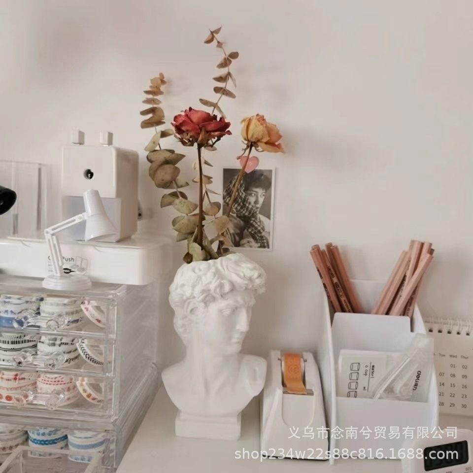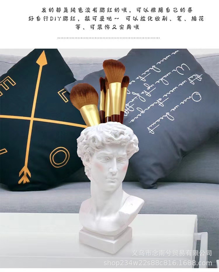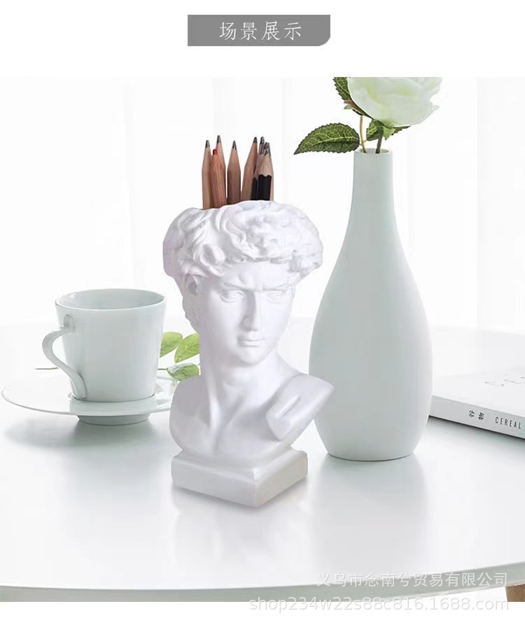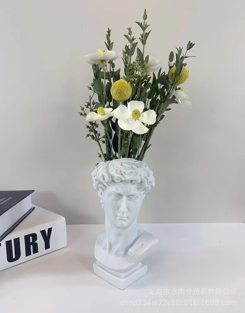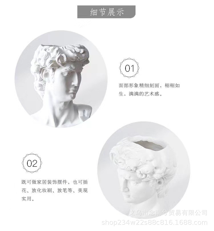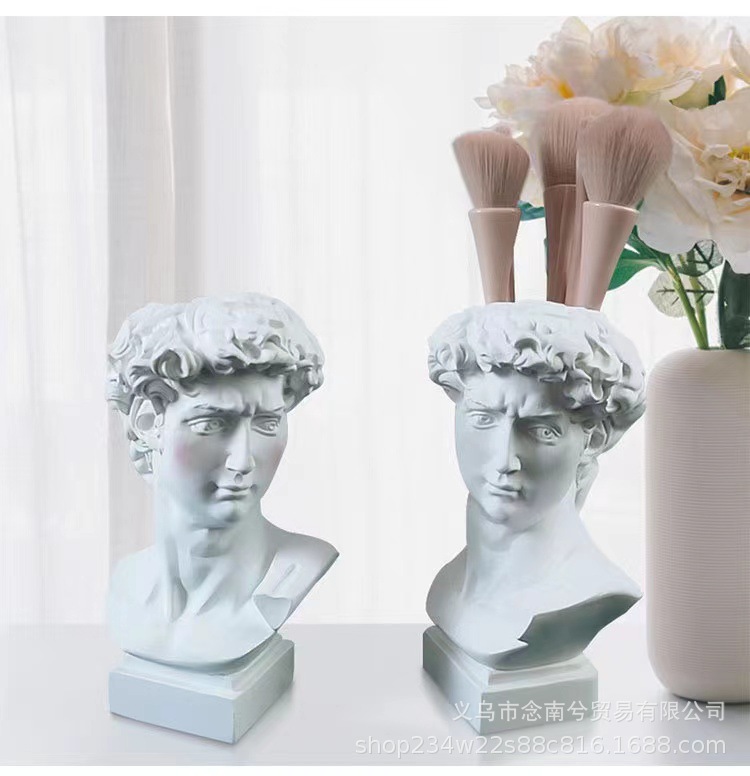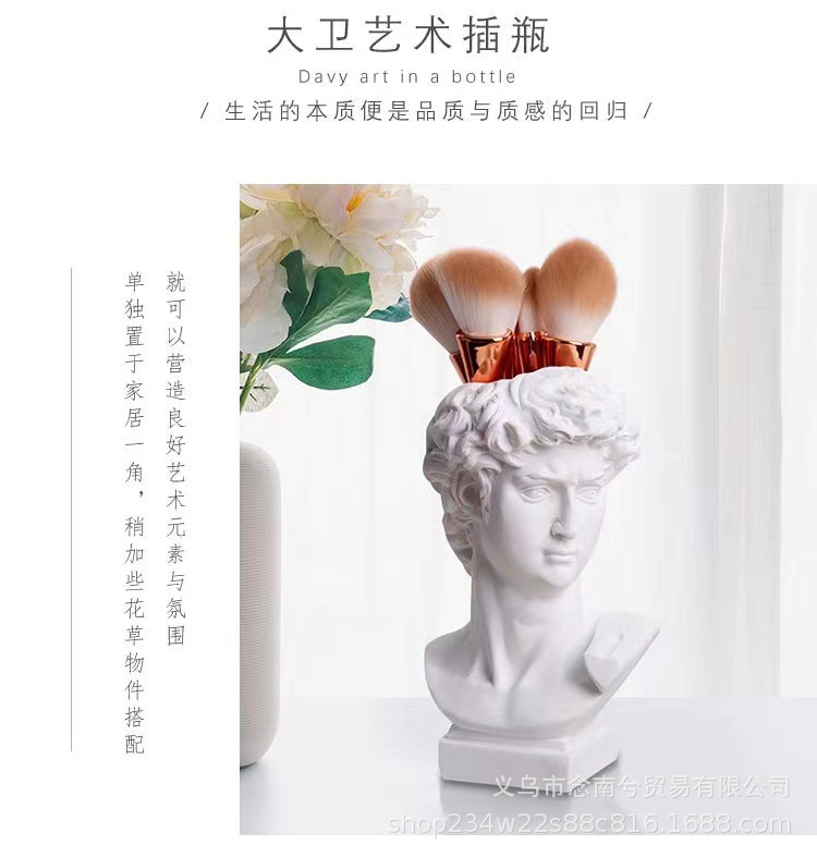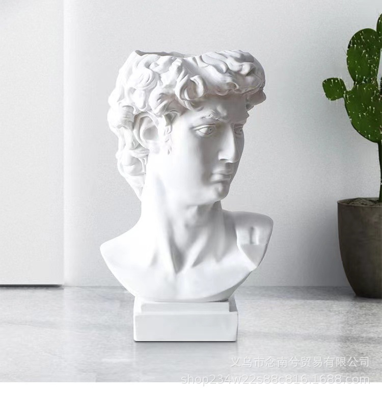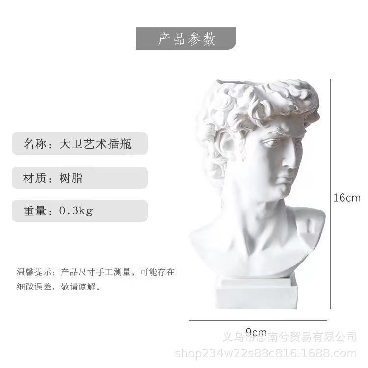 雕塑一共三种型号,大卫是单独包装,pp袋+保利龙+纸盒,中间可以插花。中卫是单独包装,气泡袋+纸盒,中间可以插花。小卫是单气泡袋包装,中间不可以插花。雕塑材质是树脂,可代发批发。