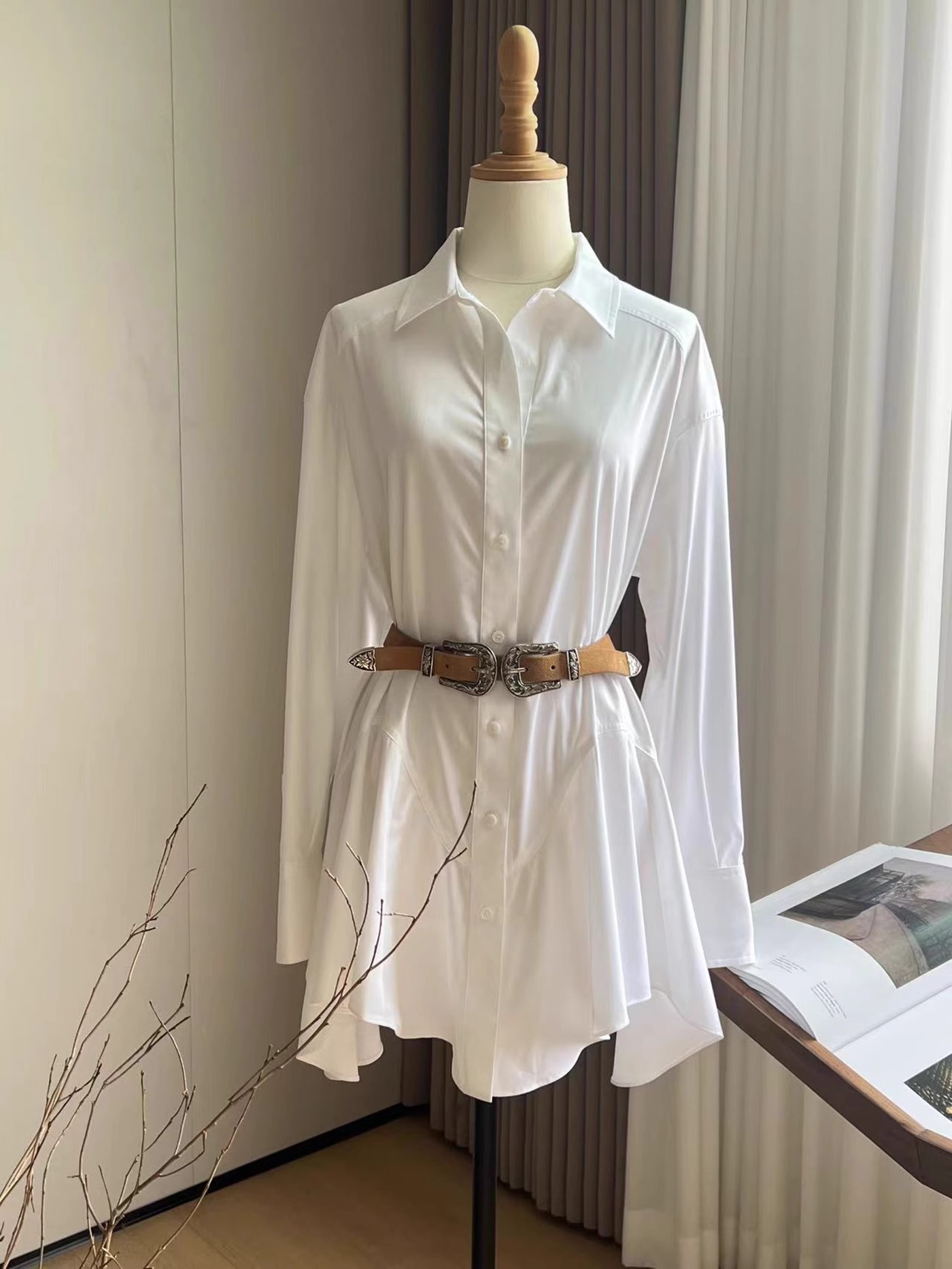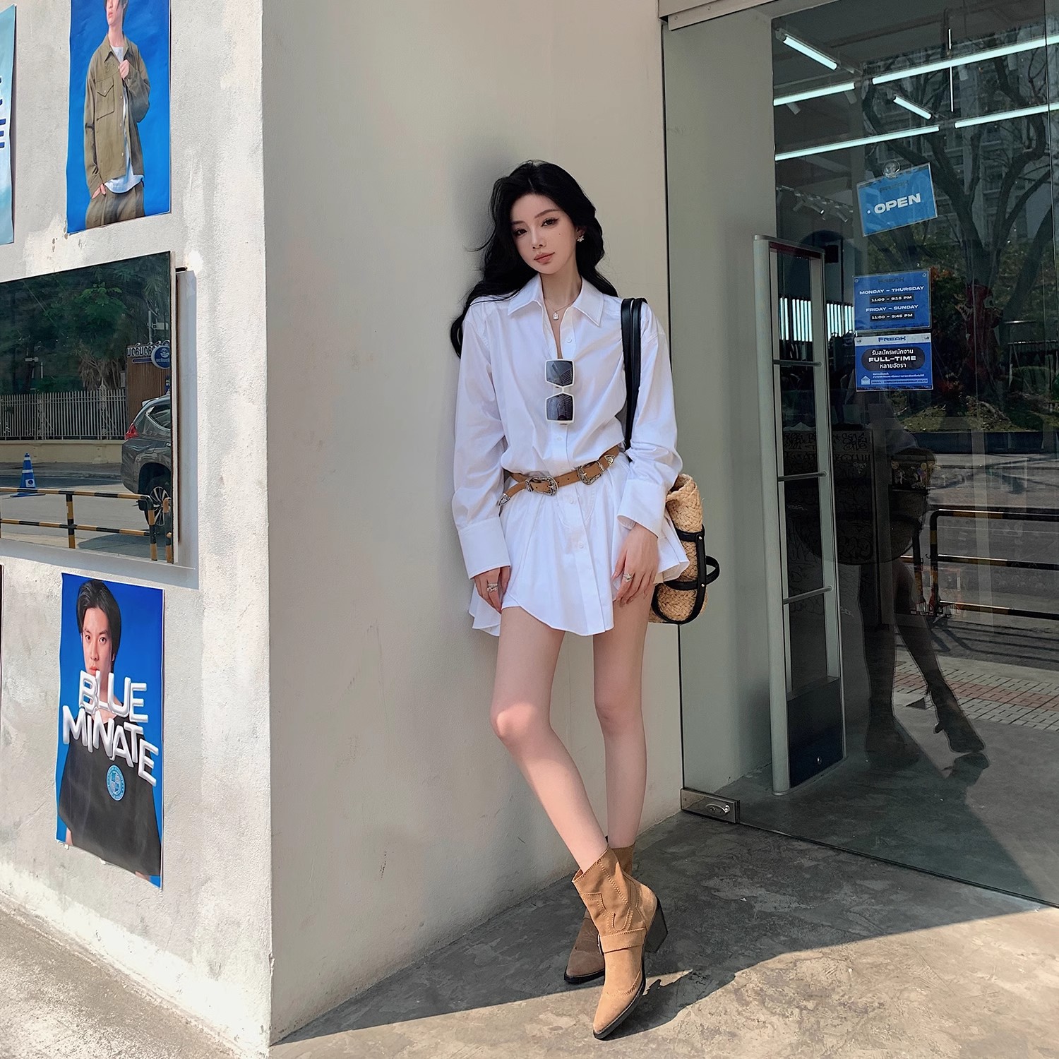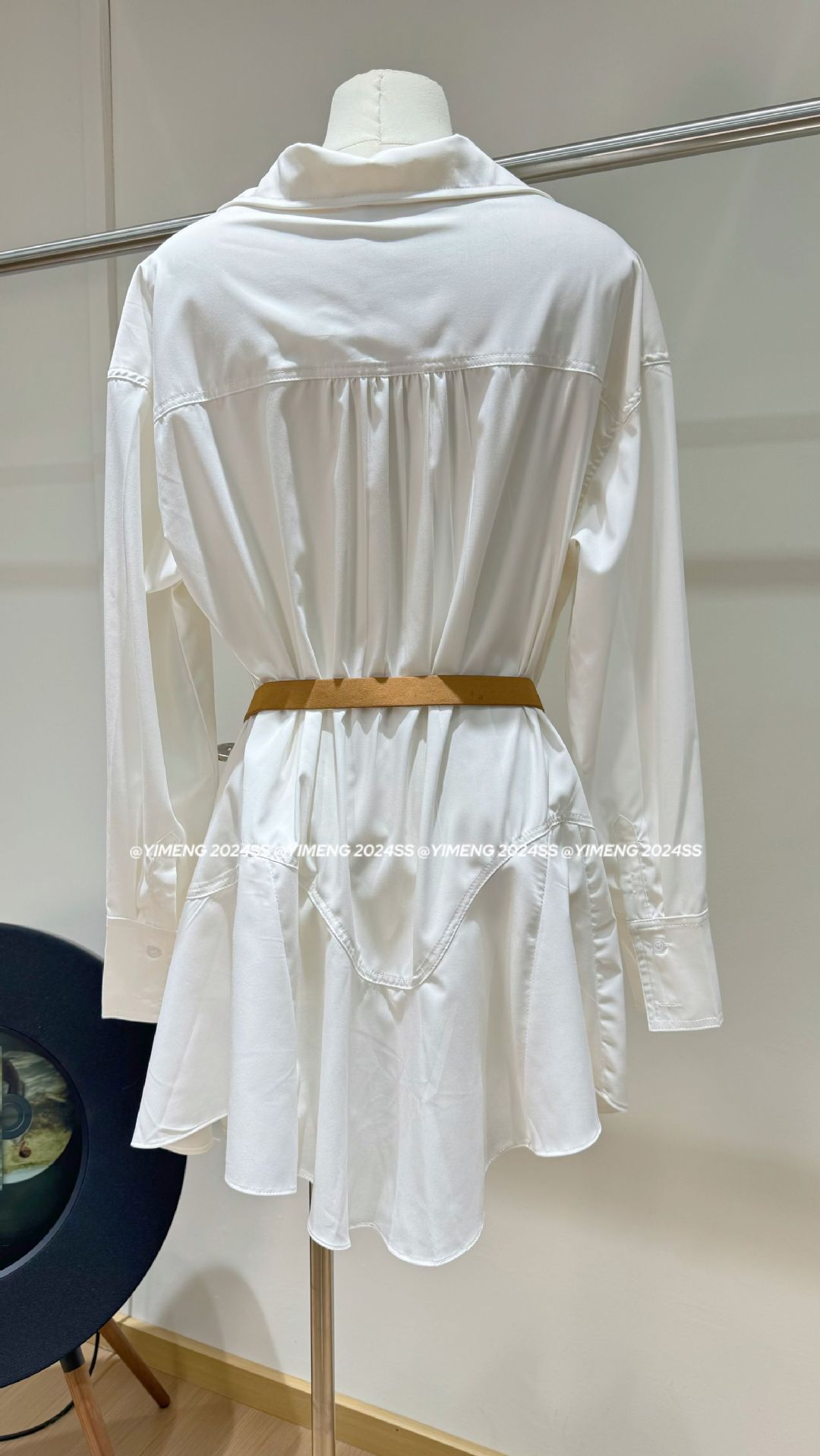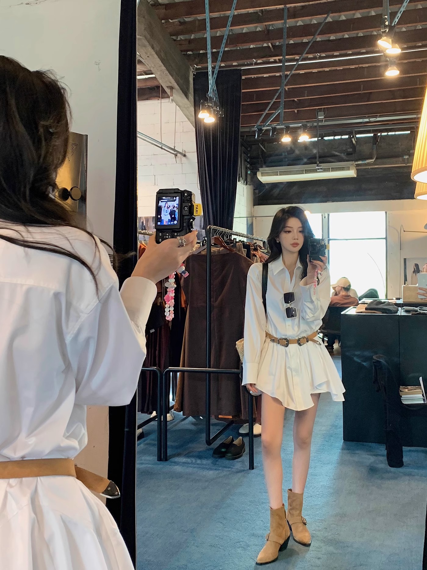 프랑스 하이 엔드 폴로 칼라 긴팔 화이트 셔츠 원피스 여성 세트 원피스 타이트 허리 엉덩이 원피스스토어 가기