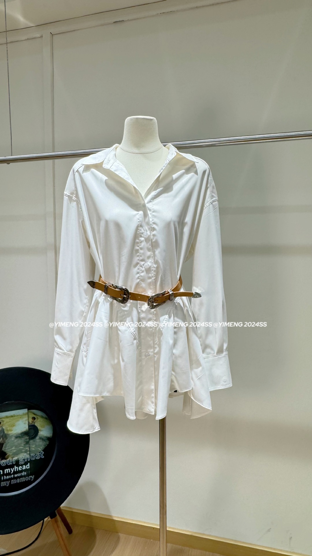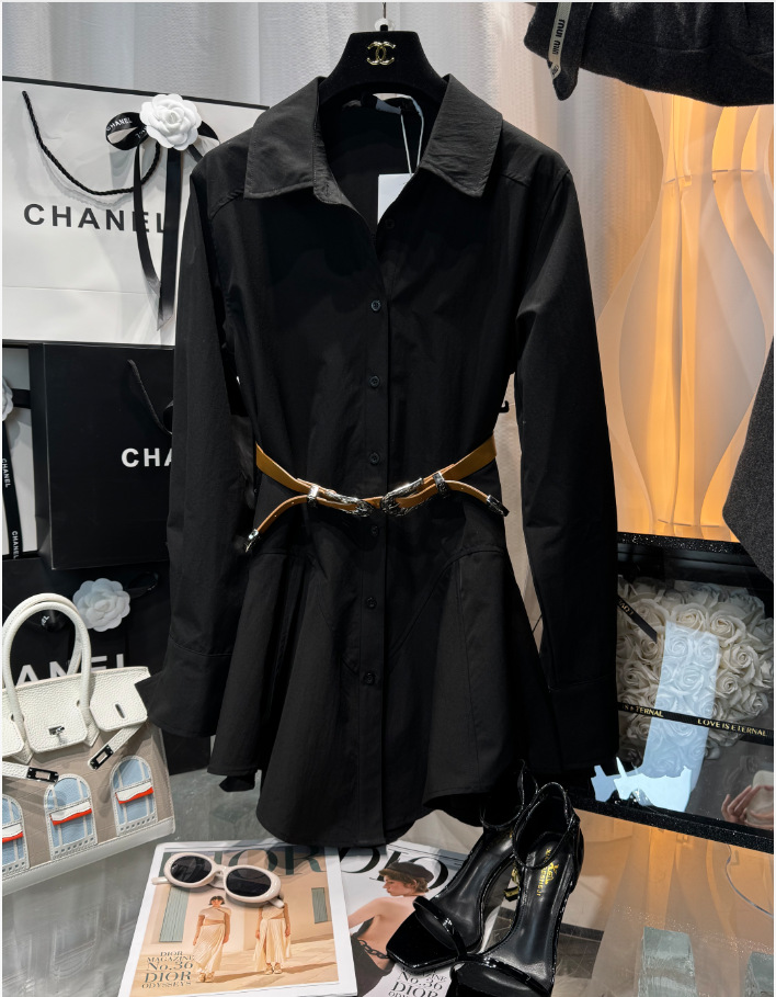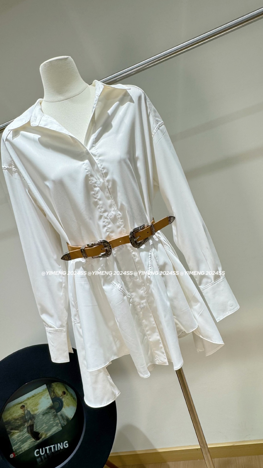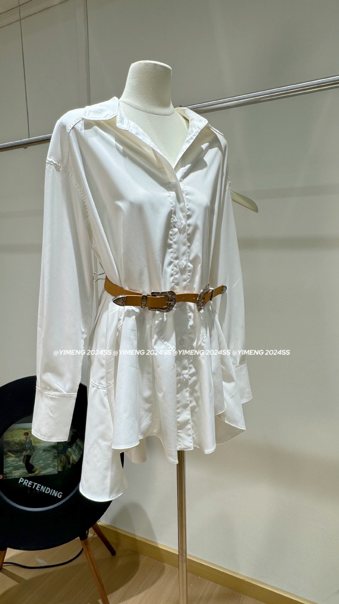 프랑스 하이 엔드 폴로 칼라 긴팔 화이트 셔츠 원피스 여성 세트 원피스 타이트 허리 엉덩이 원피스스토어 가기