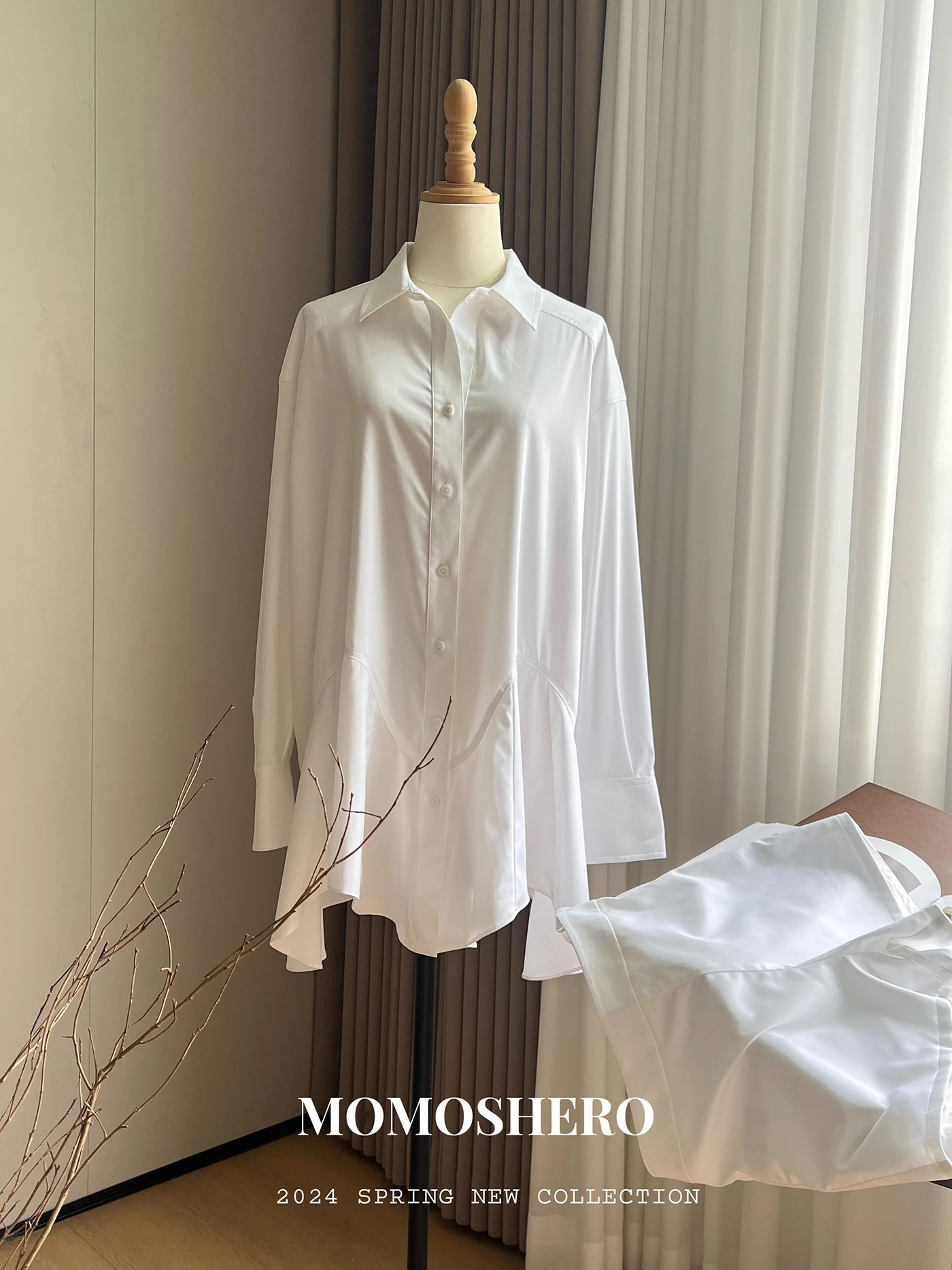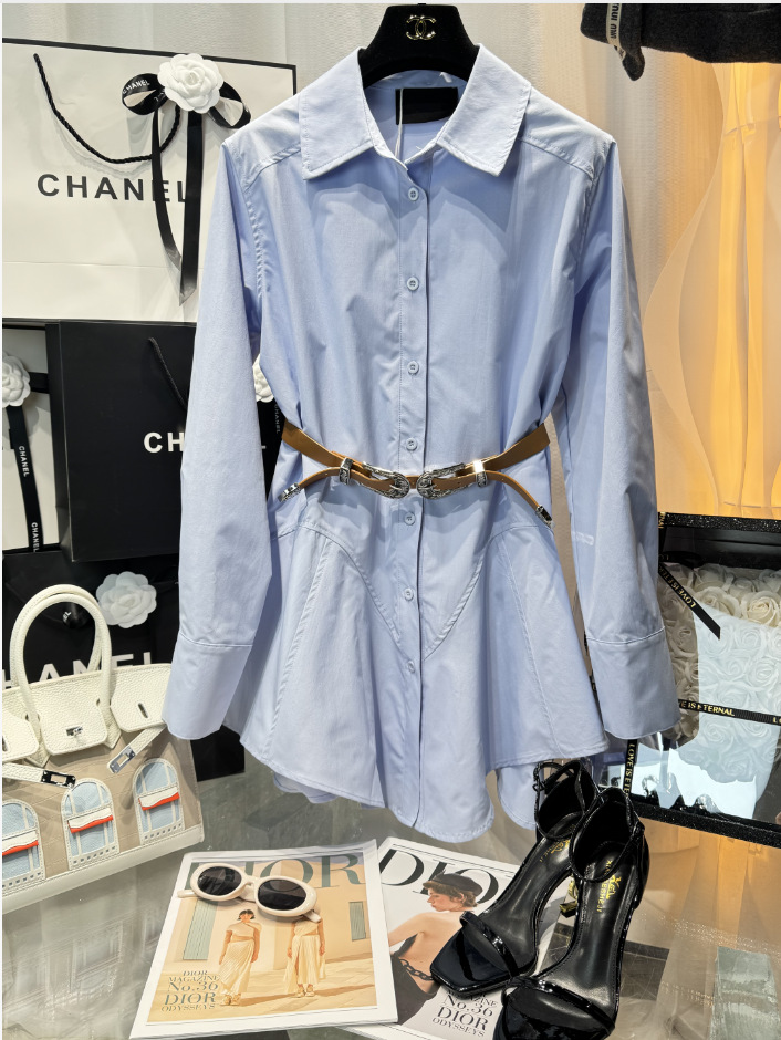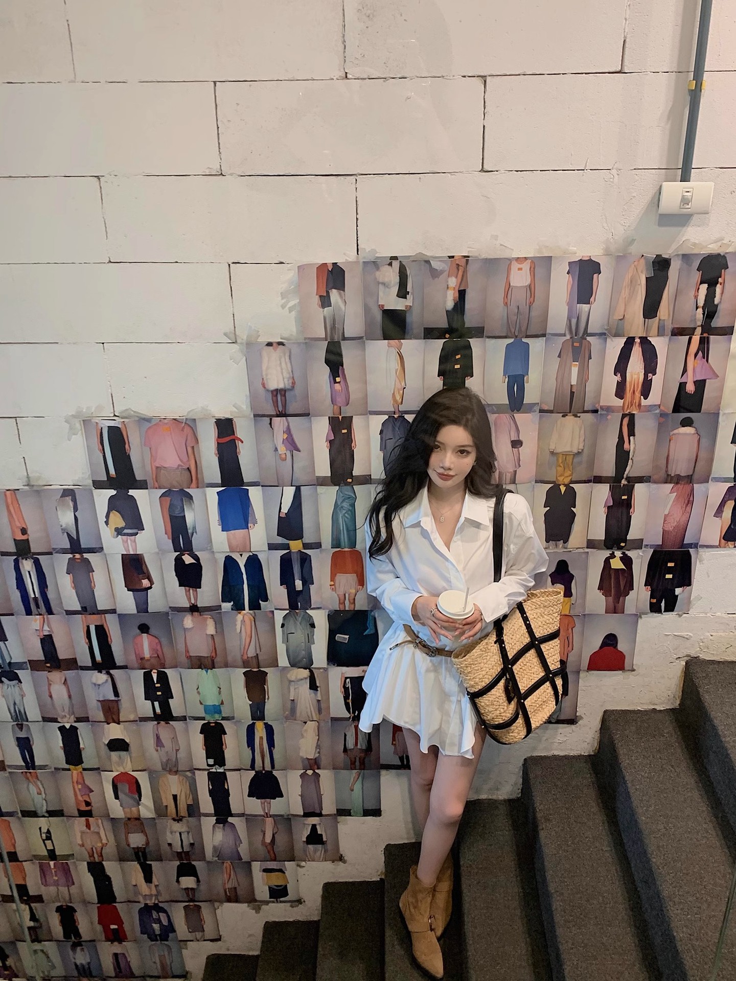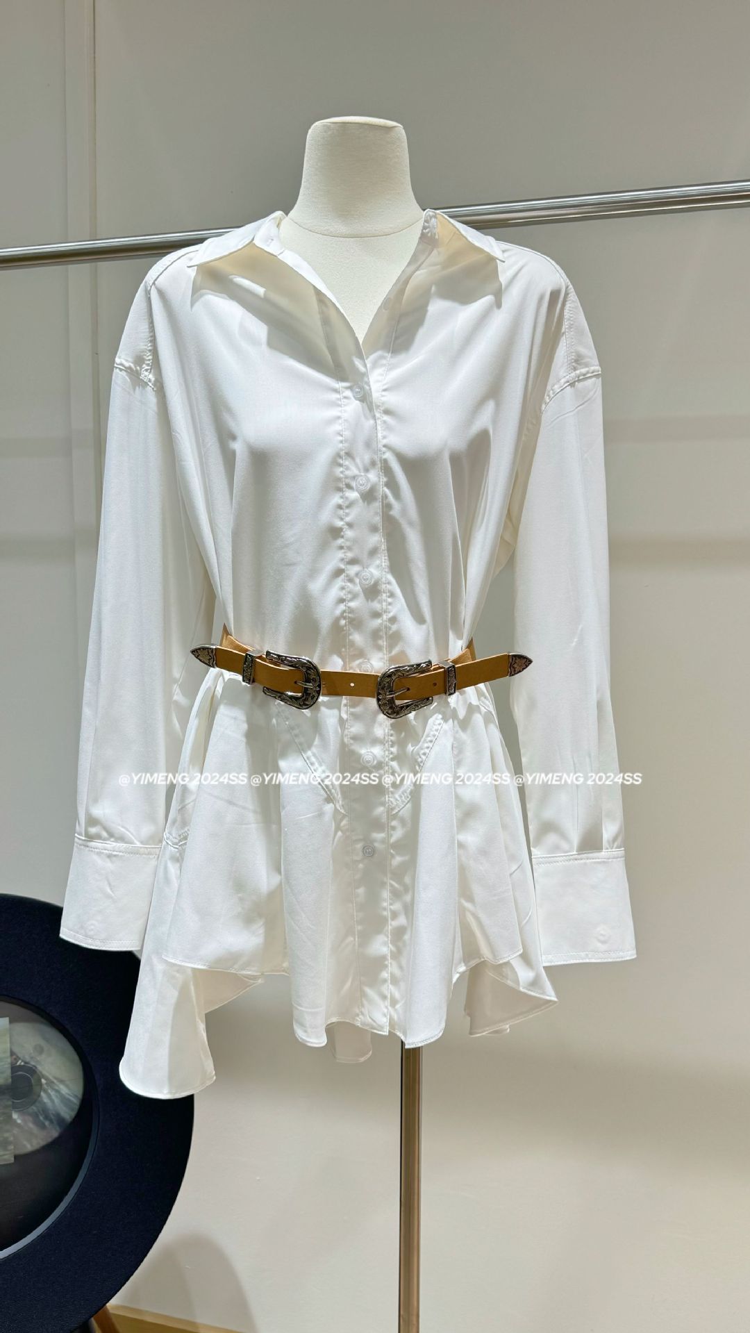 프랑스 하이 엔드 폴로 칼라 긴팔 화이트 셔츠 원피스 여성 세트 원피스 타이트 허리 엉덩이 원피스스토어 가기