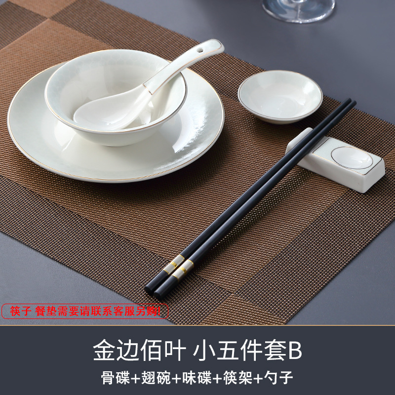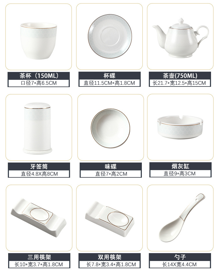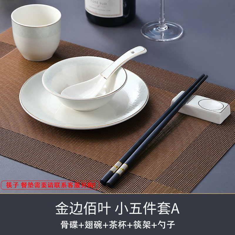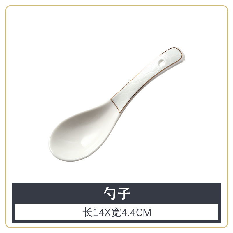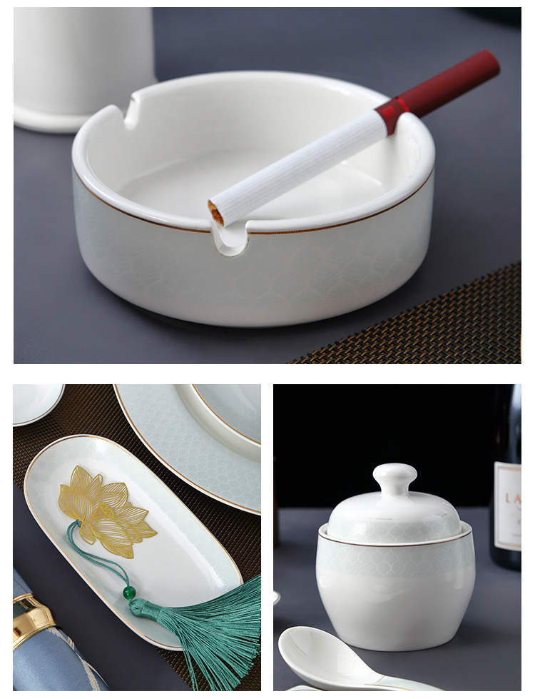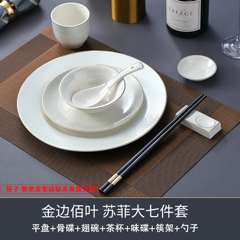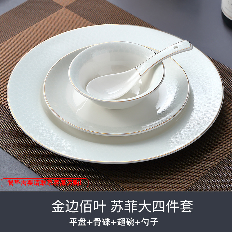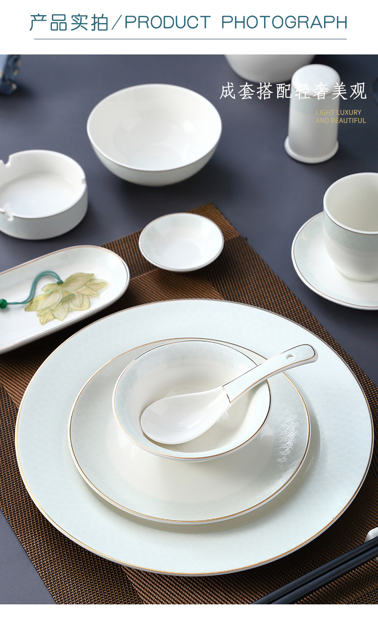 호텔 테이블 장식 식기 세트 중국 스타일 하이 엔드 클럽 황금 가장자리 그릇 접시 숟가락 플레이트 3 피스 세라믹 인쇄 세트