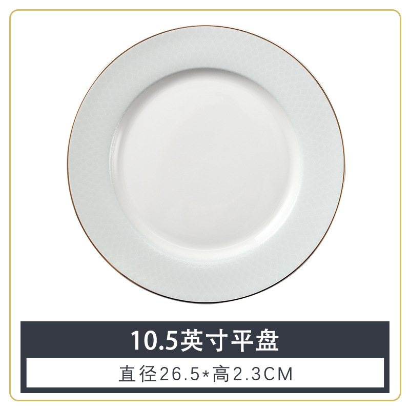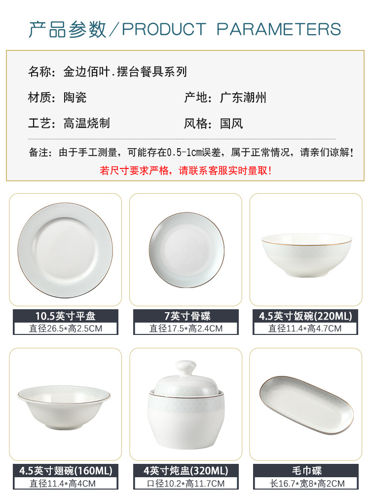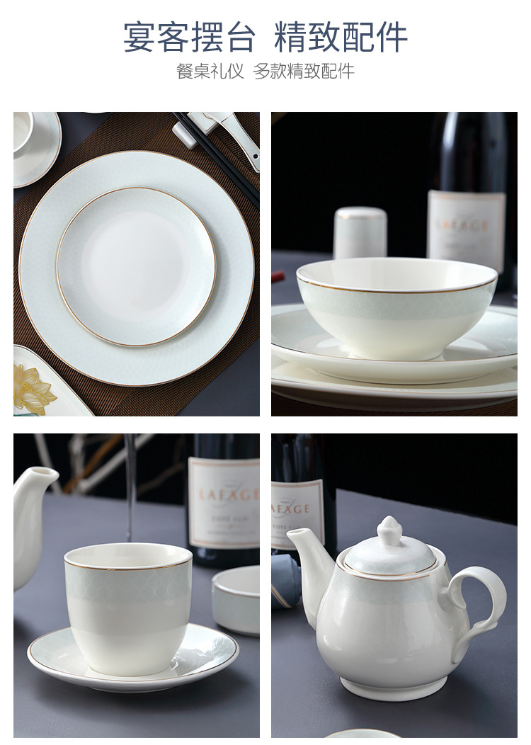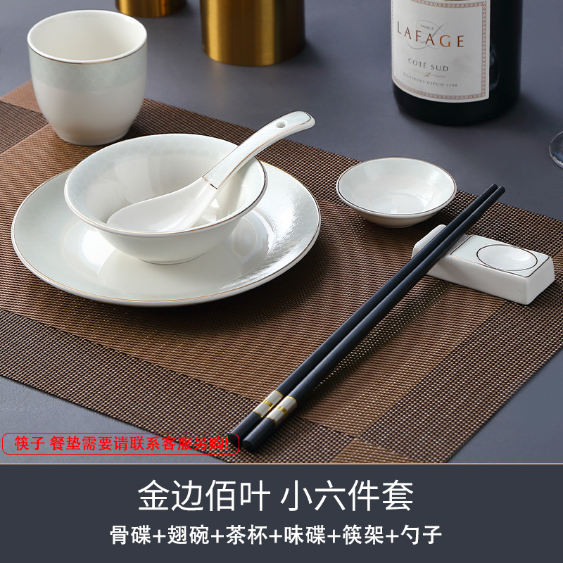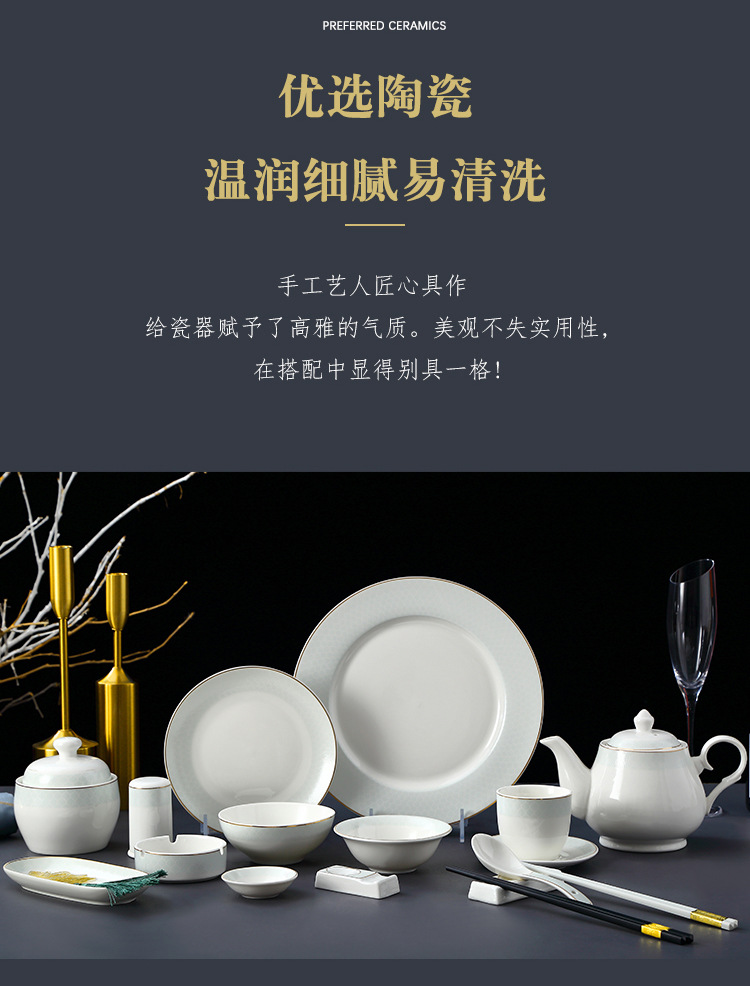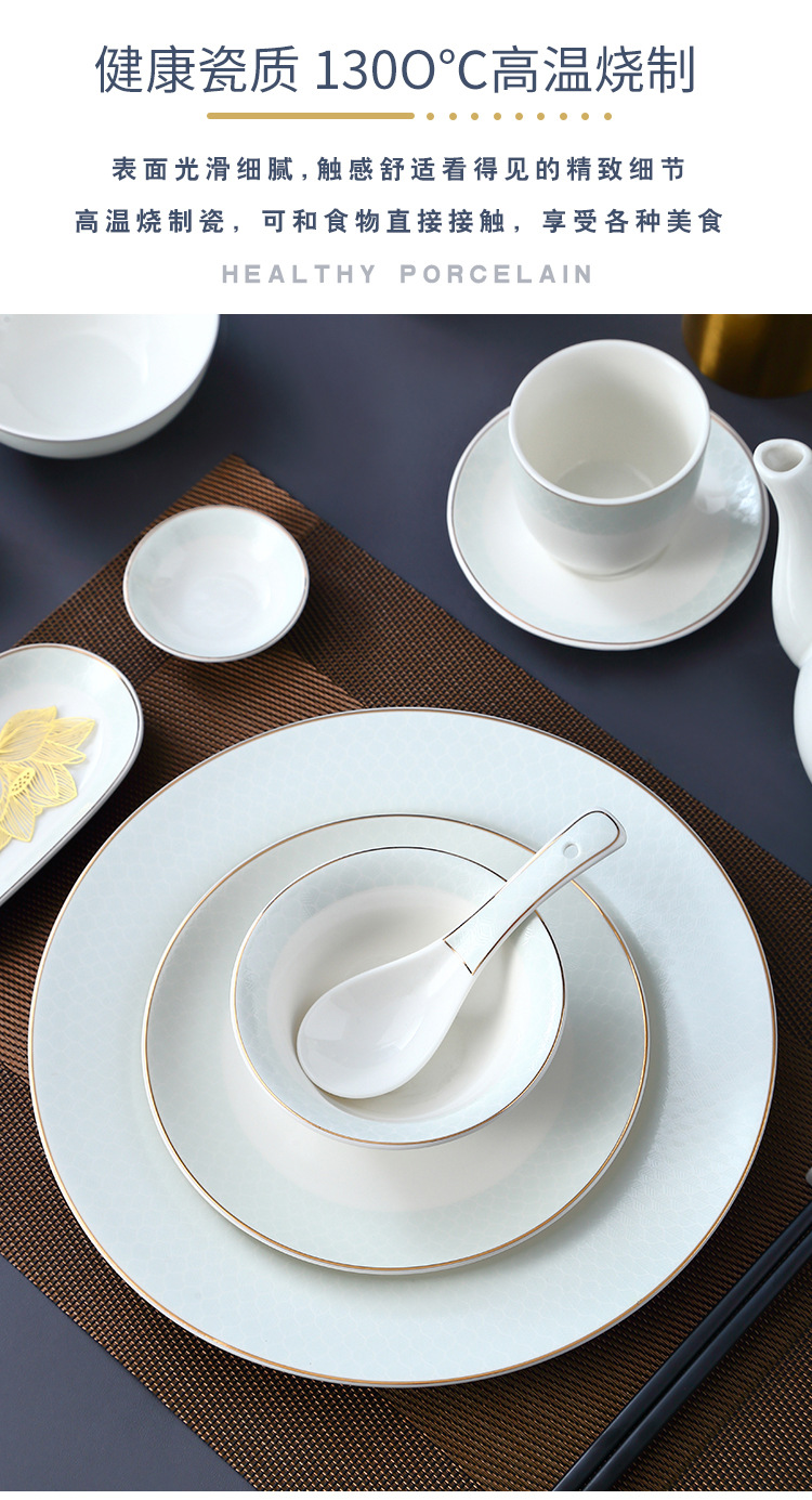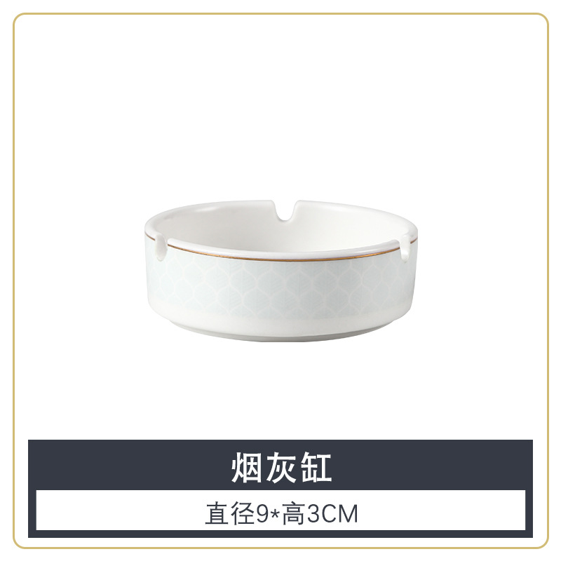 호텔 테이블 장식 식기 세트 중국 스타일 하이 엔드 클럽 황금 가장자리 그릇 접시 숟가락 플레이트 3 피스 세라믹 인쇄 세트