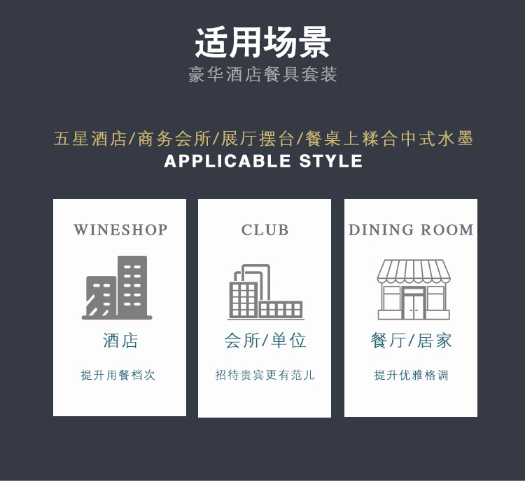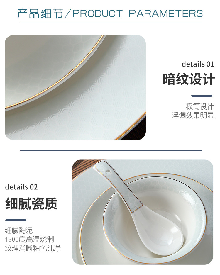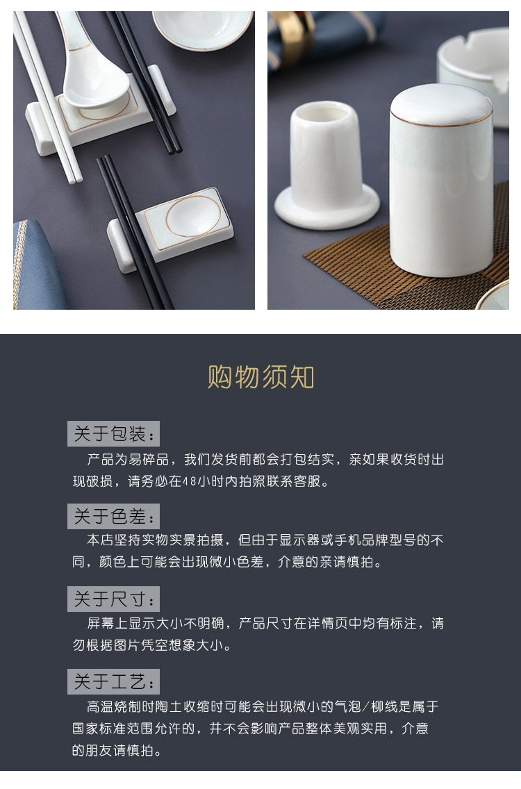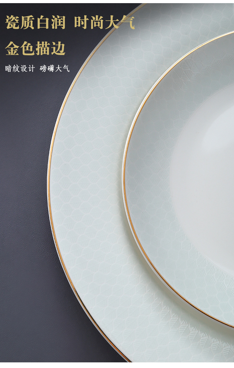 호텔 테이블 장식 식기 세트 중국 스타일 하이 엔드 클럽 황금 가장자리 그릇 접시 숟가락 플레이트 3 피스 세라믹 인쇄 세트스토어 가기