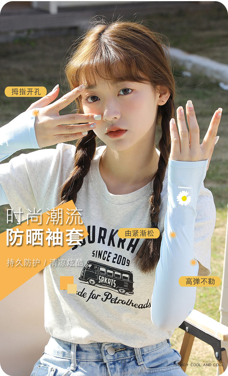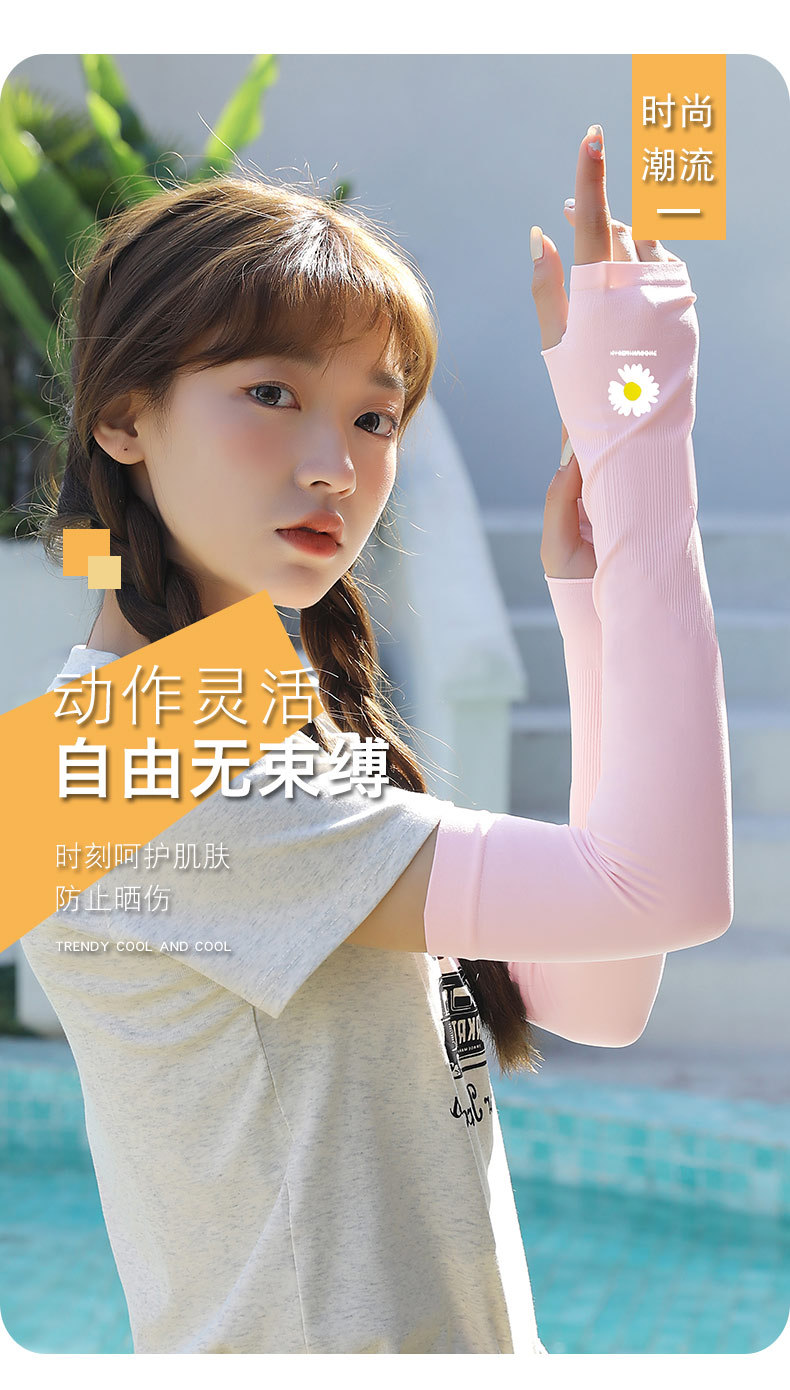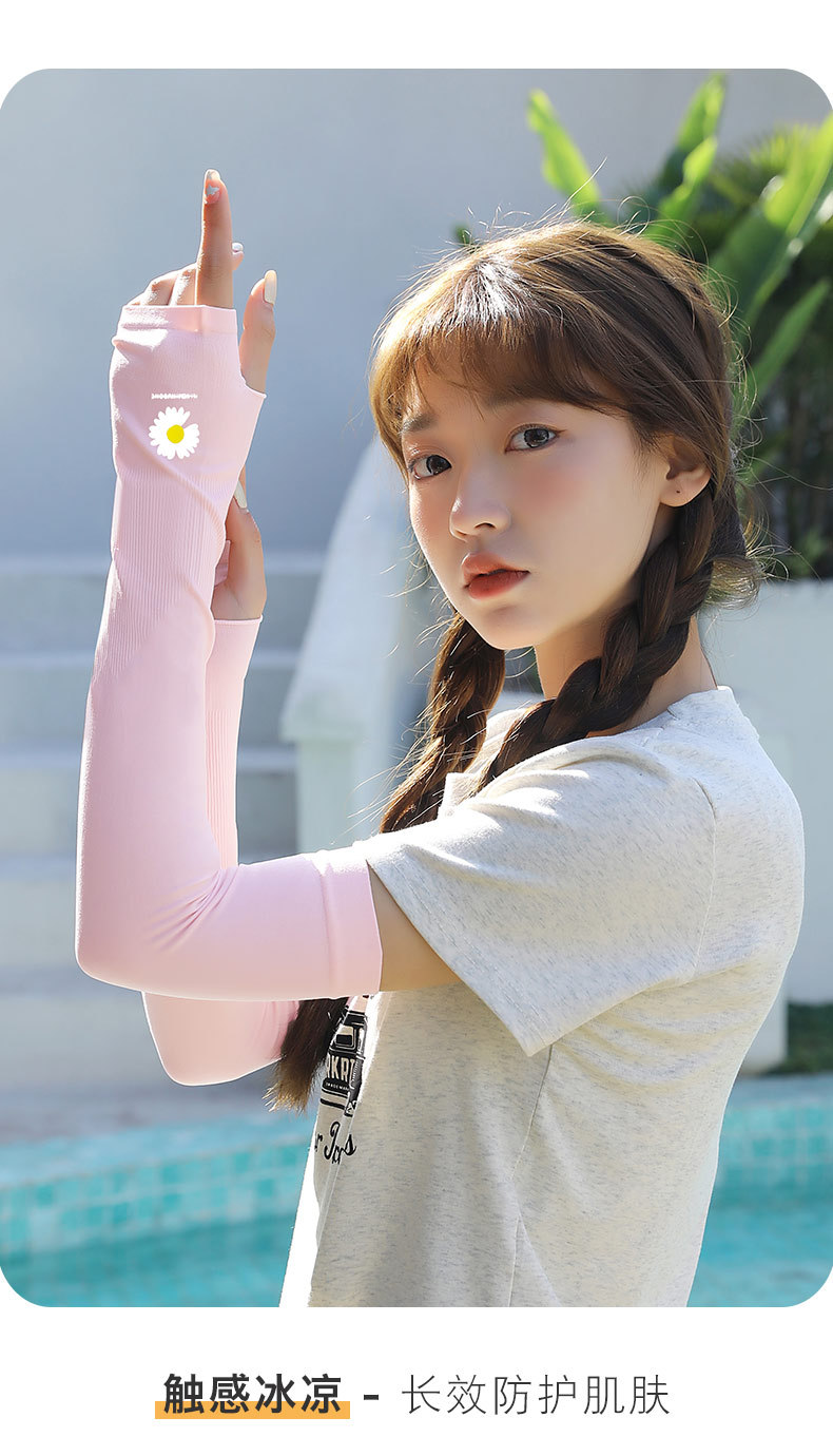 데이지 아이스 슬리브 여성 인터넷 유명 인사 아이스 실크 태양 보호 오버 슬리브 학생 새로운 통기성 UV 보호 팔 소매 여성