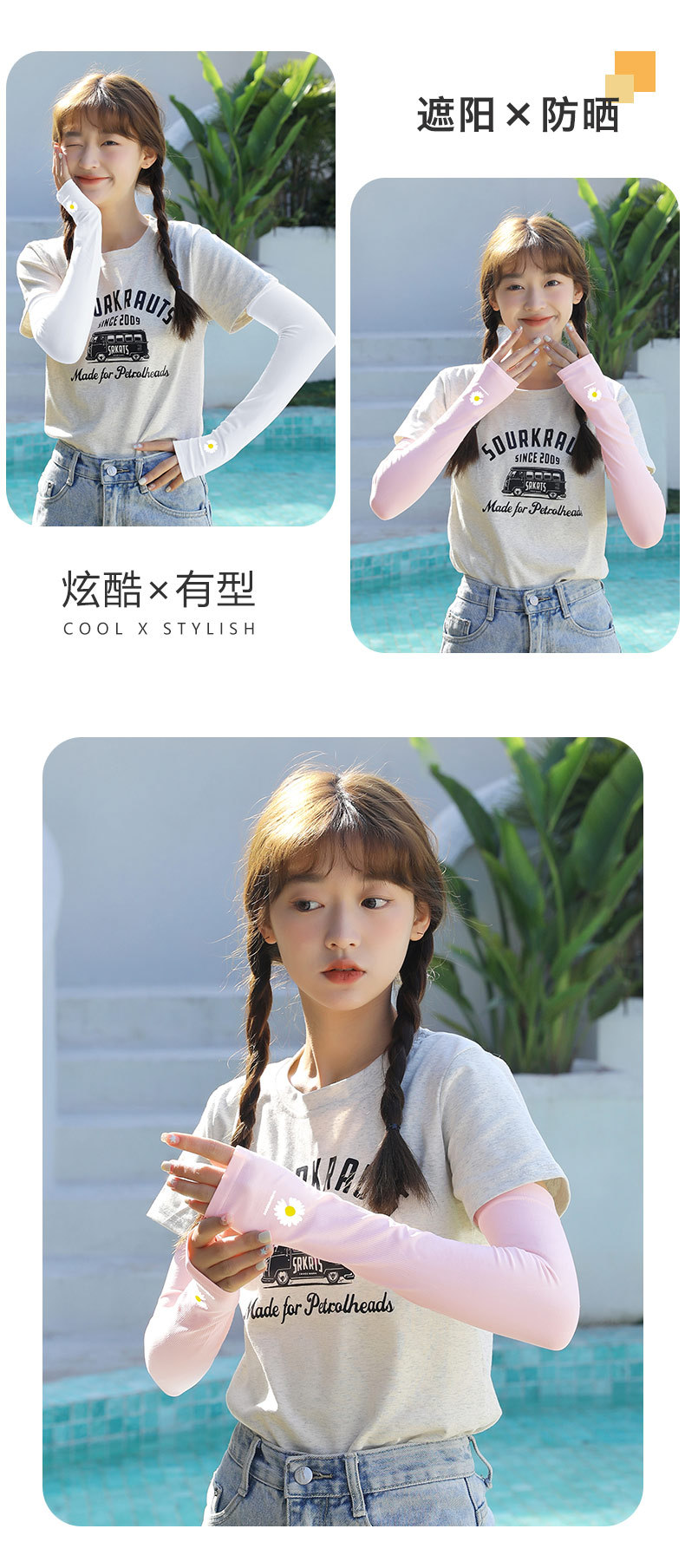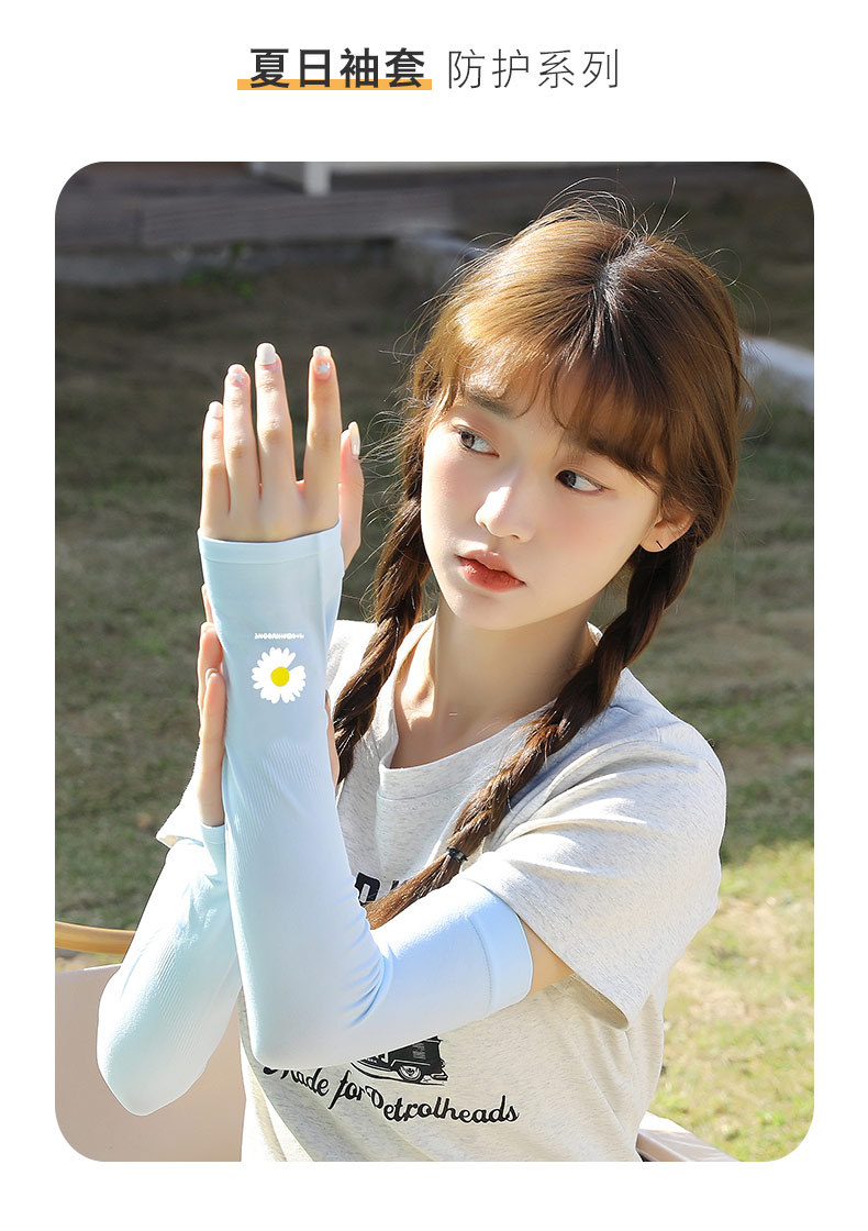 데이지 아이스 슬리브 여성 인터넷 유명 인사 아이스 실크 태양 보호 오버 슬리브 학생 새로운 통기성 UV 보호 팔 소매 여성스토어 가기