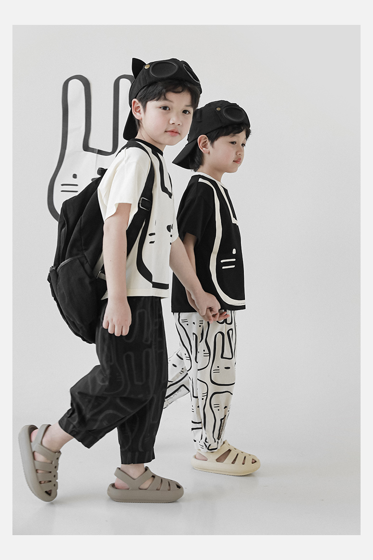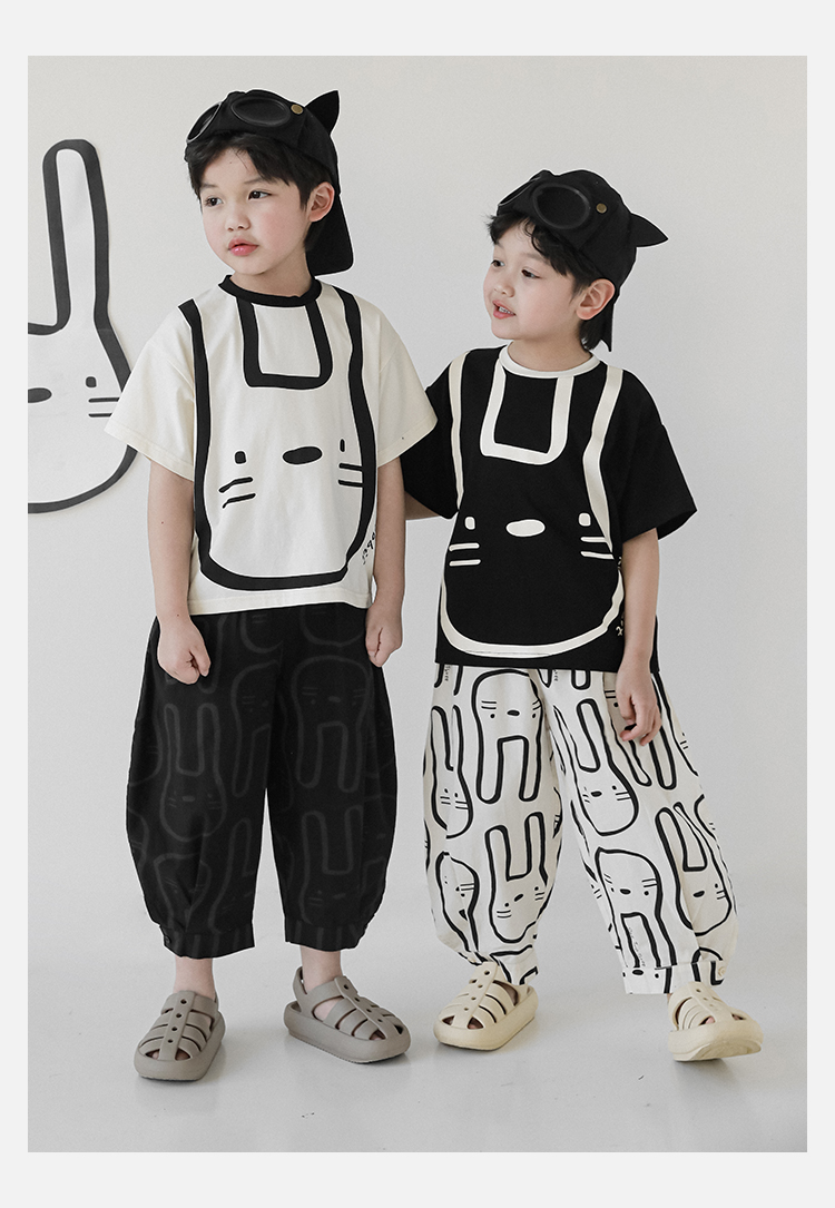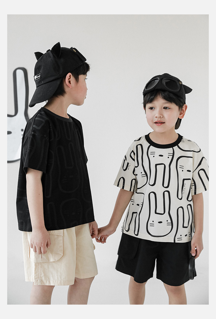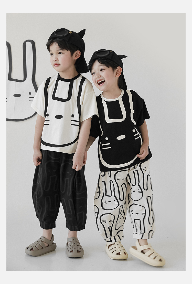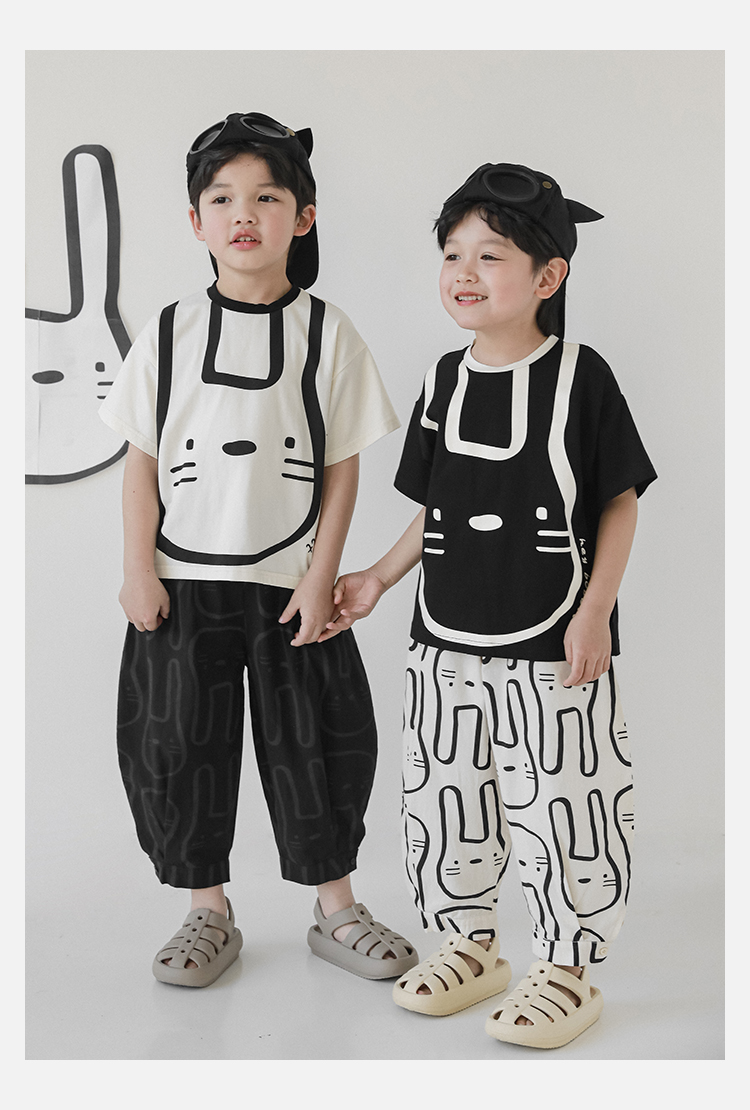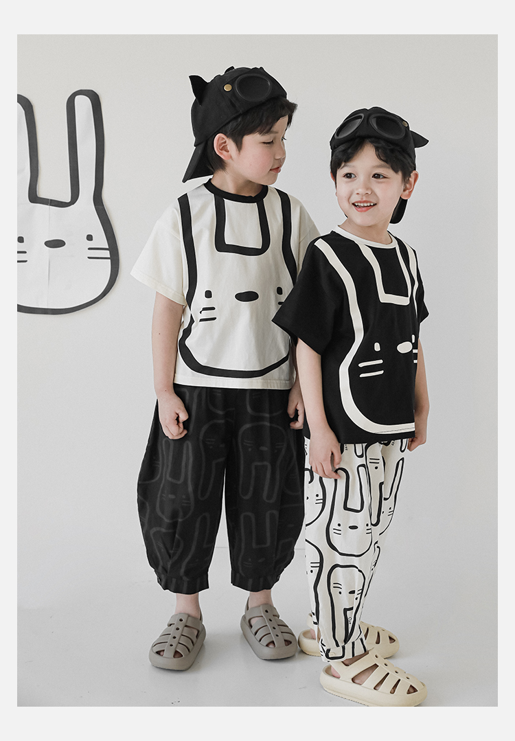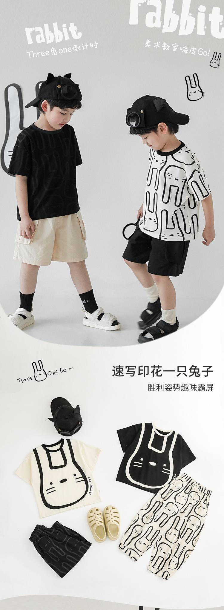 우립 어린이 토끼 프린트 인형 랩 티셔츠 여름 얇은 최고 소년 캐주얼 바지 세트