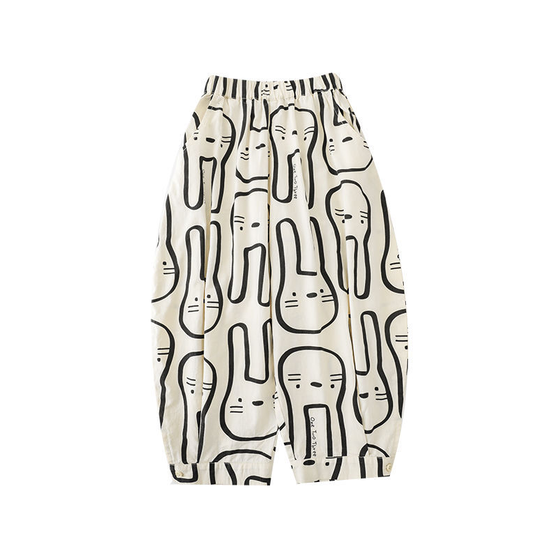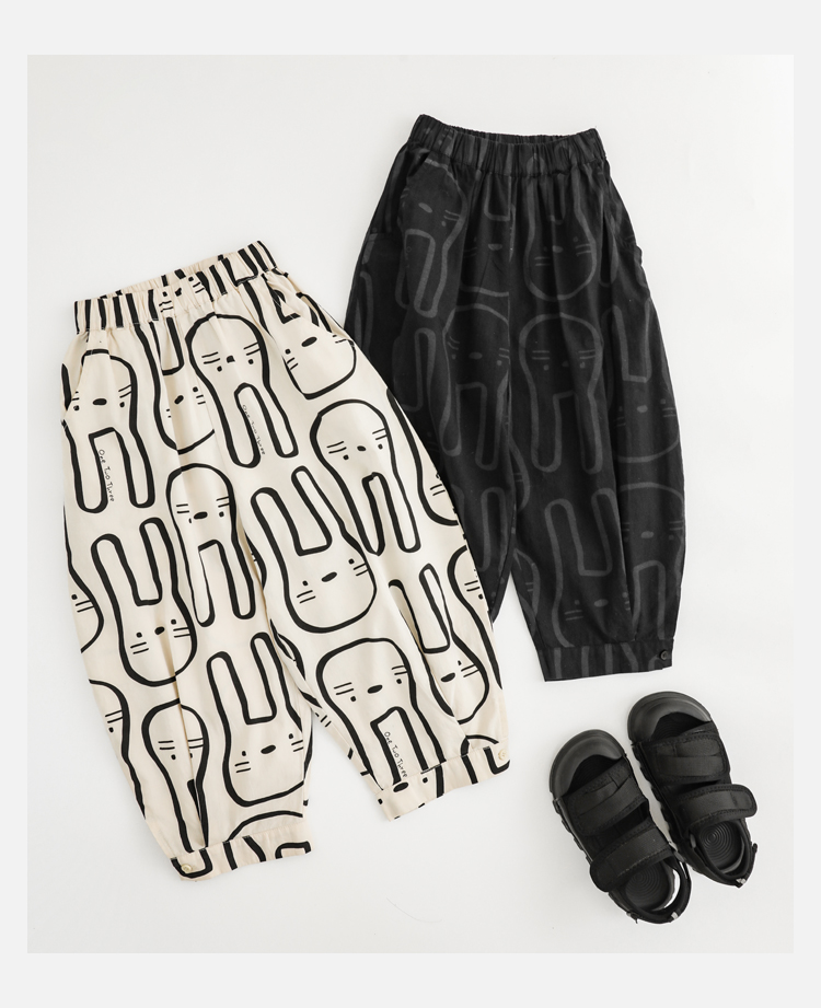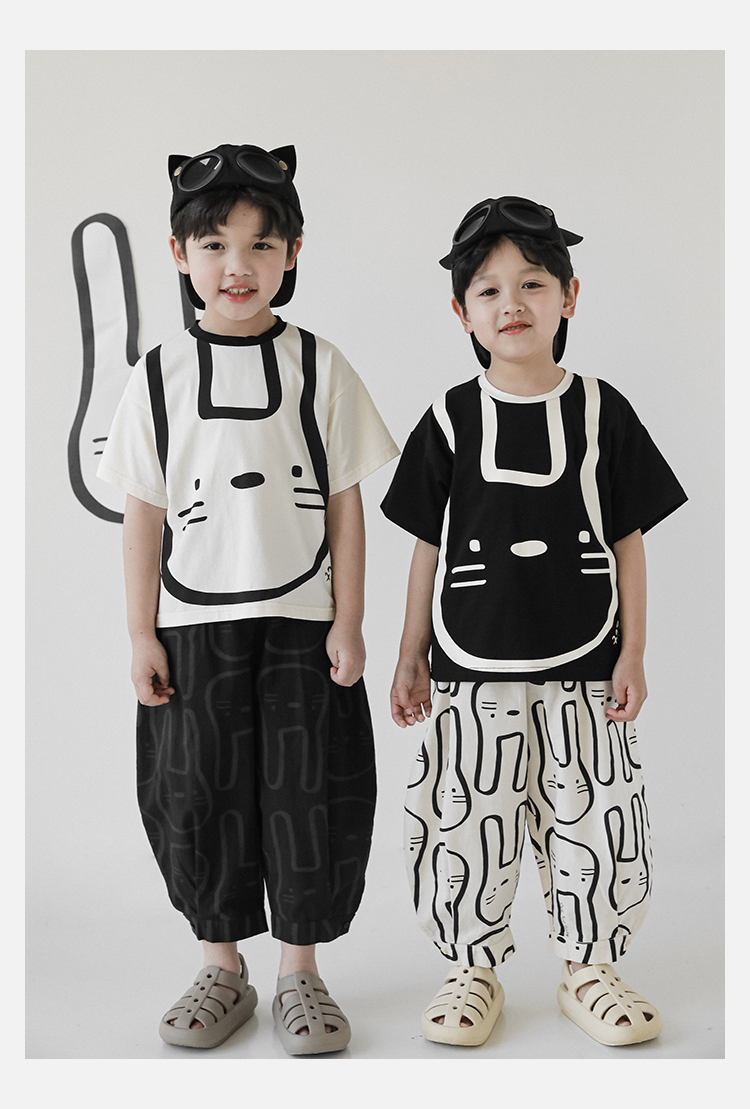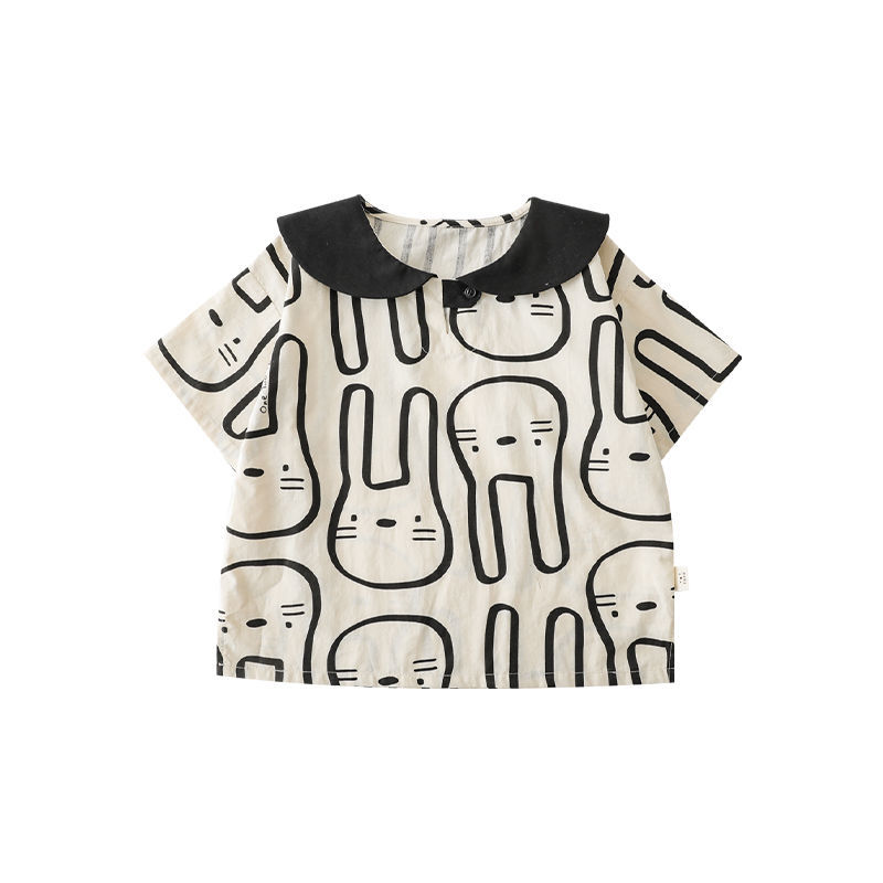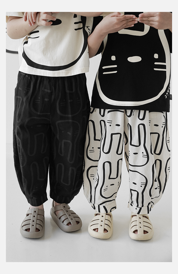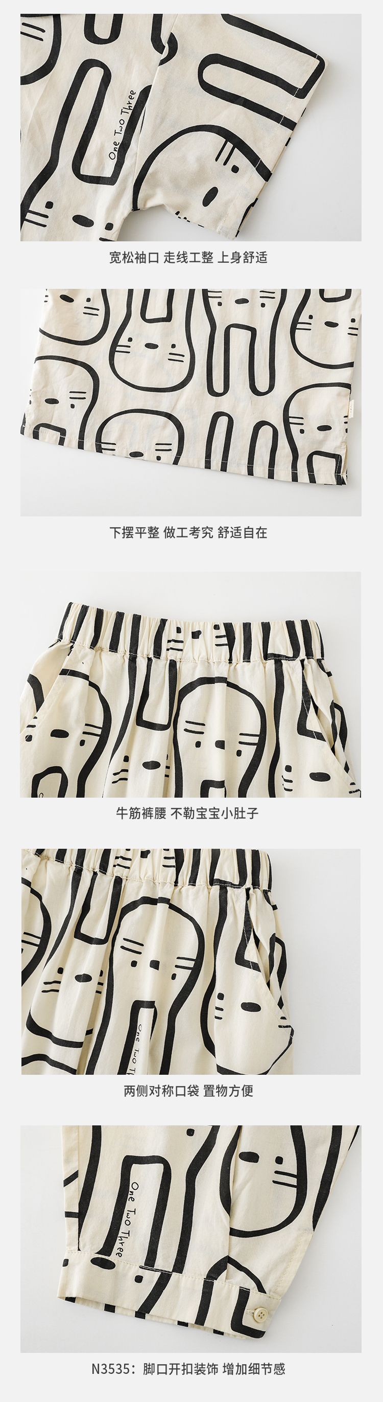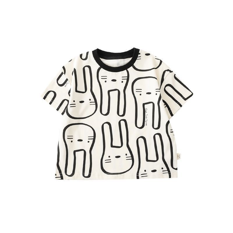 우립 어린이 토끼 프린트 인형 랩 티셔츠 여름 얇은 최고 소년 캐주얼 바지 세트