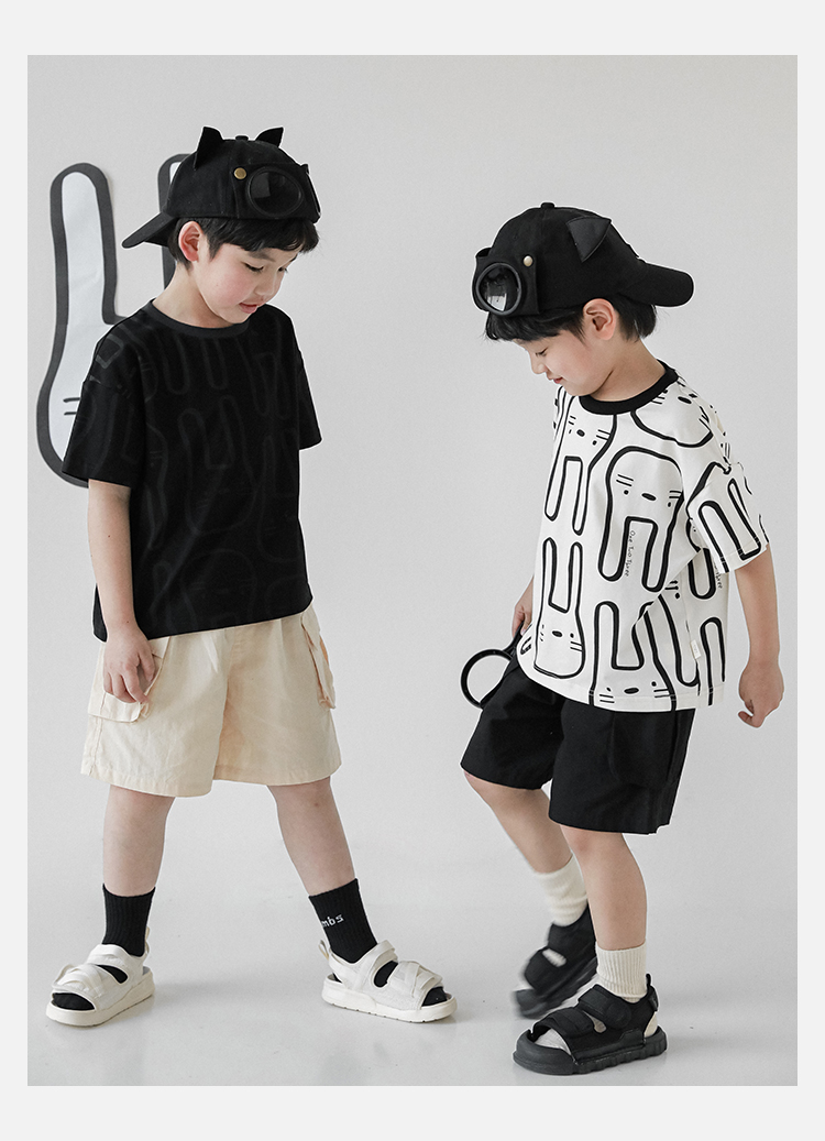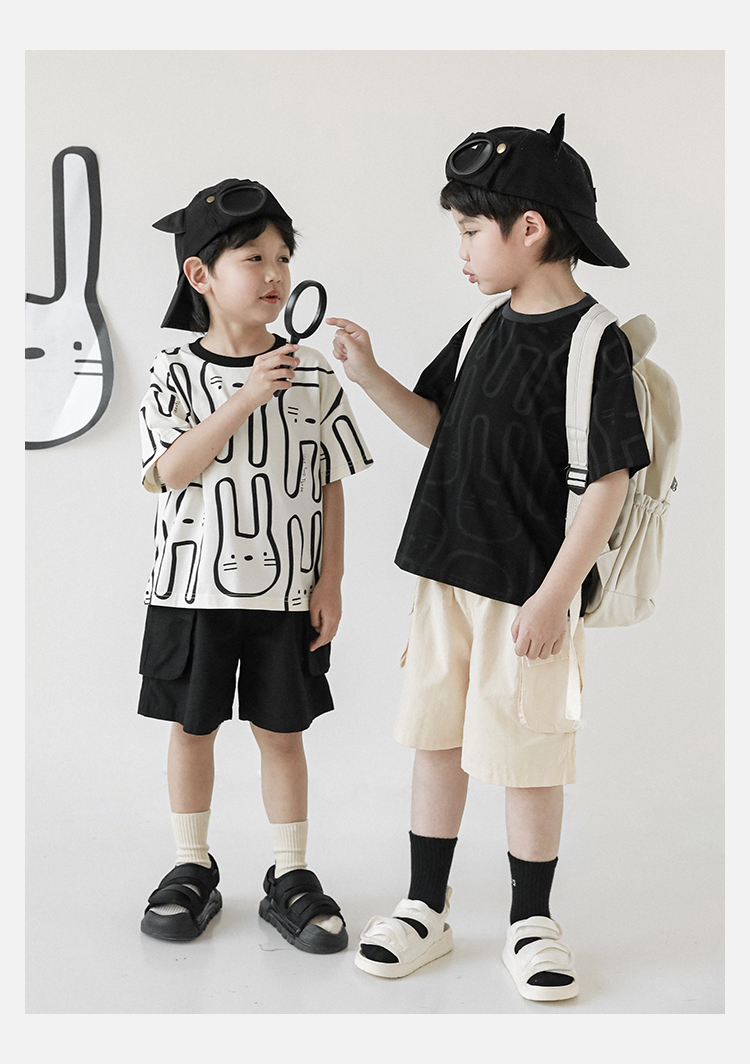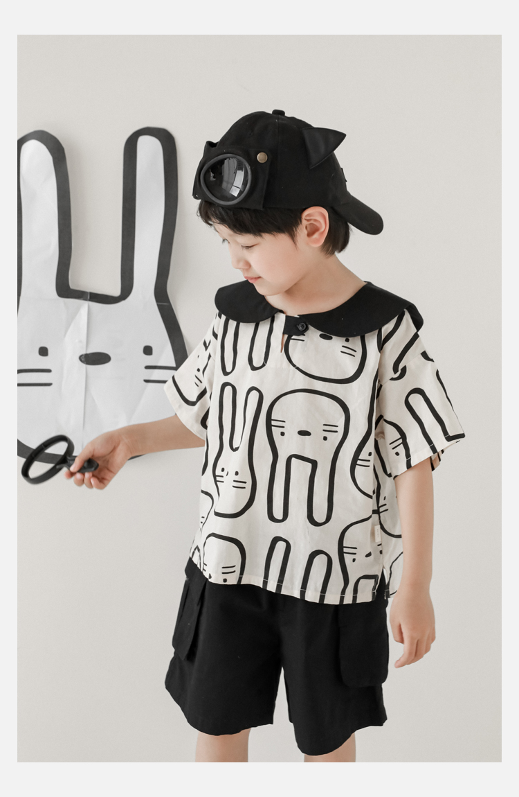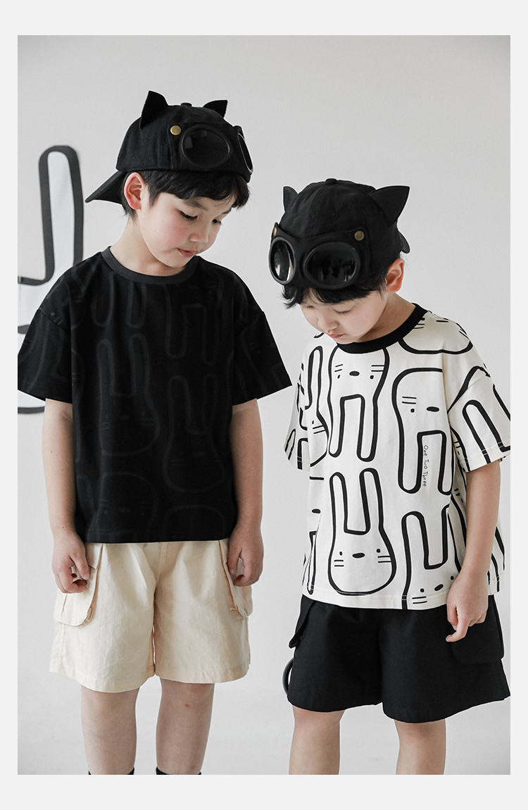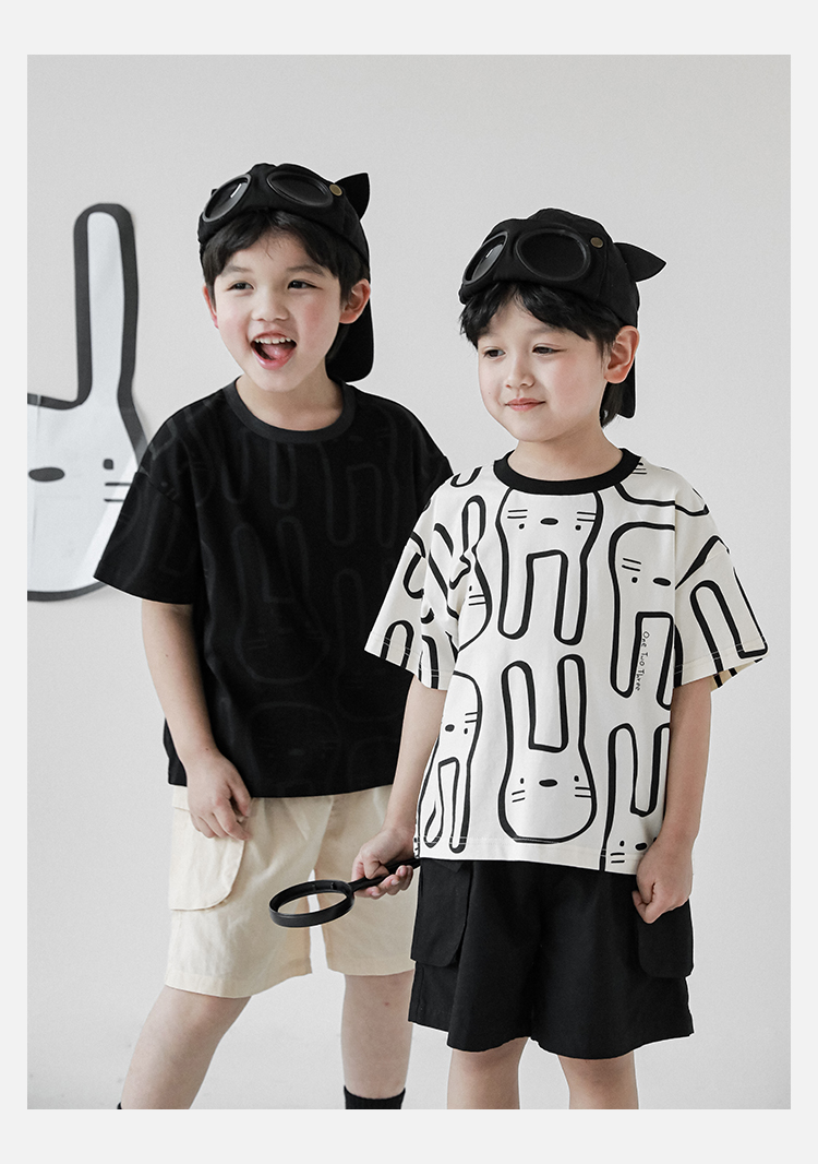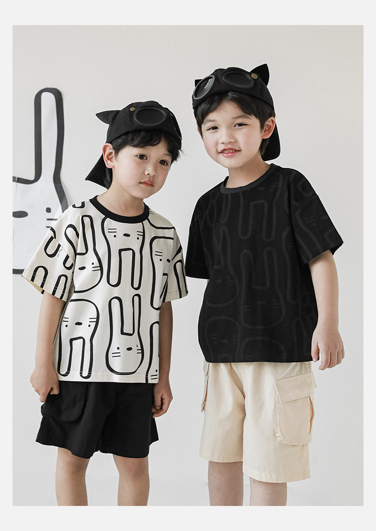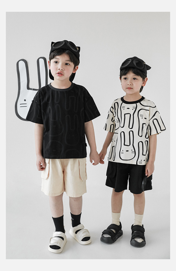 우립 어린이 토끼 프린트 인형 랩 티셔츠 여름 얇은 최고 소년 캐주얼 바지 세트스토어 가기